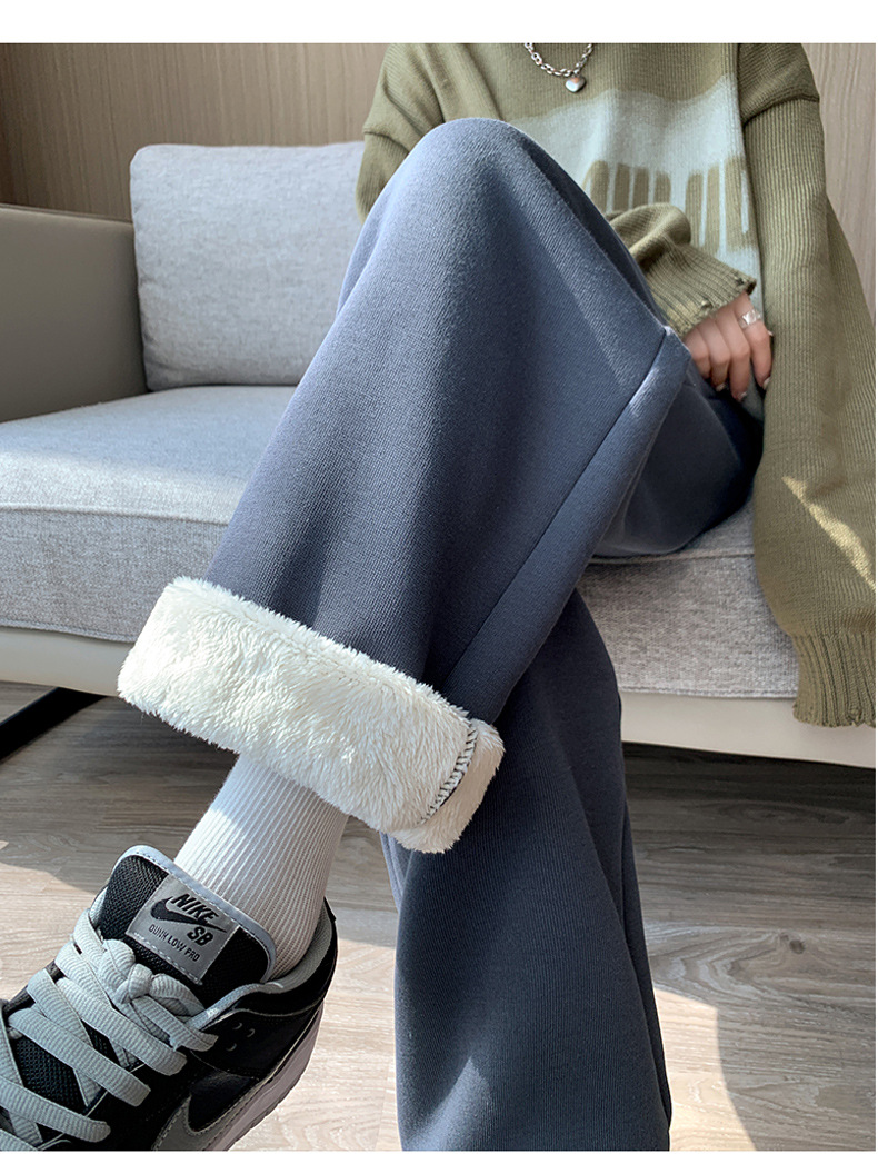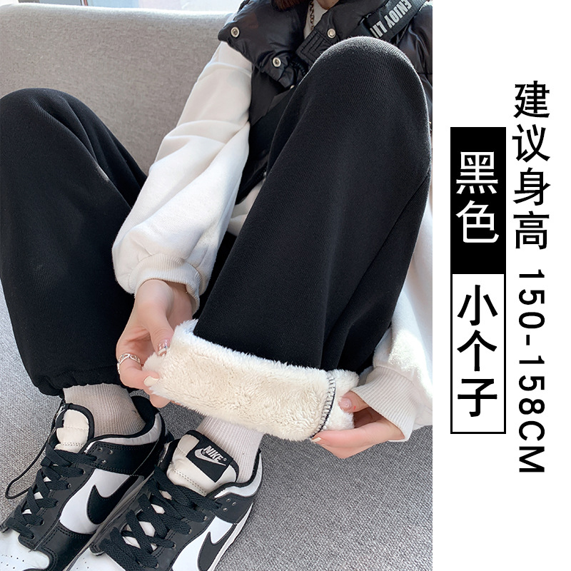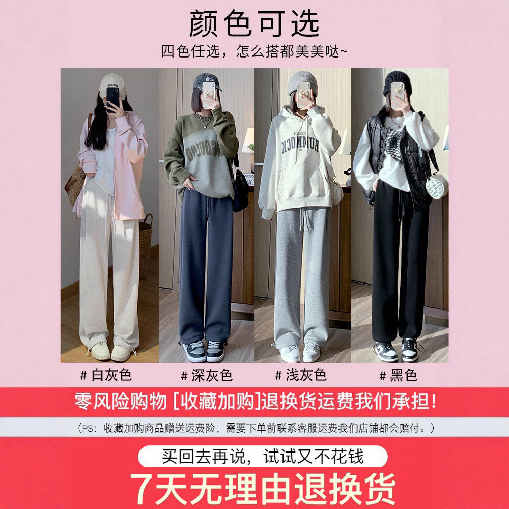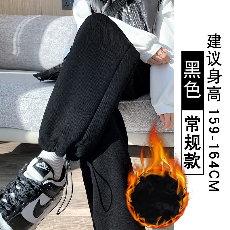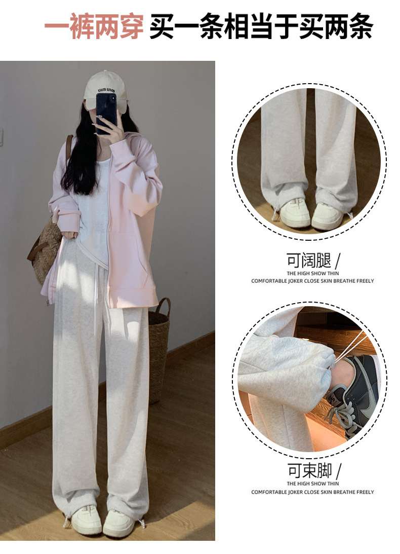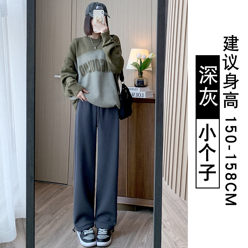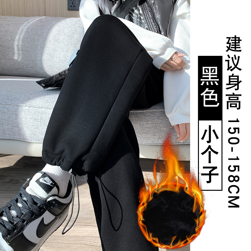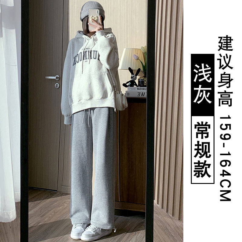 灰色羊羔绒运动裤女秋冬宽松束脚棉裤加绒加厚阔腿裤直筒休闲卫裤