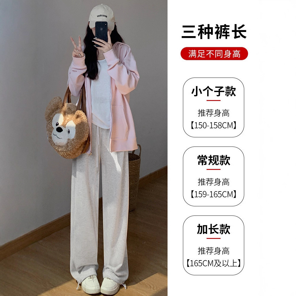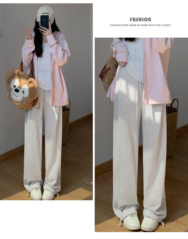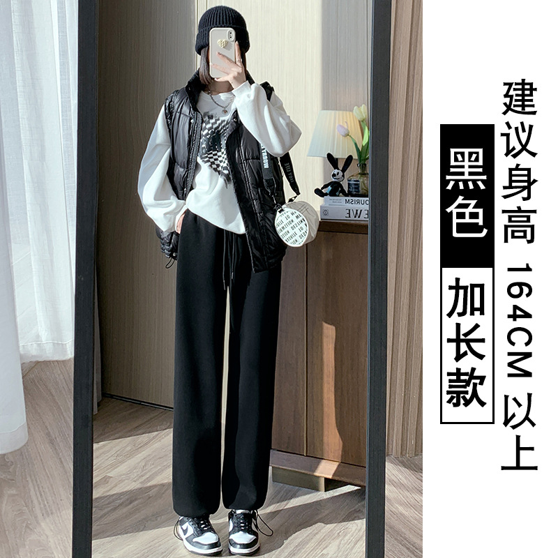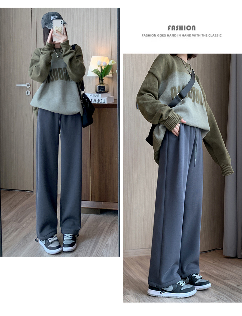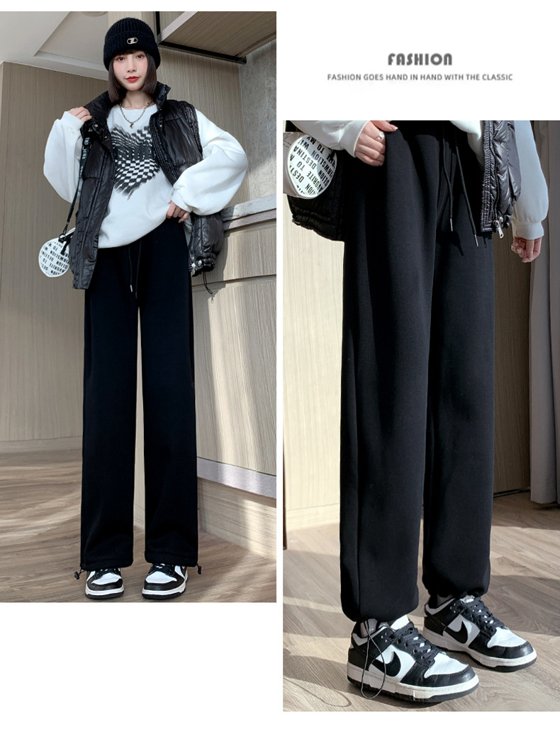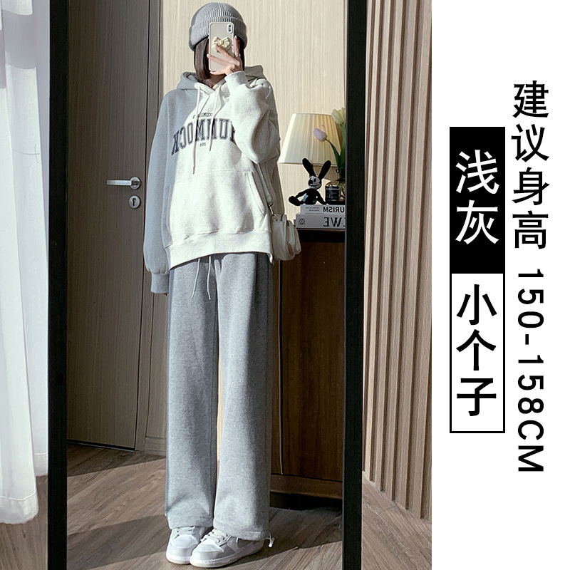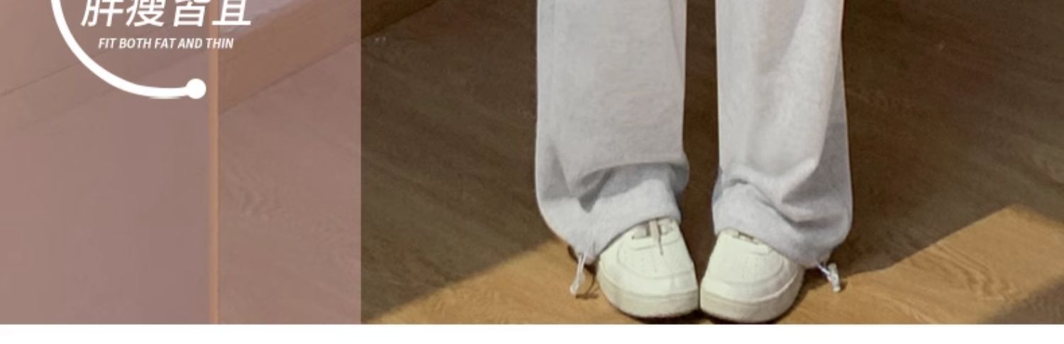 灰色羊羔绒运动裤女秋冬宽松束脚棉裤加绒加厚阔腿裤直筒休闲卫裤