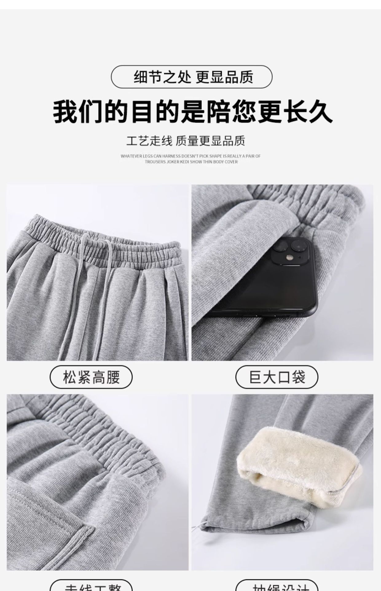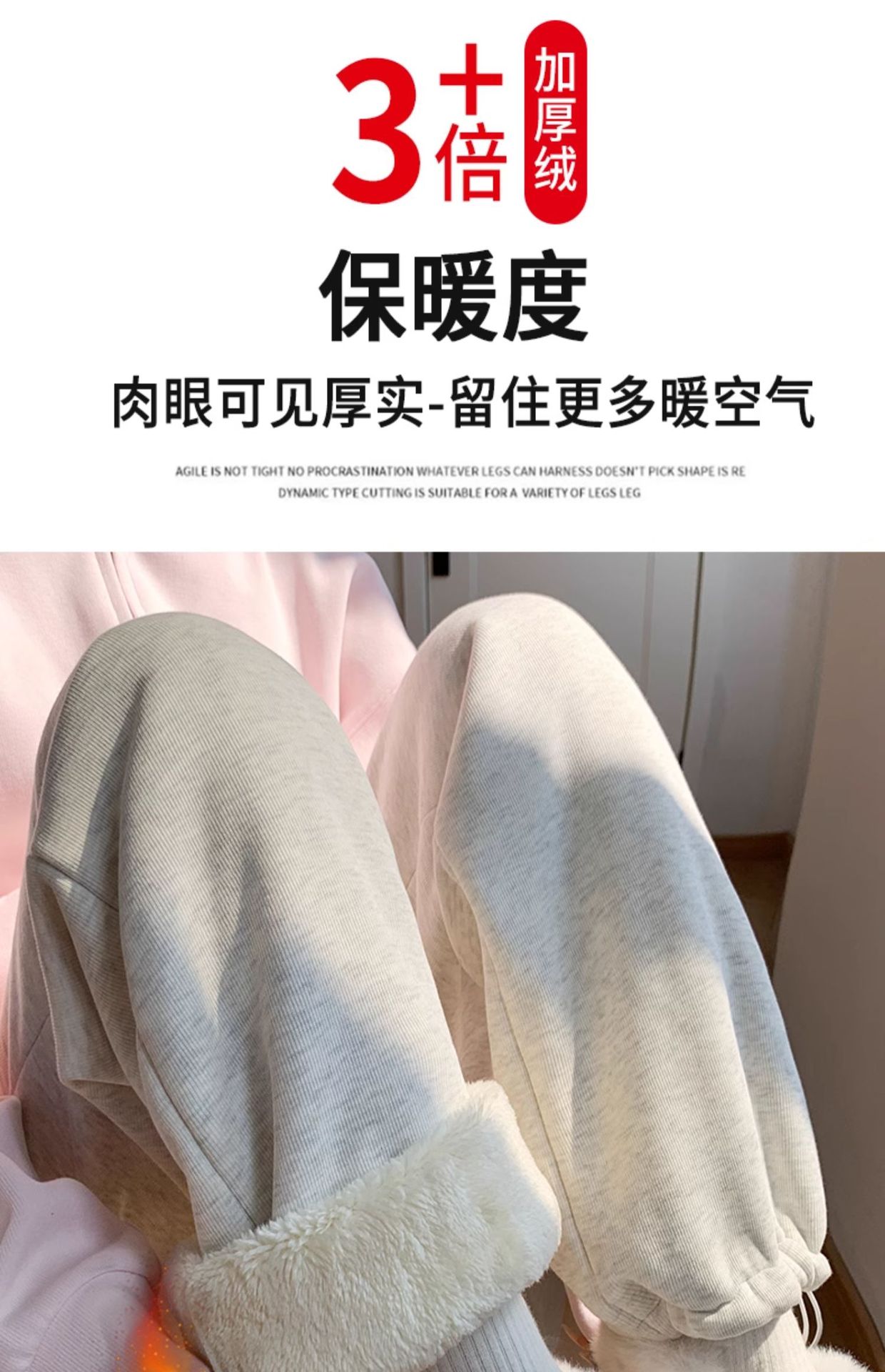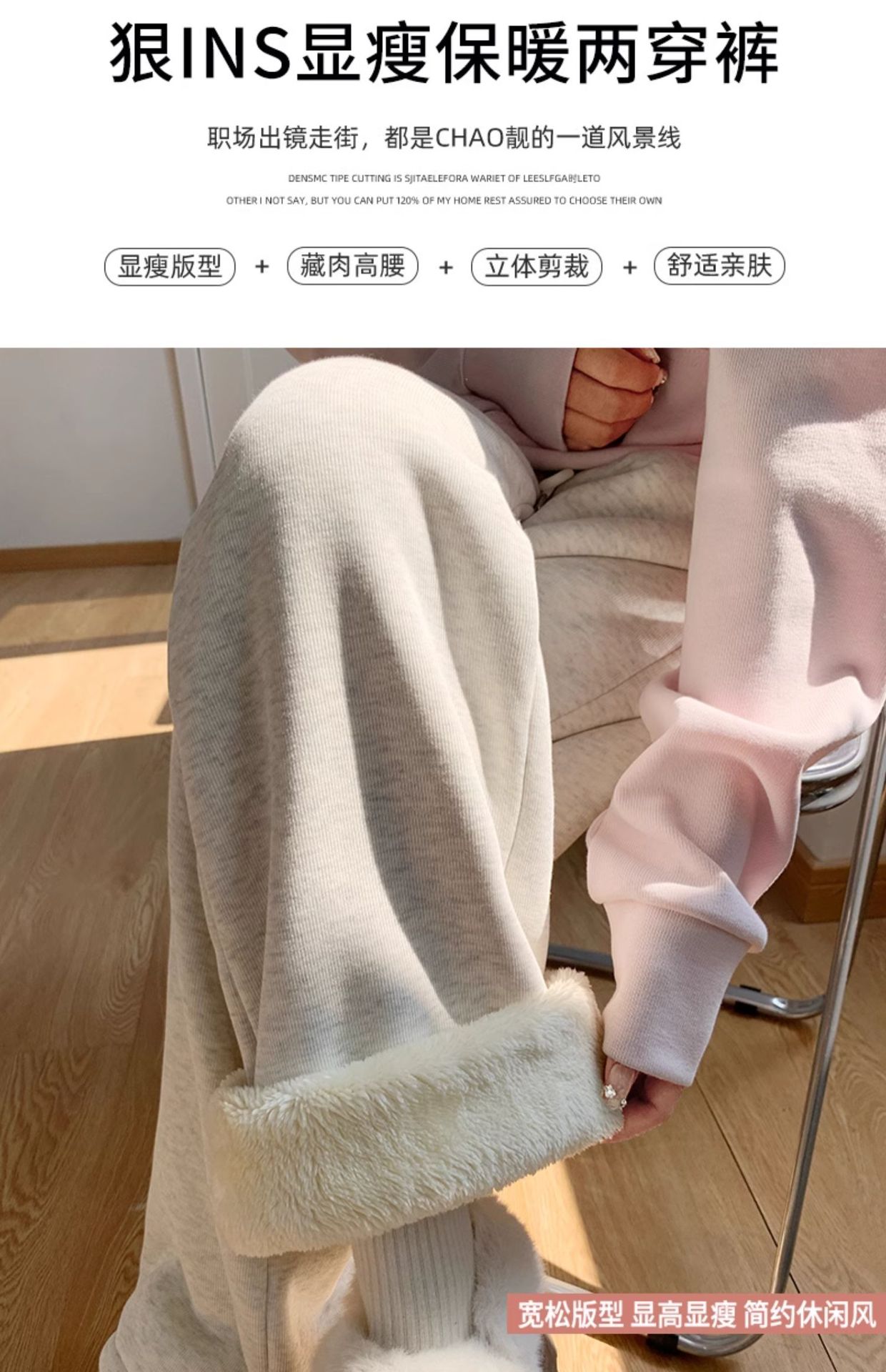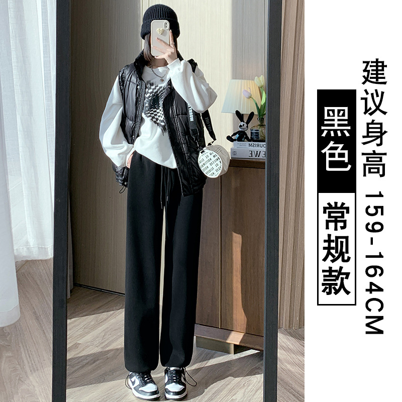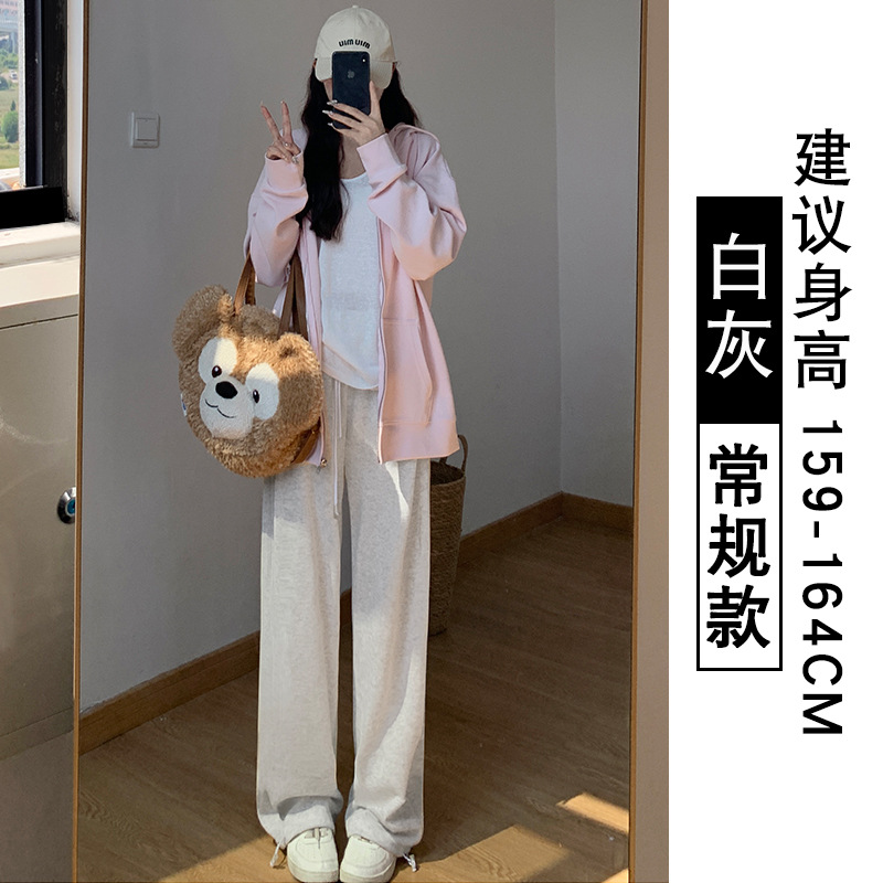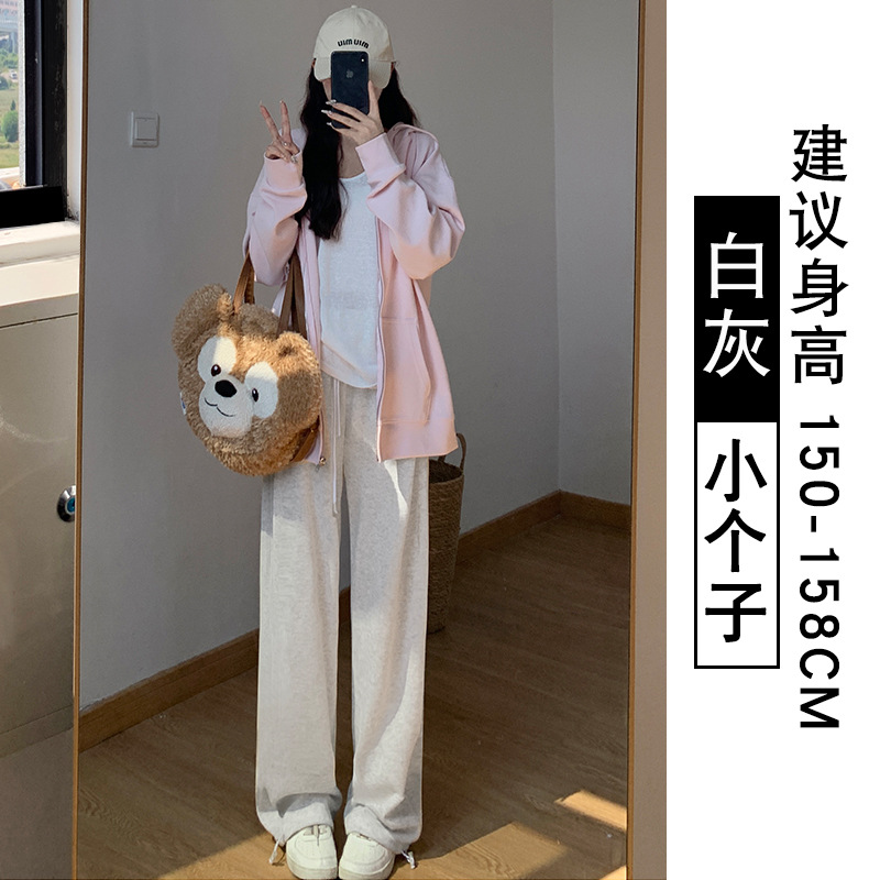 灰色羊羔绒运动裤女秋冬宽松束脚棉裤加绒加厚阔腿裤直筒休闲卫裤