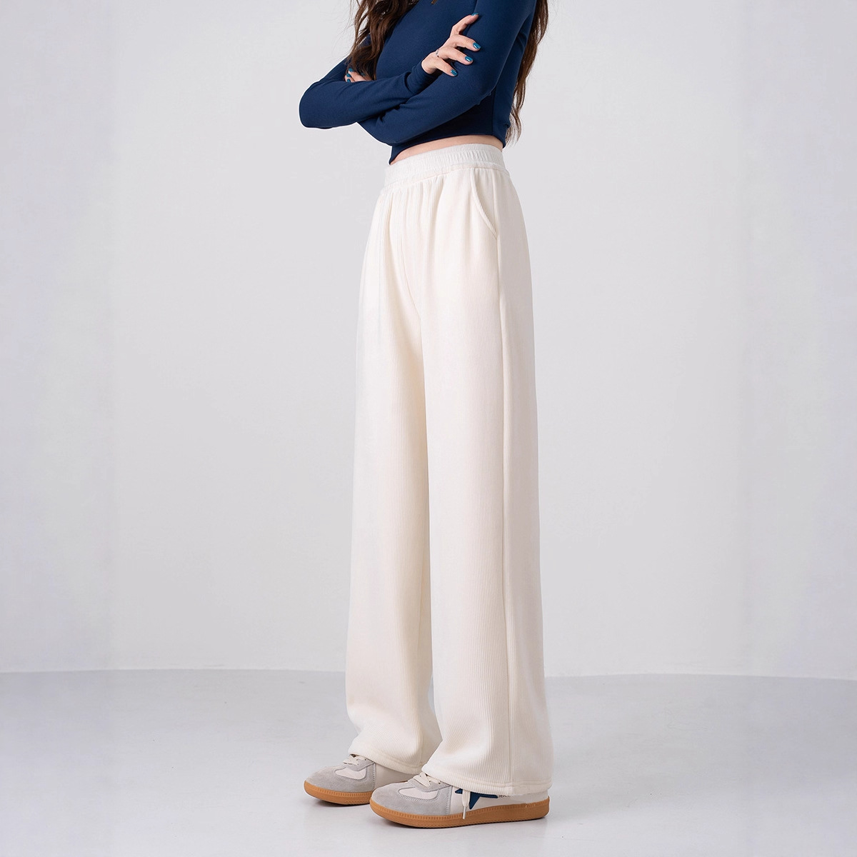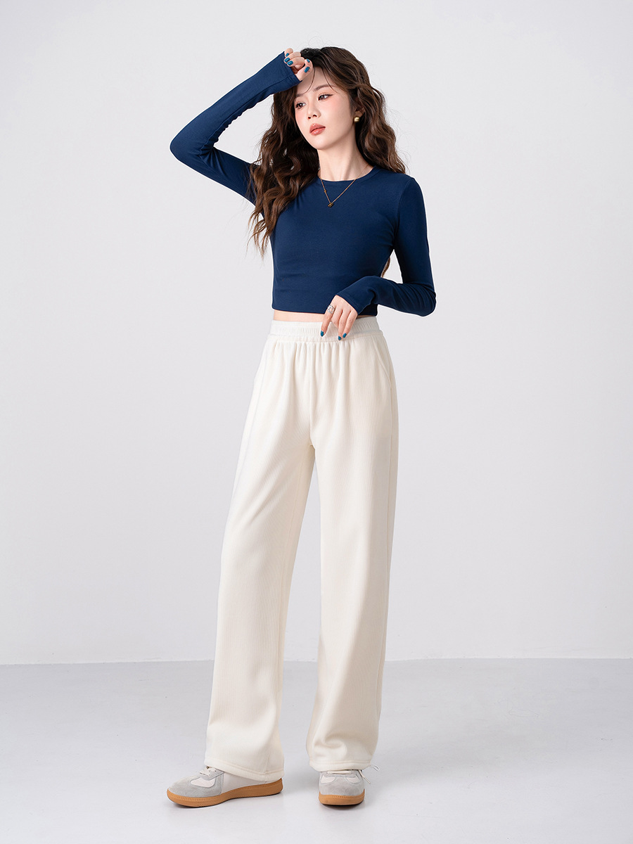 加绒裤子女秋冬垂感糯米绒阔腿裤灯芯绒休闲女款秋冬保暖裤子源头