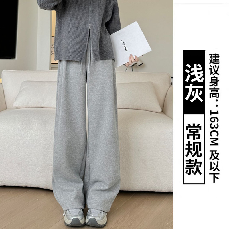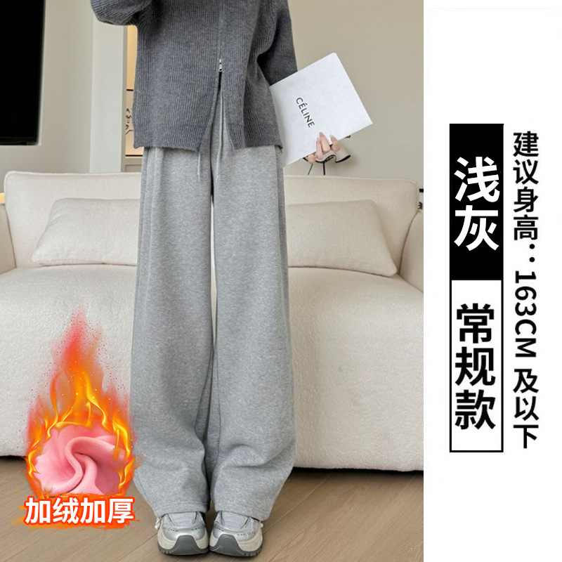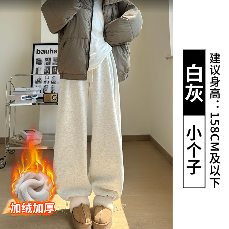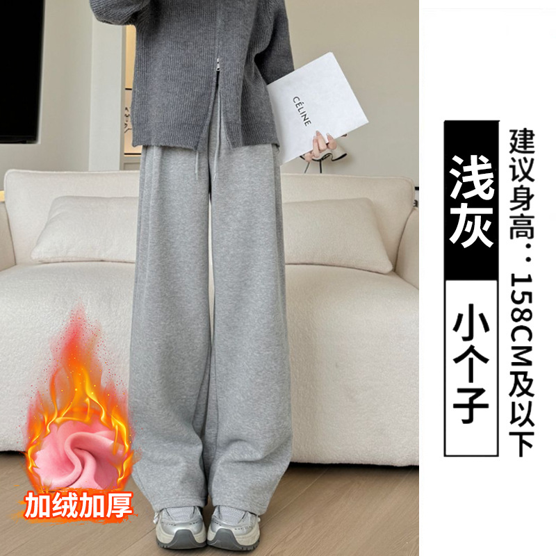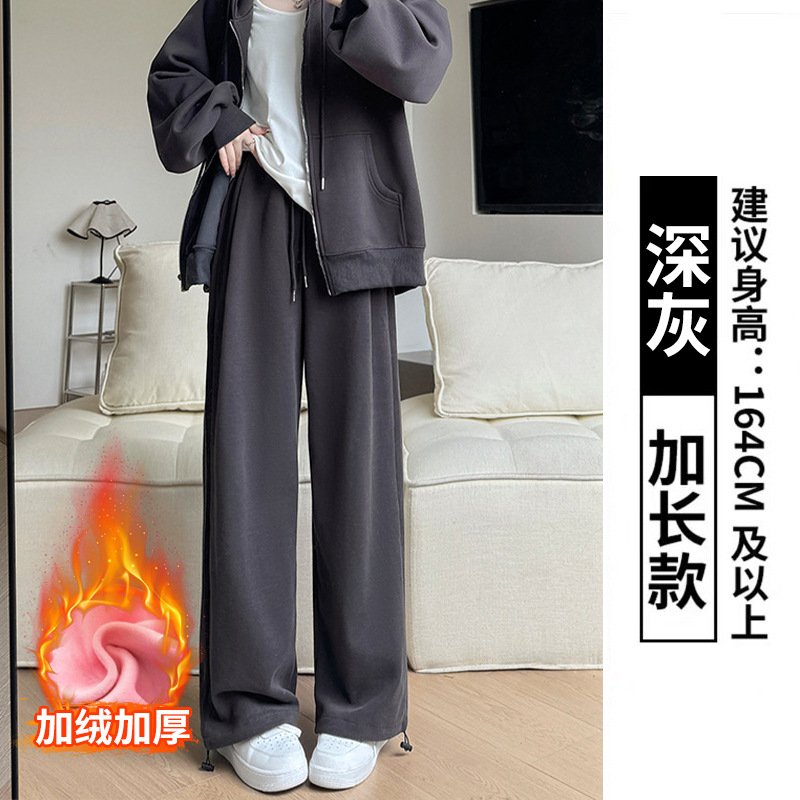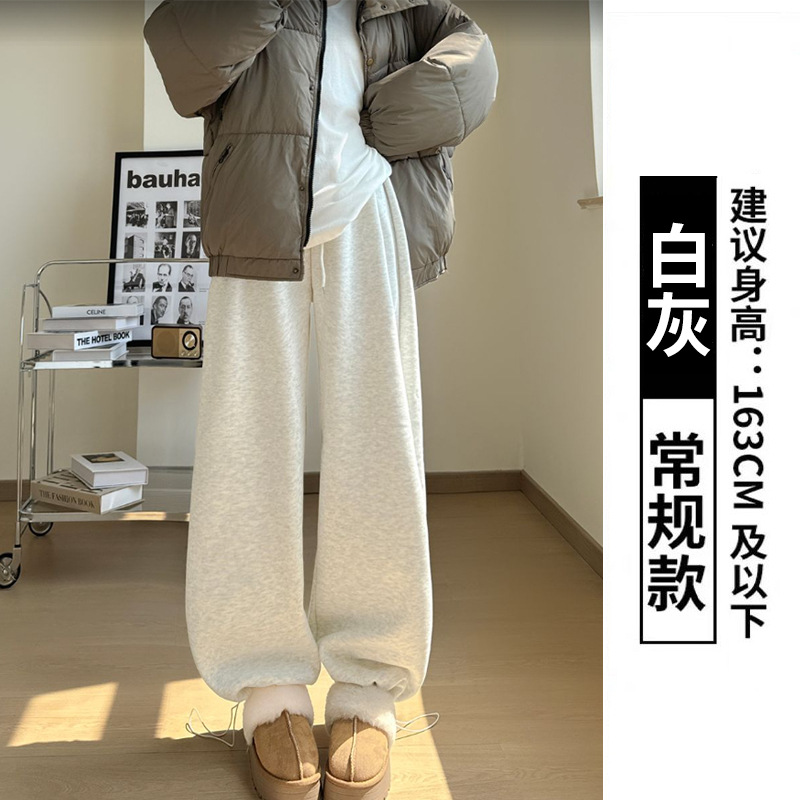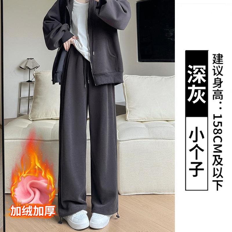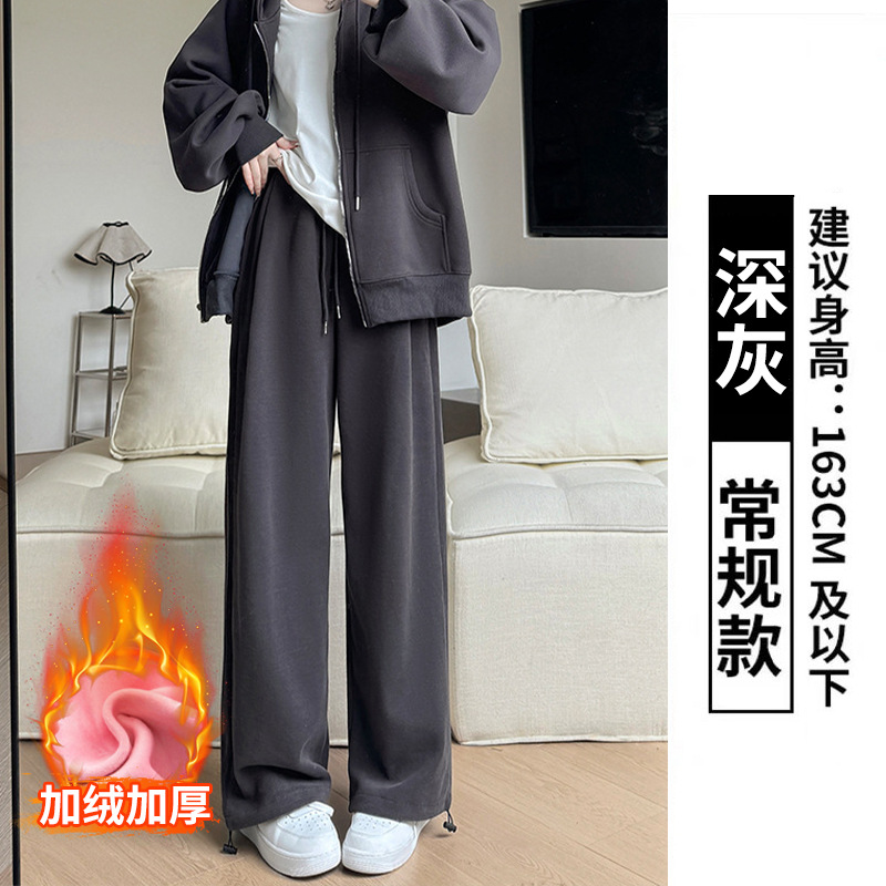 米妮加绒运动裤女秋冬新款高腰垂感宽松直筒卫裤小个子美式阔腿裤
