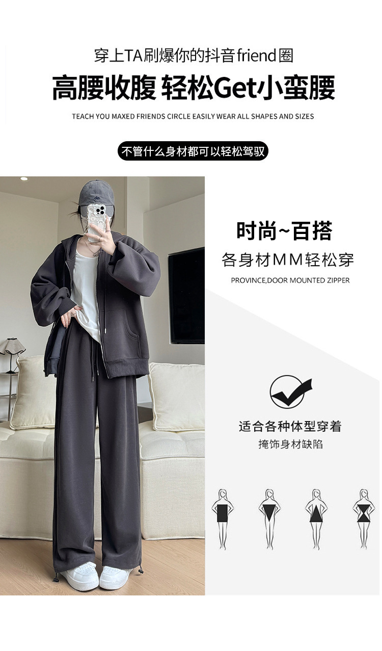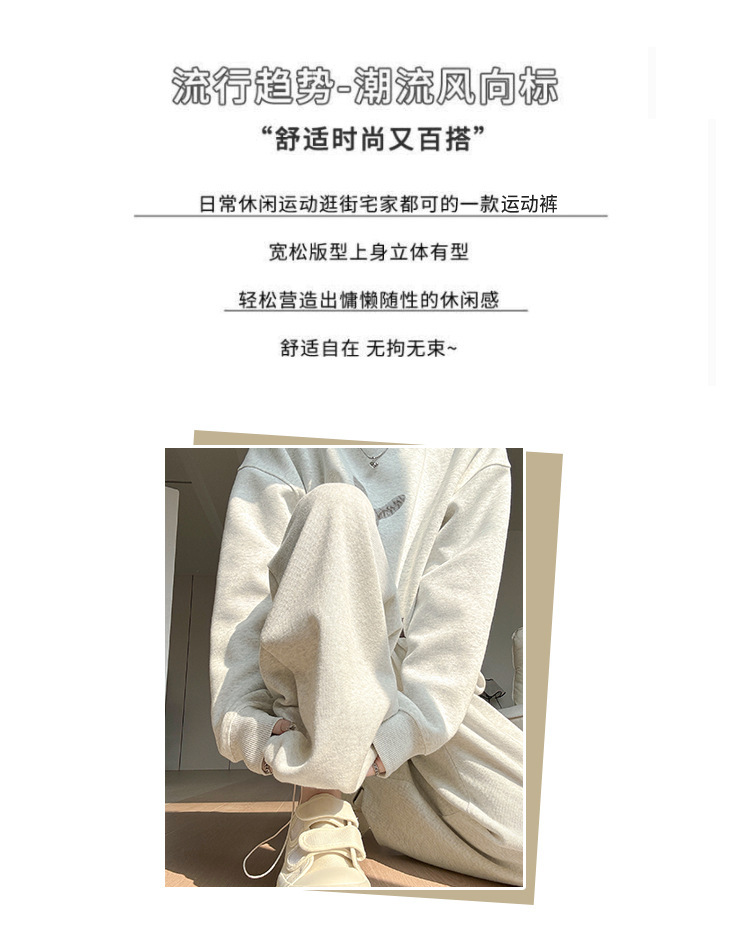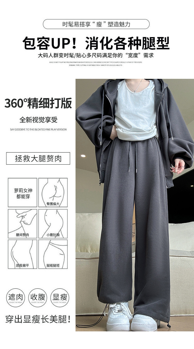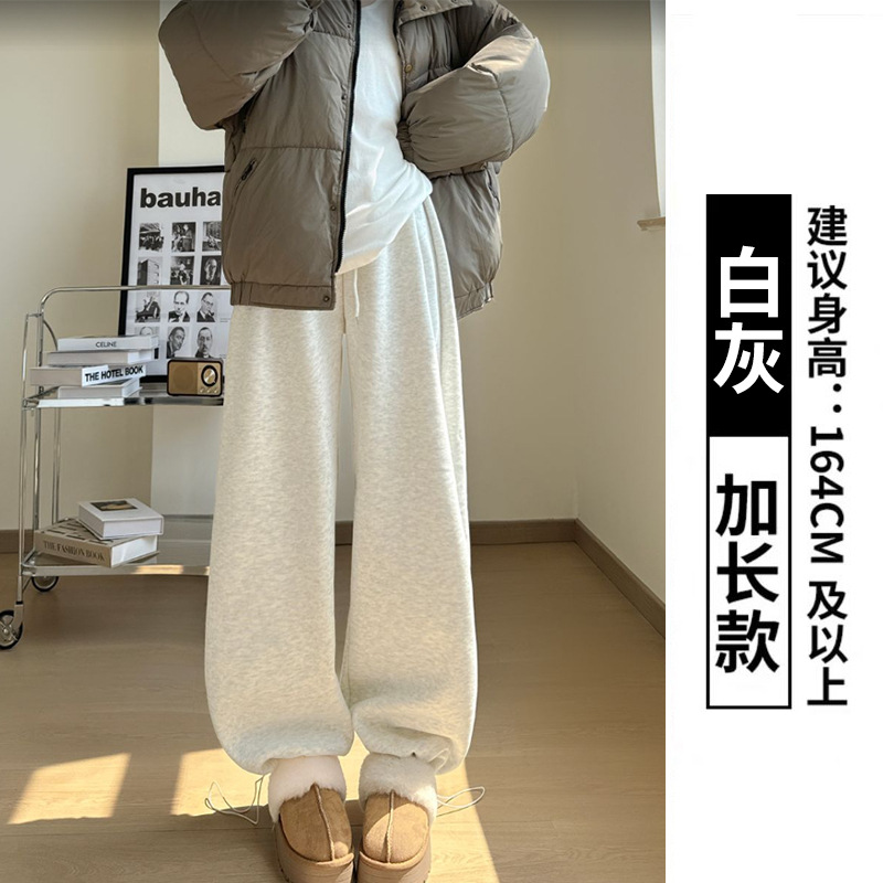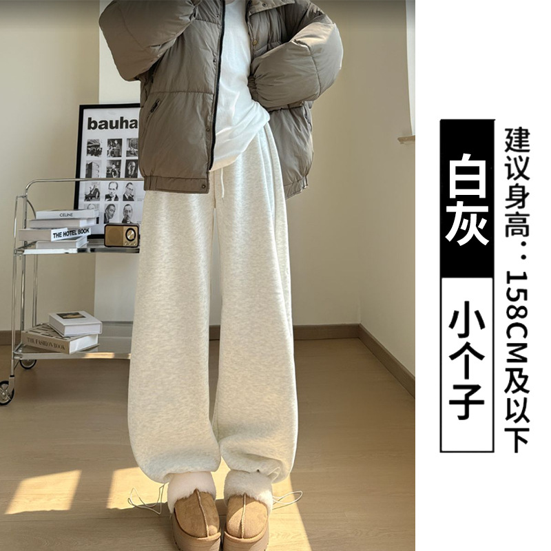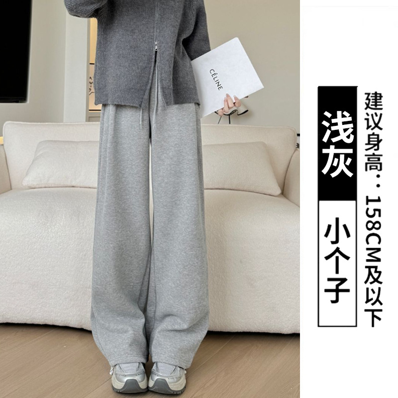 米妮加绒运动裤女秋冬新款高腰垂感宽松直筒卫裤小个子美式阔腿裤