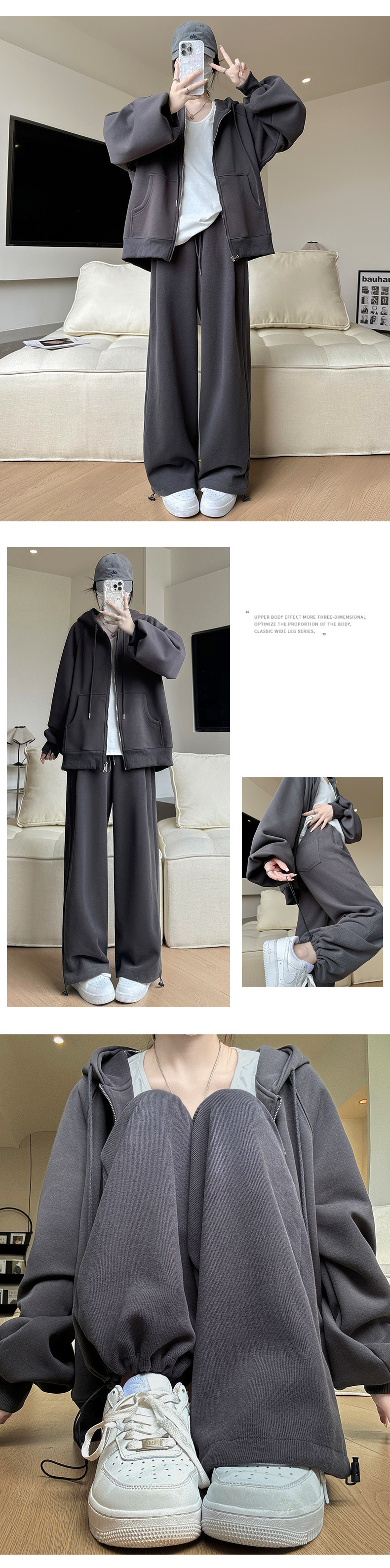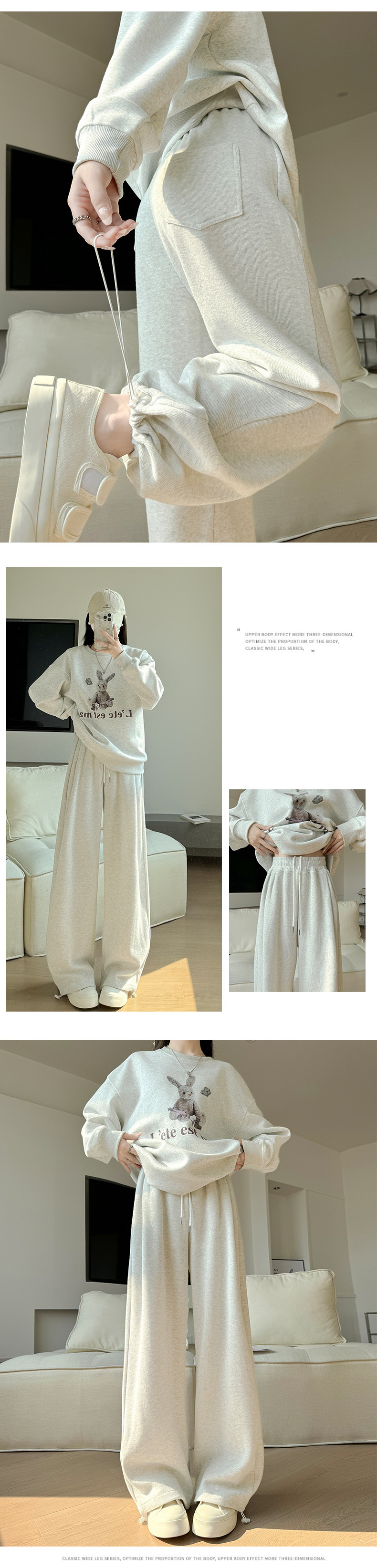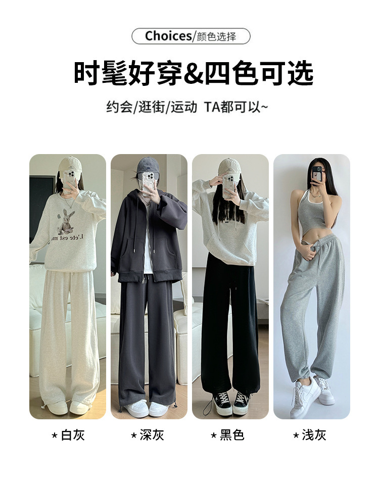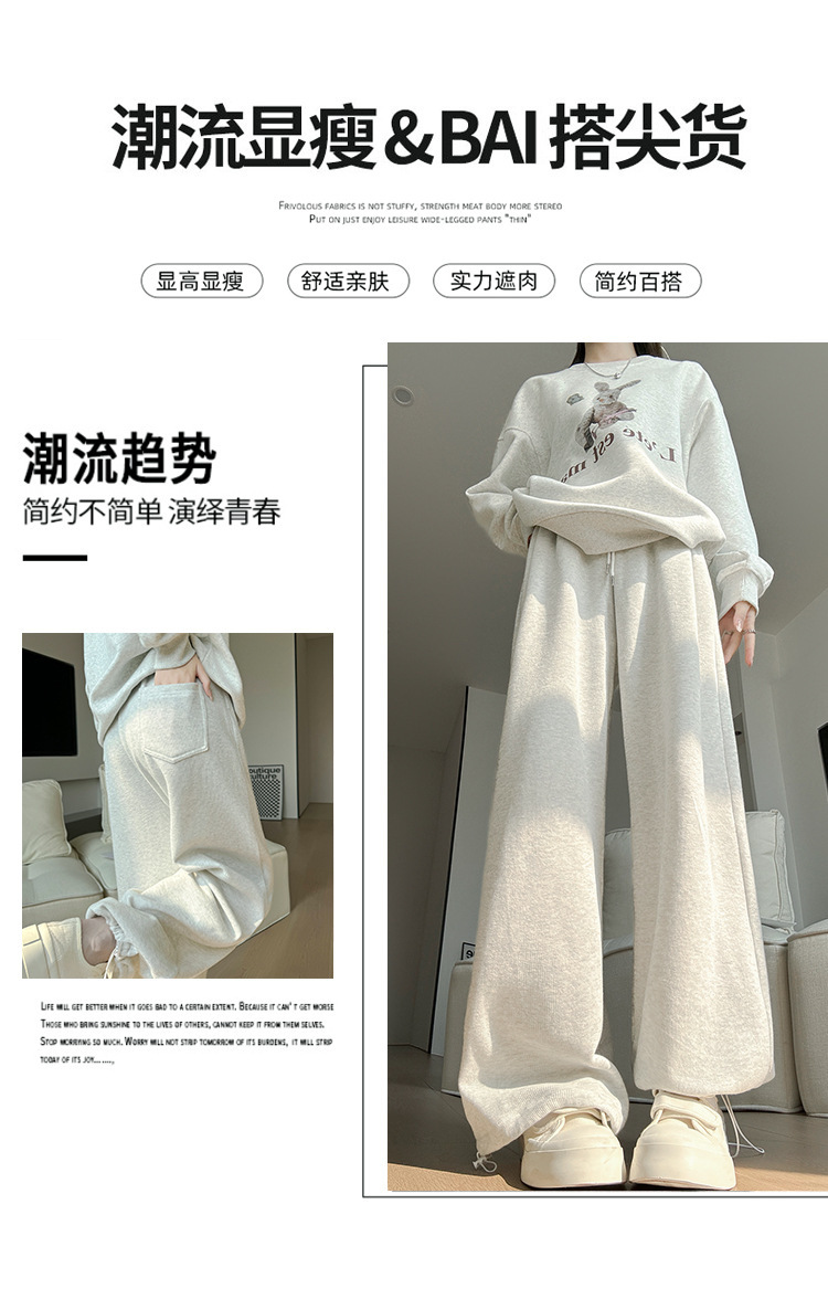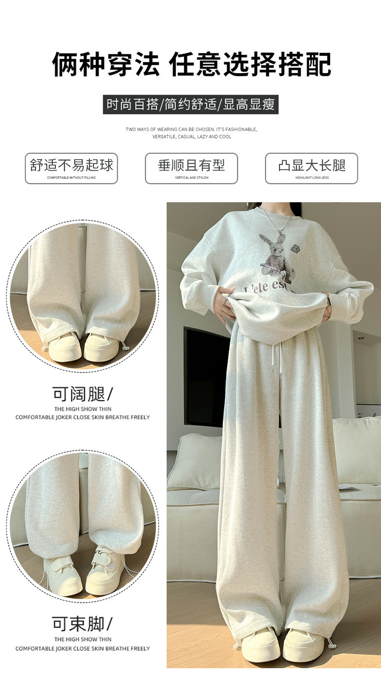 米妮加绒运动裤女秋冬新款高腰垂感宽松直筒卫裤小个子美式阔腿裤