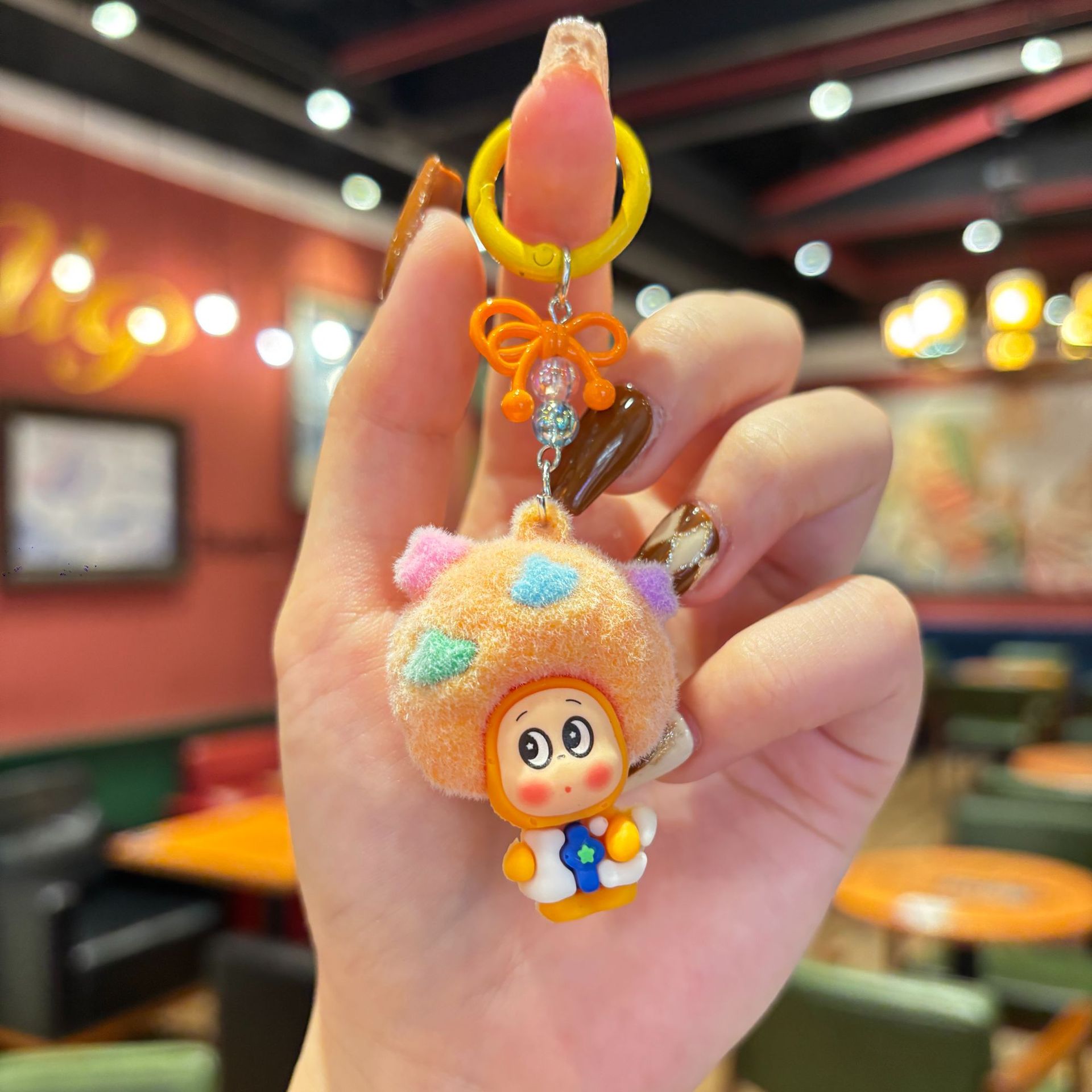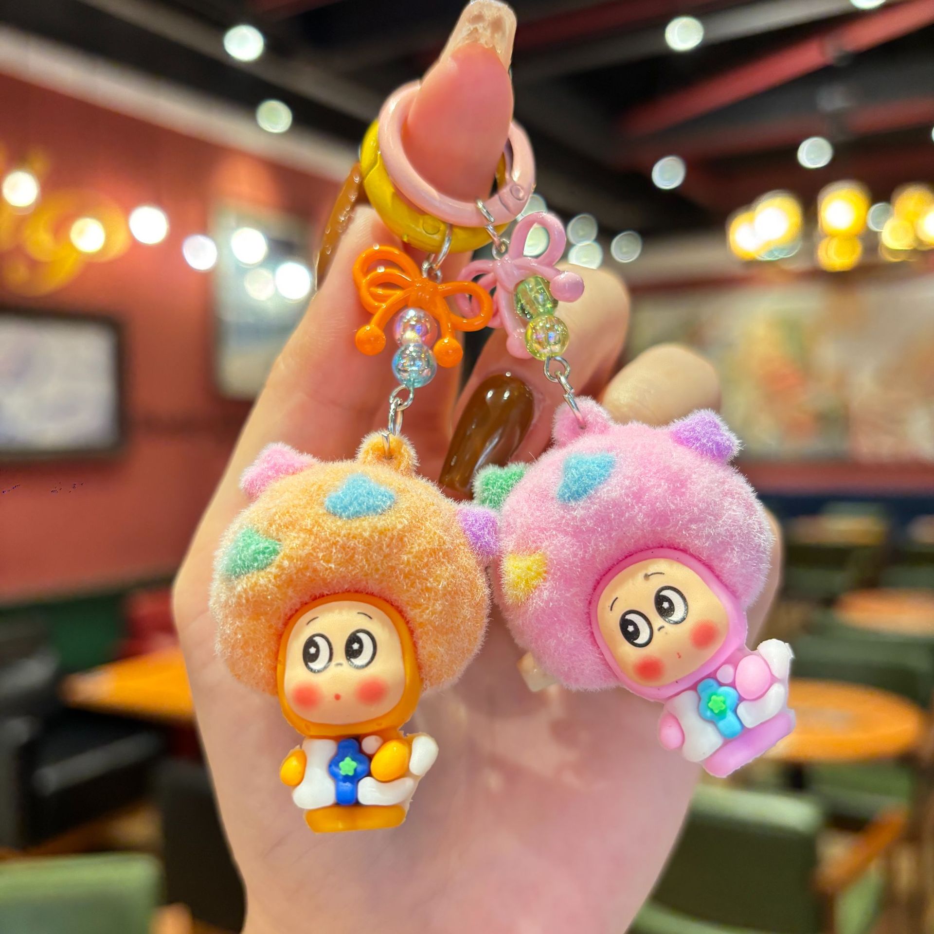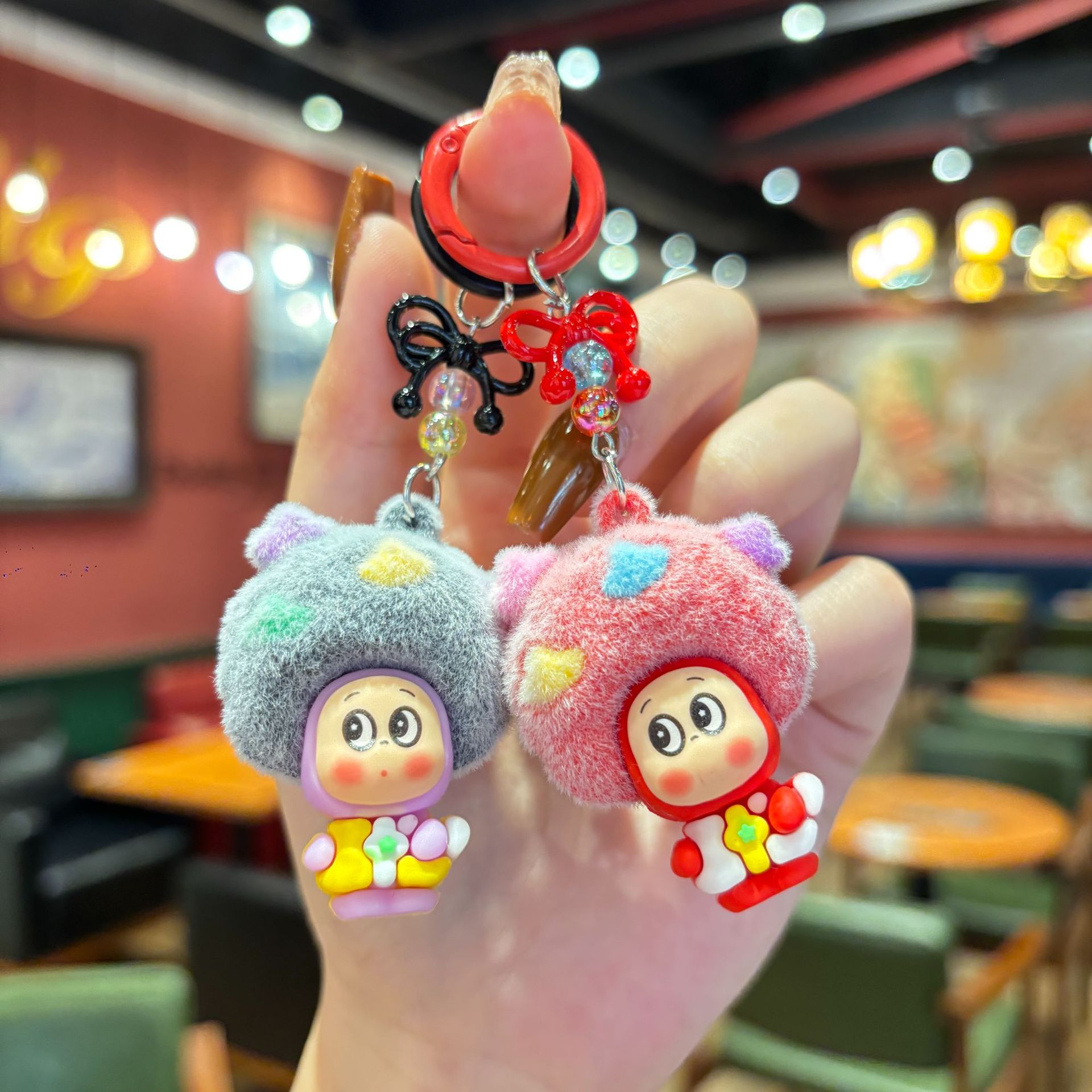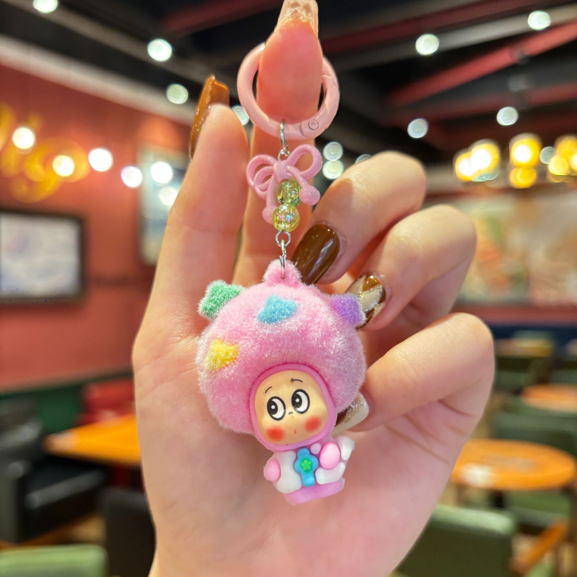 植绒爆炸头星星崽钥匙扣网红萌粒可爱公仔挂件闺蜜学生包包小挂饰