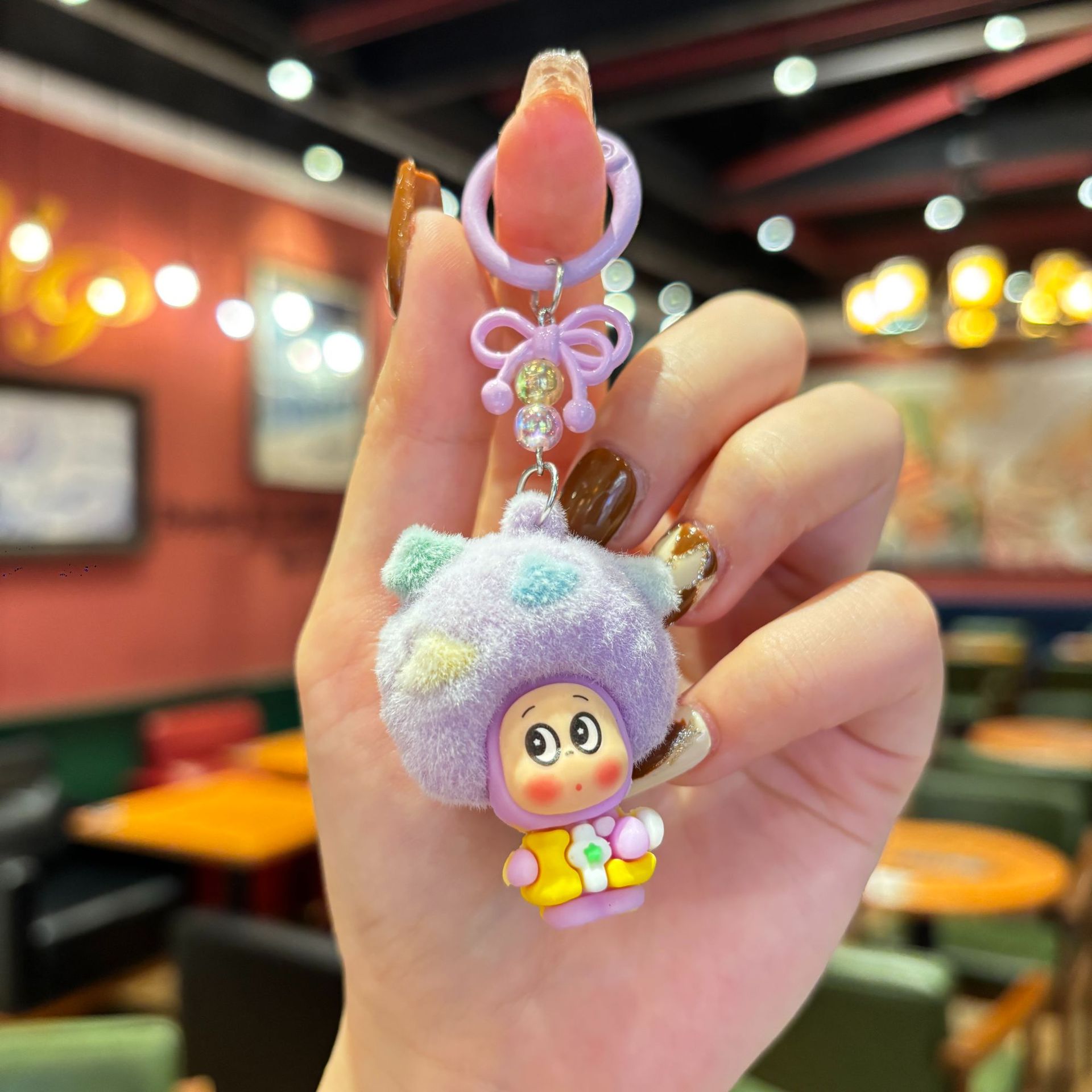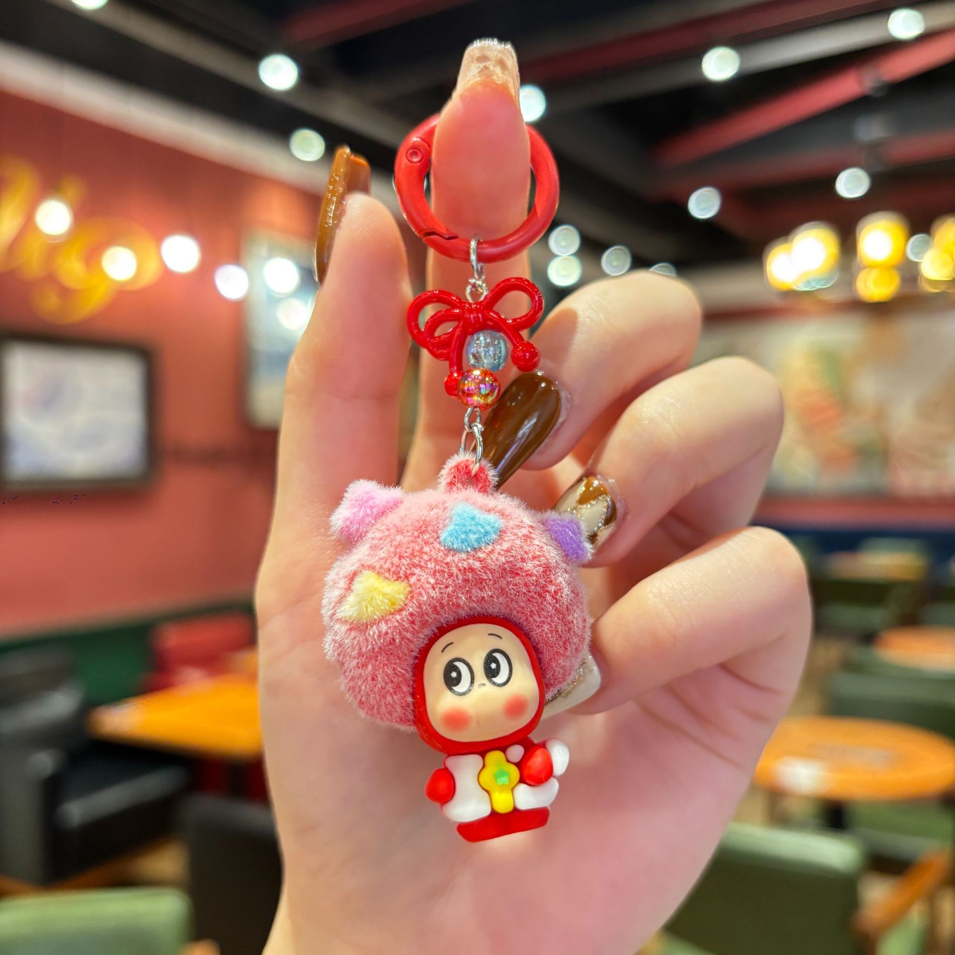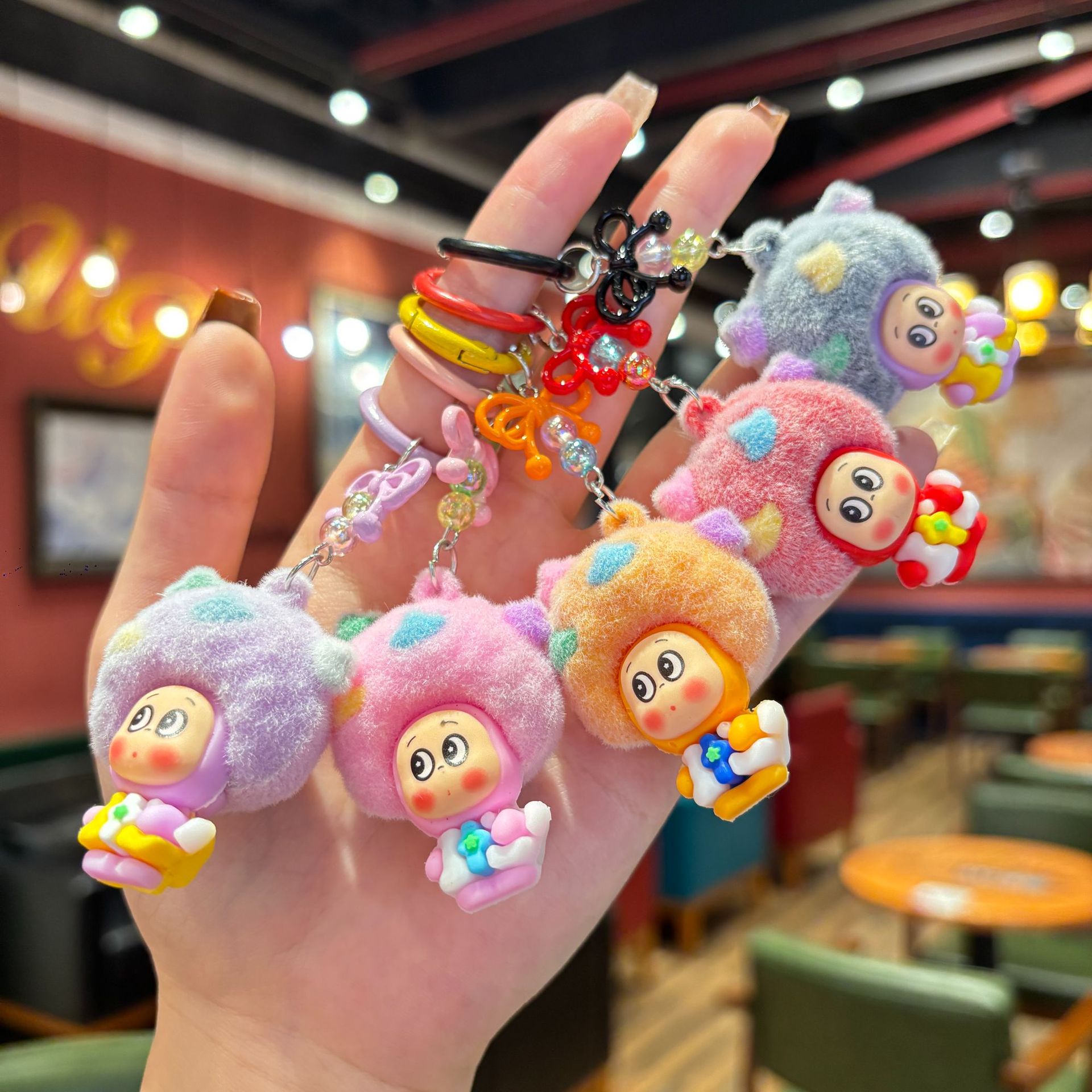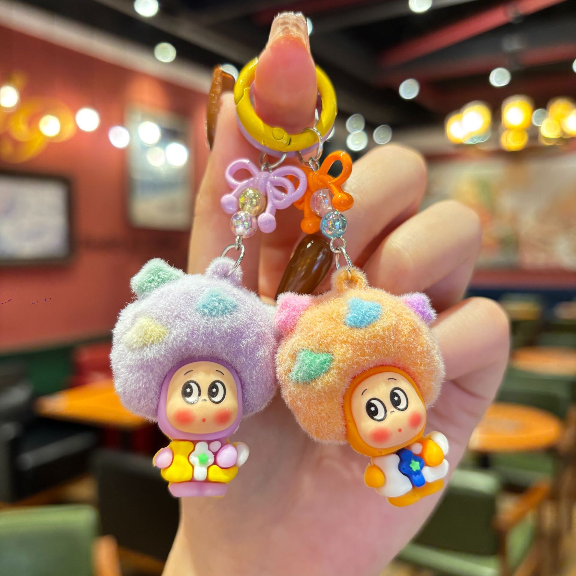 植绒爆炸头星星崽钥匙扣网红萌粒可爱公仔挂件闺蜜学生包包小挂饰