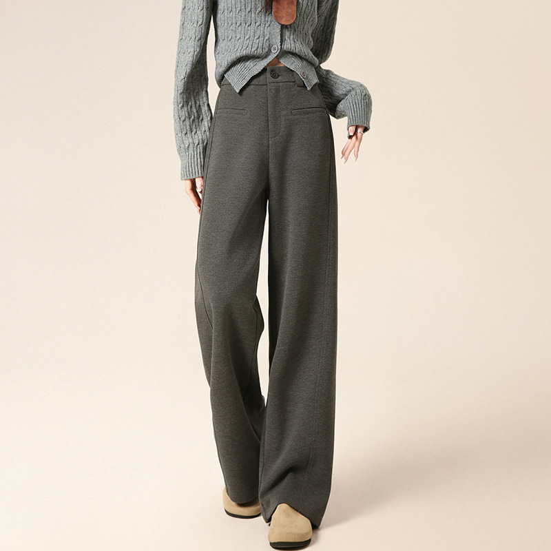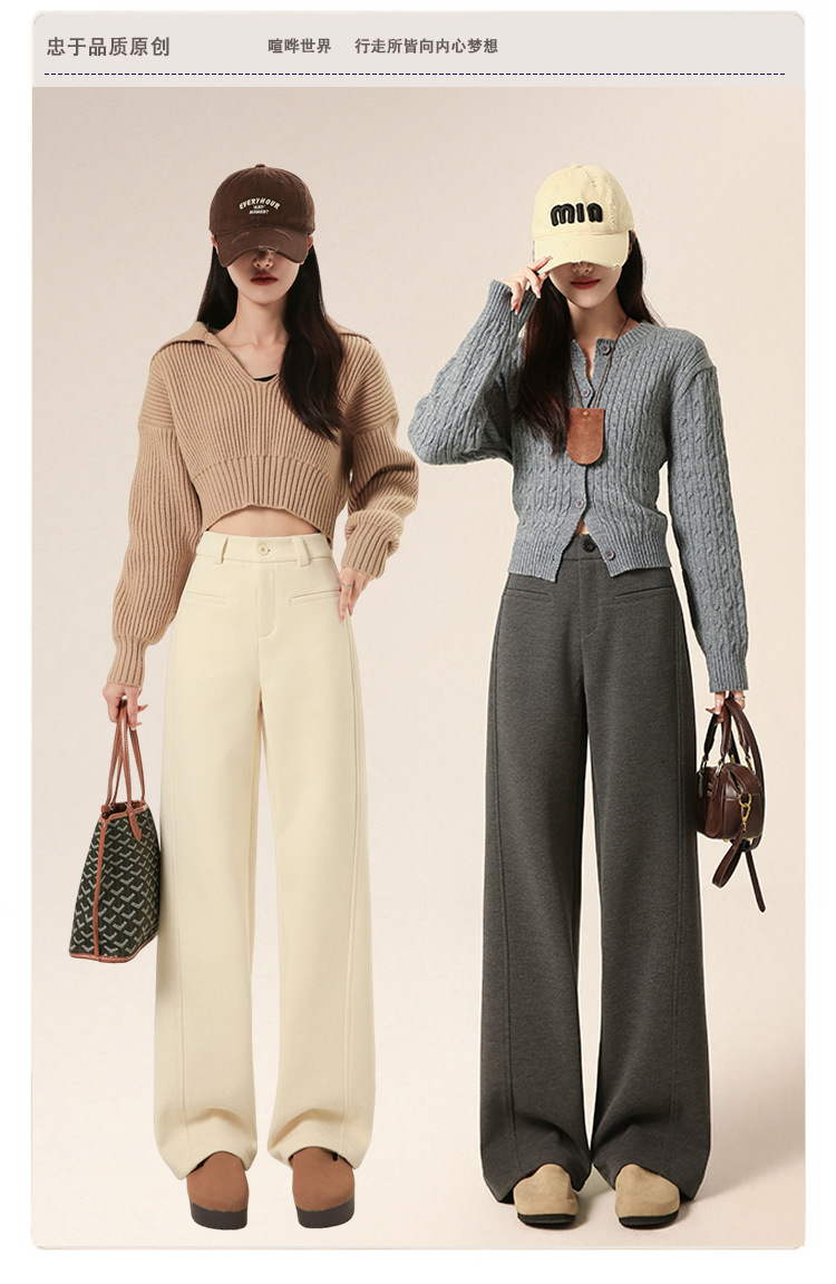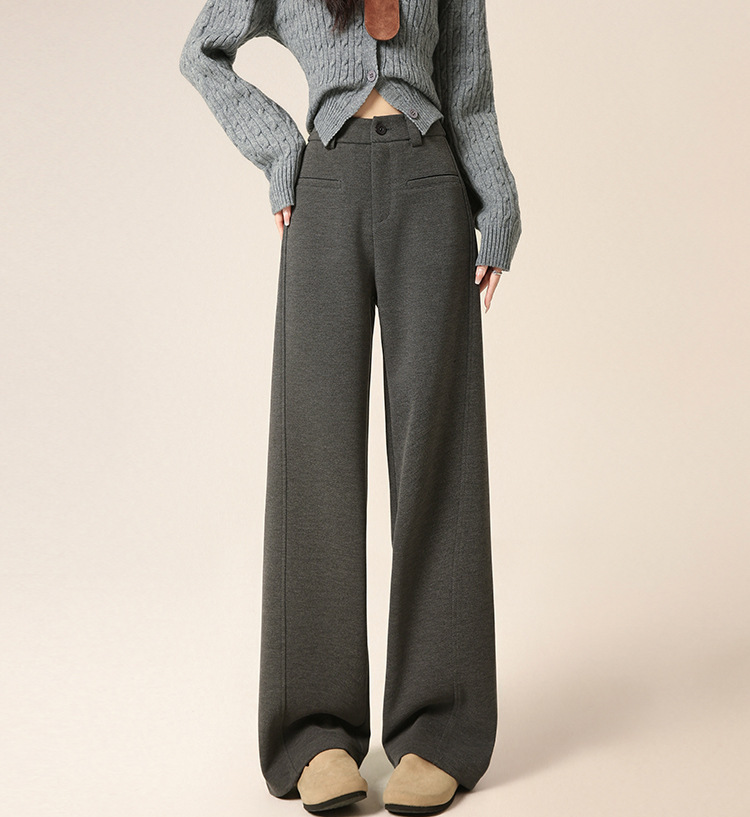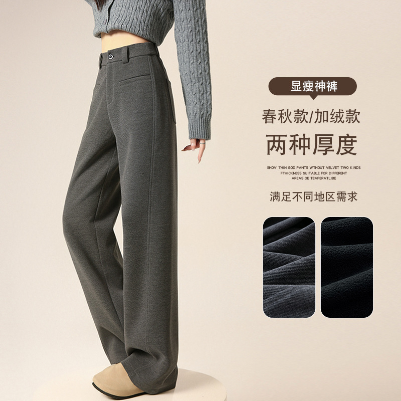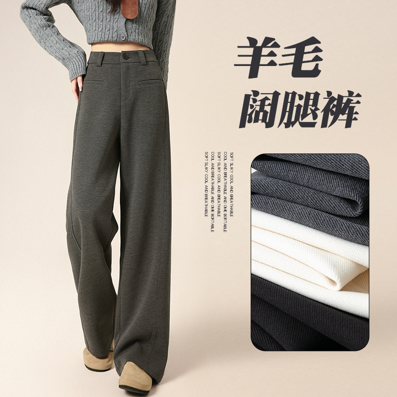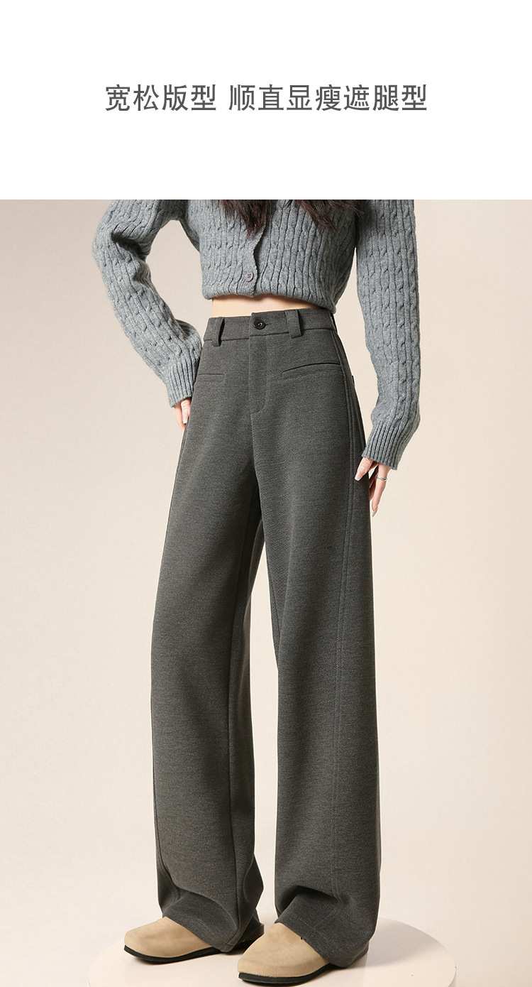 人字纹阔腿裤女2025年秋冬款新款窄版高腰显瘦时尚百搭宽松直筒裤