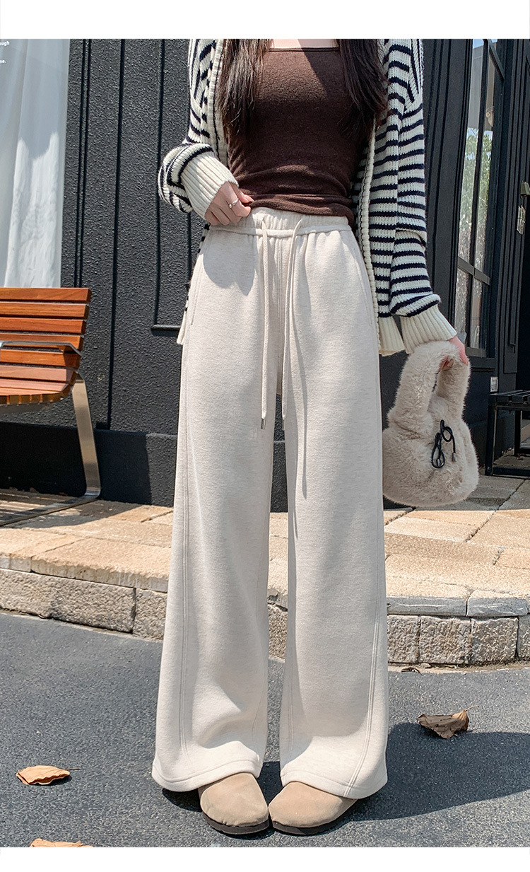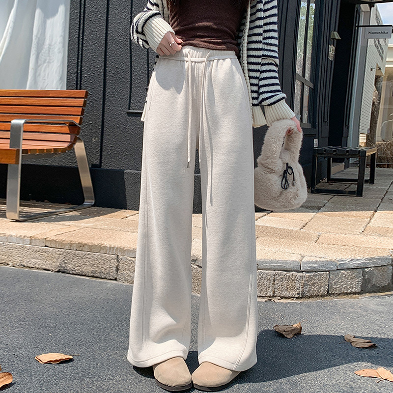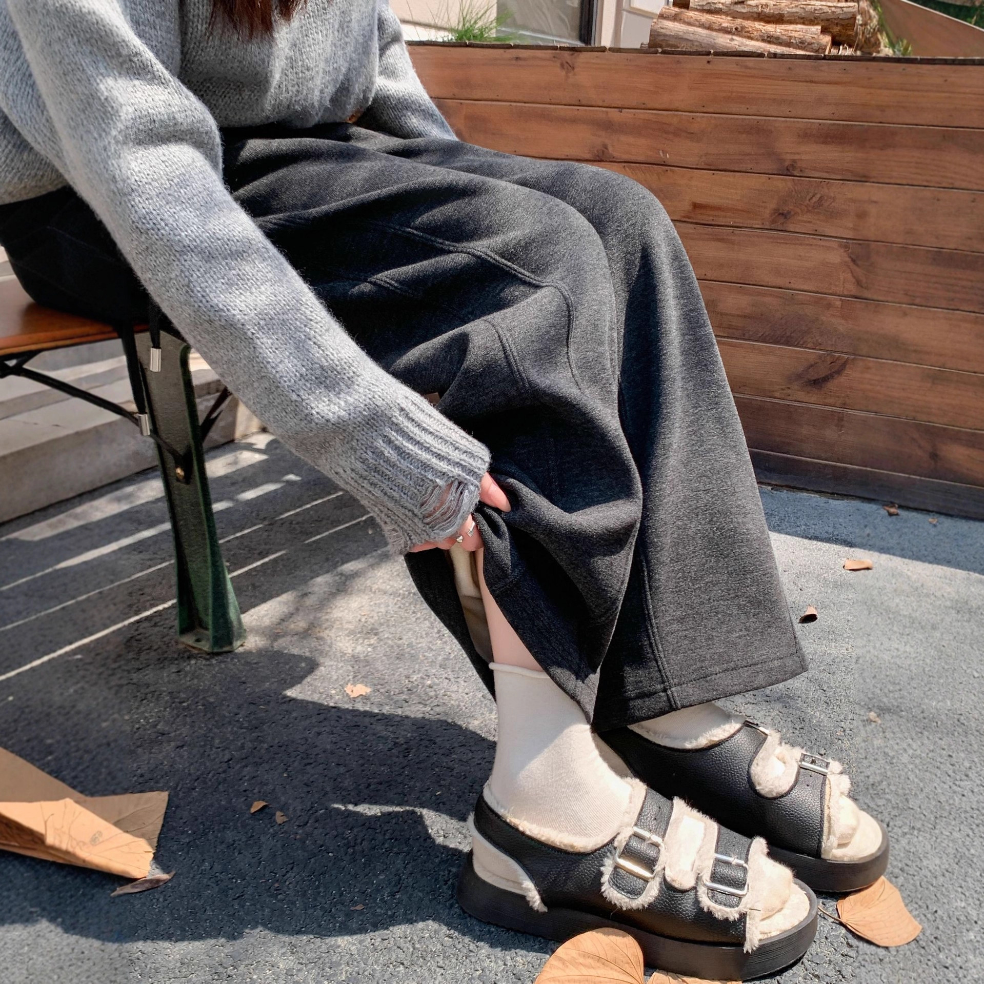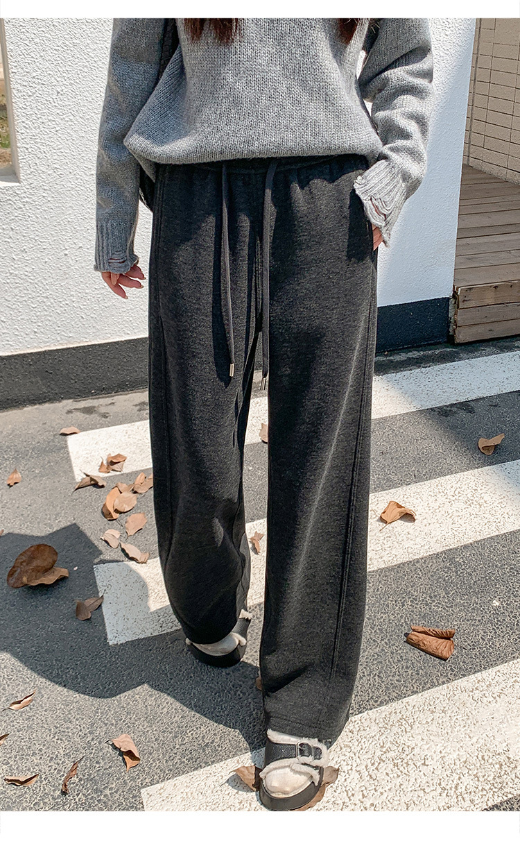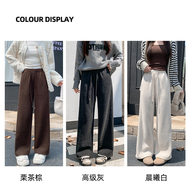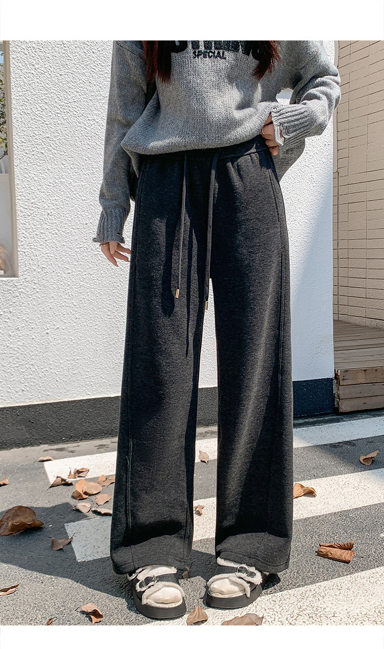 秋冬加绒醋酸羊绒灰色阔腿休闲裤女宽松bf慵懒风坠感长裤拖地软糯