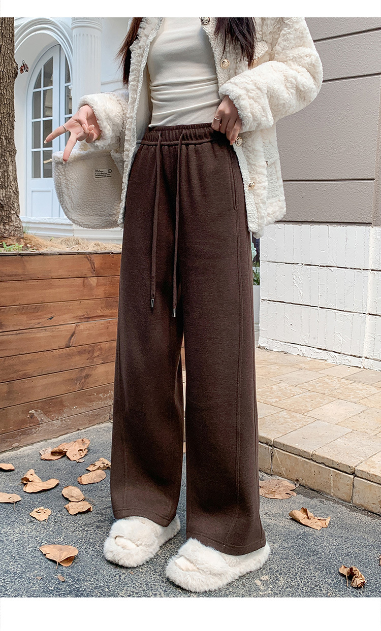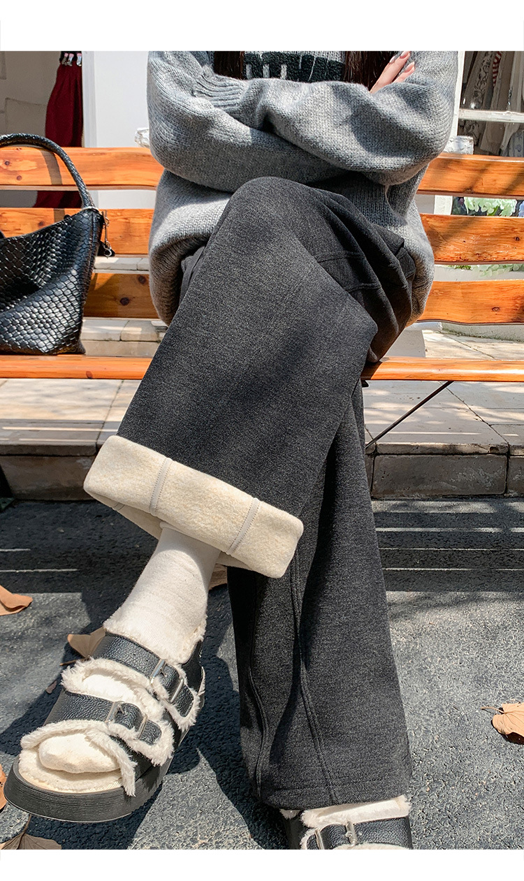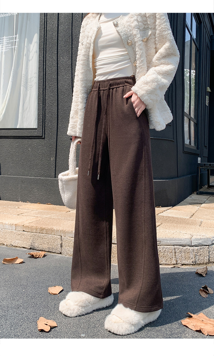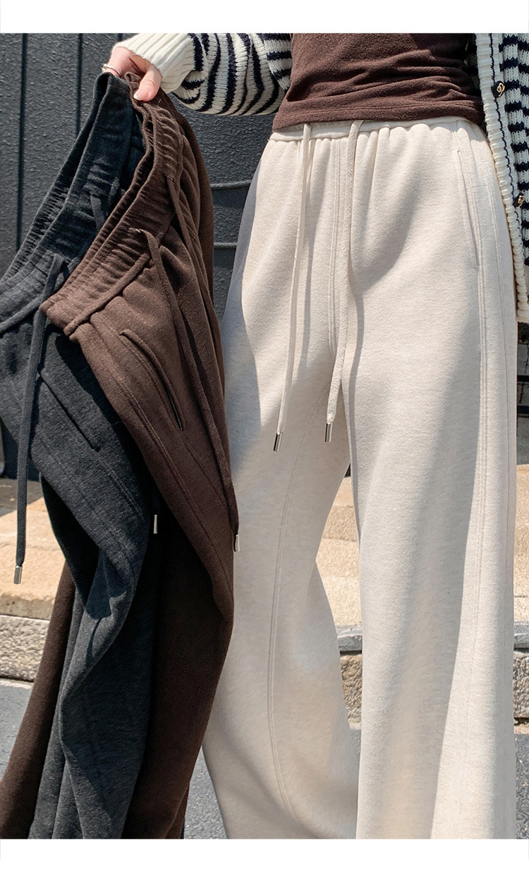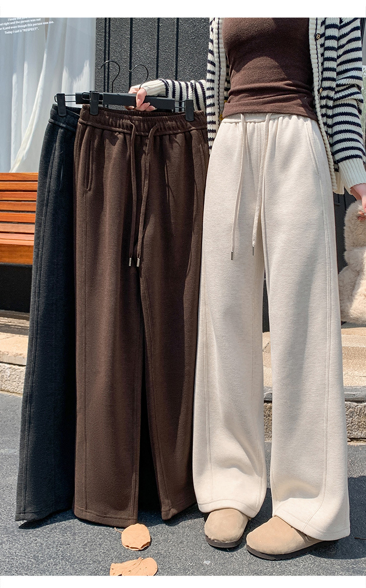 秋冬加绒醋酸羊绒灰色阔腿休闲裤女宽松bf慵懒风坠感长裤拖地软糯