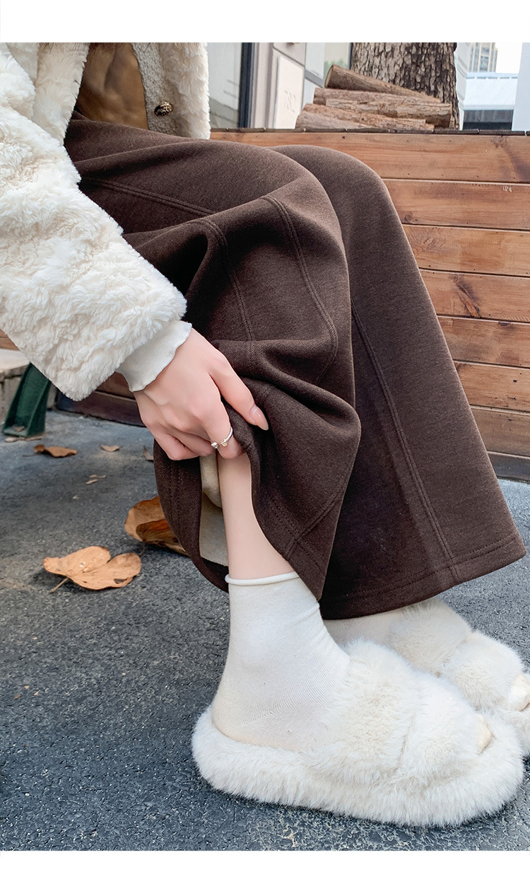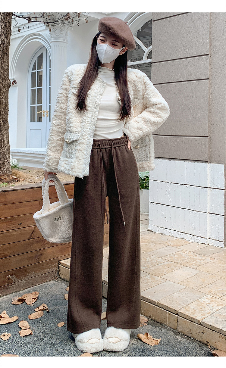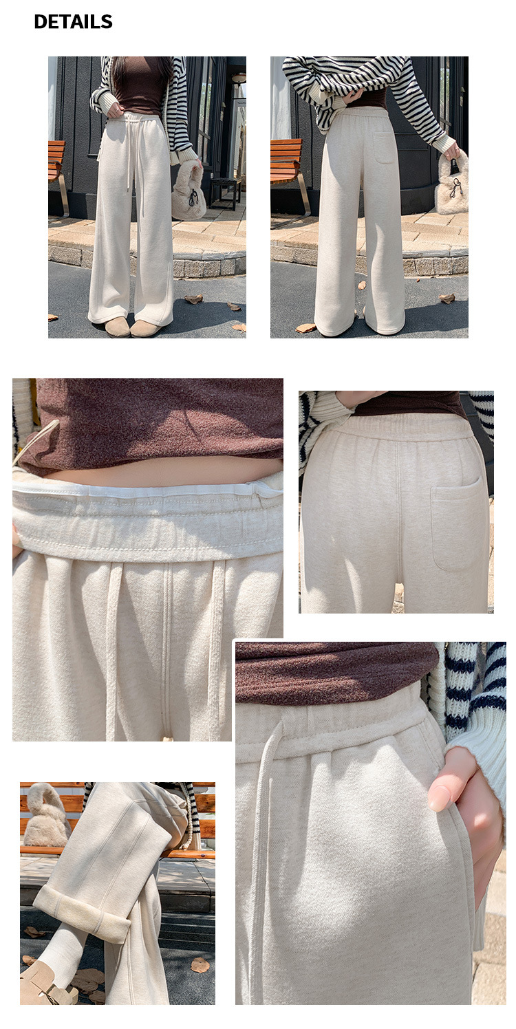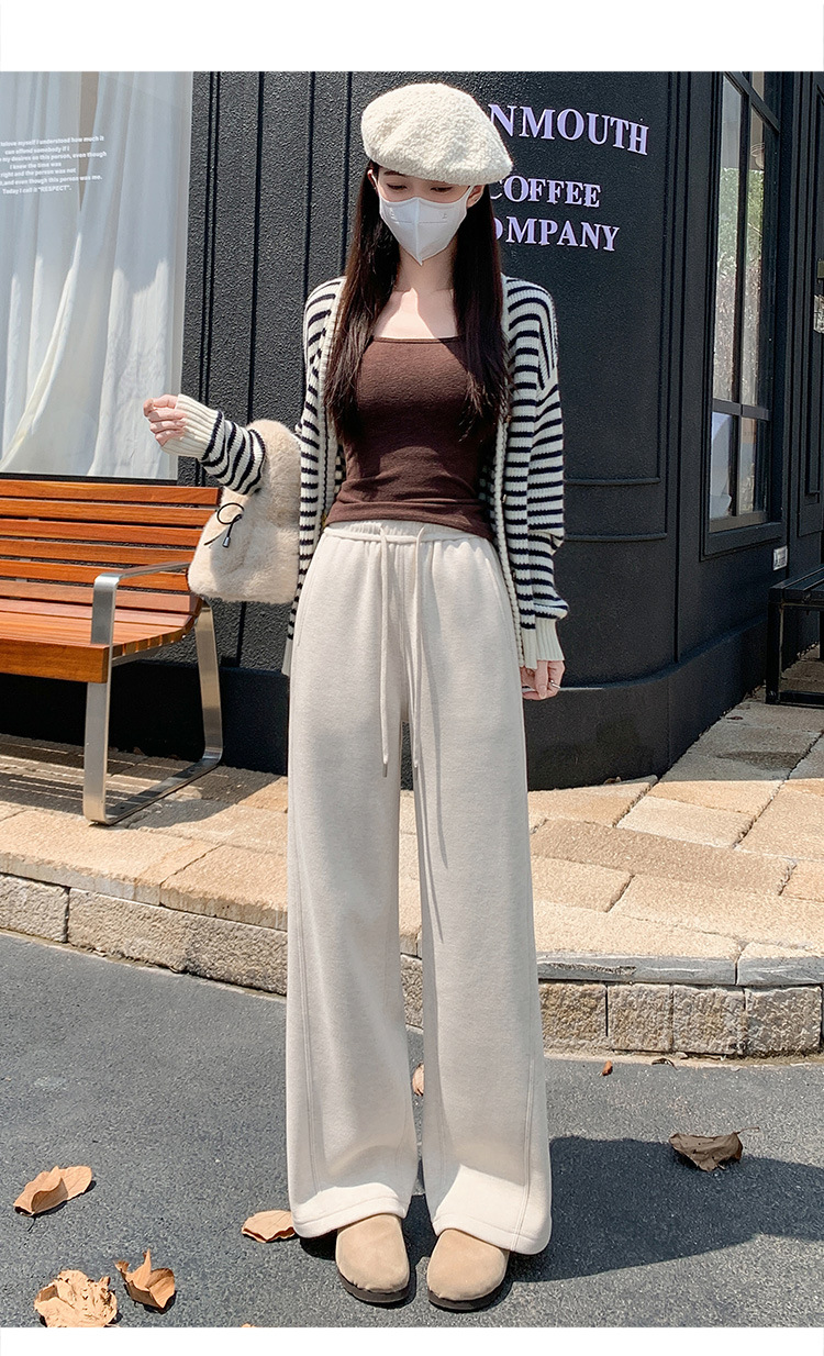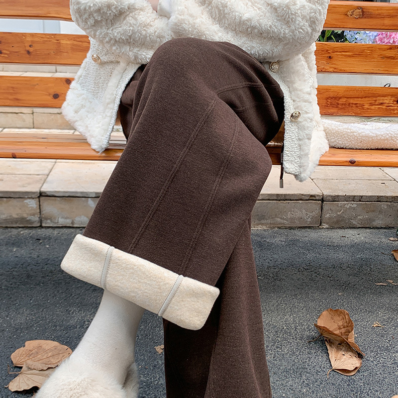 秋冬加绒醋酸羊绒灰色阔腿休闲裤女宽松bf慵懒风坠感长裤拖地软糯