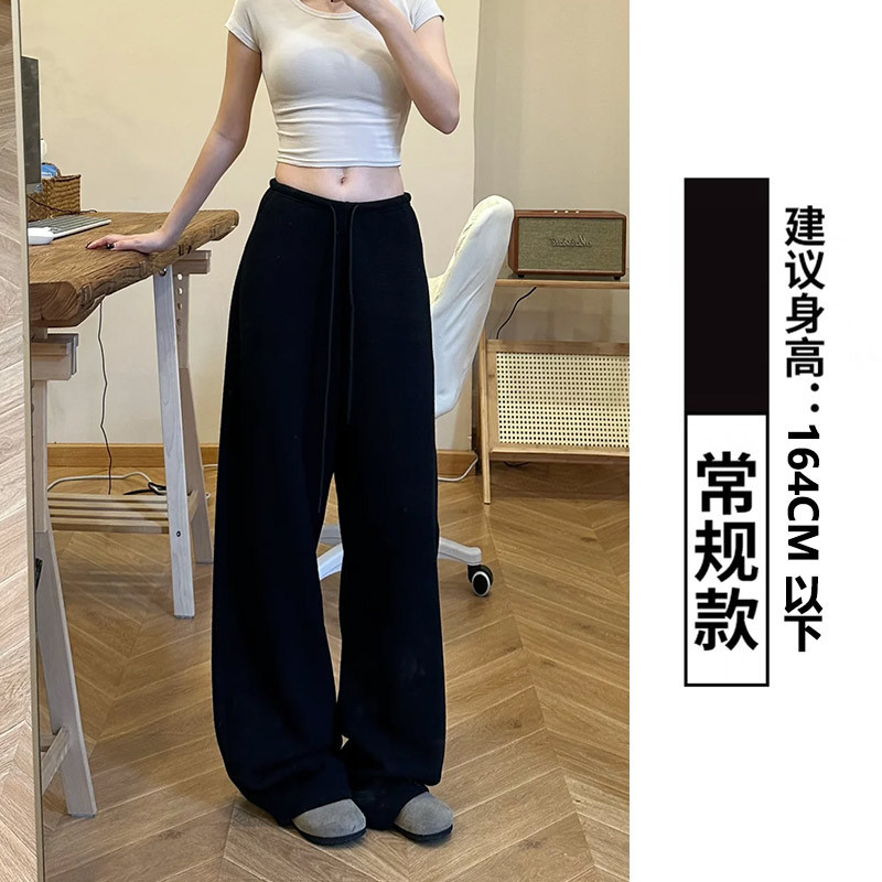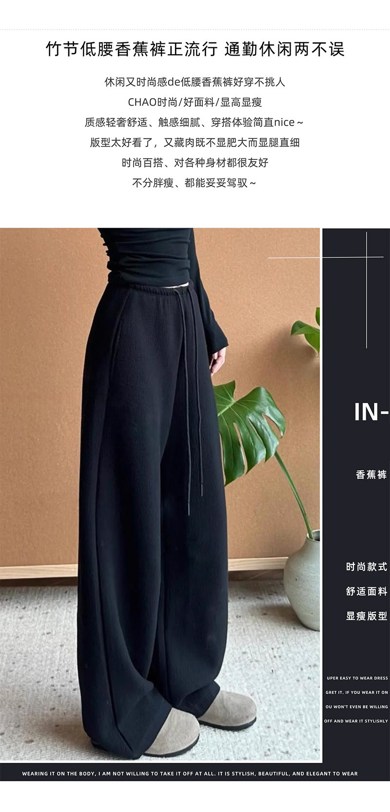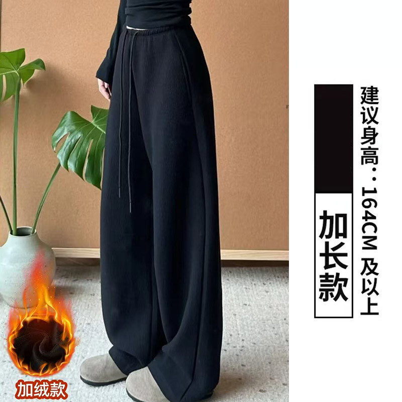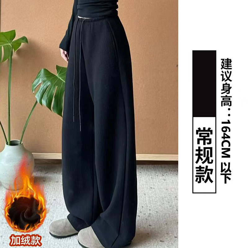 黑色运动裤女秋冬季2025新款休闲加绒加厚卫裤保暖直筒香蕉阔腿裤