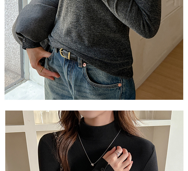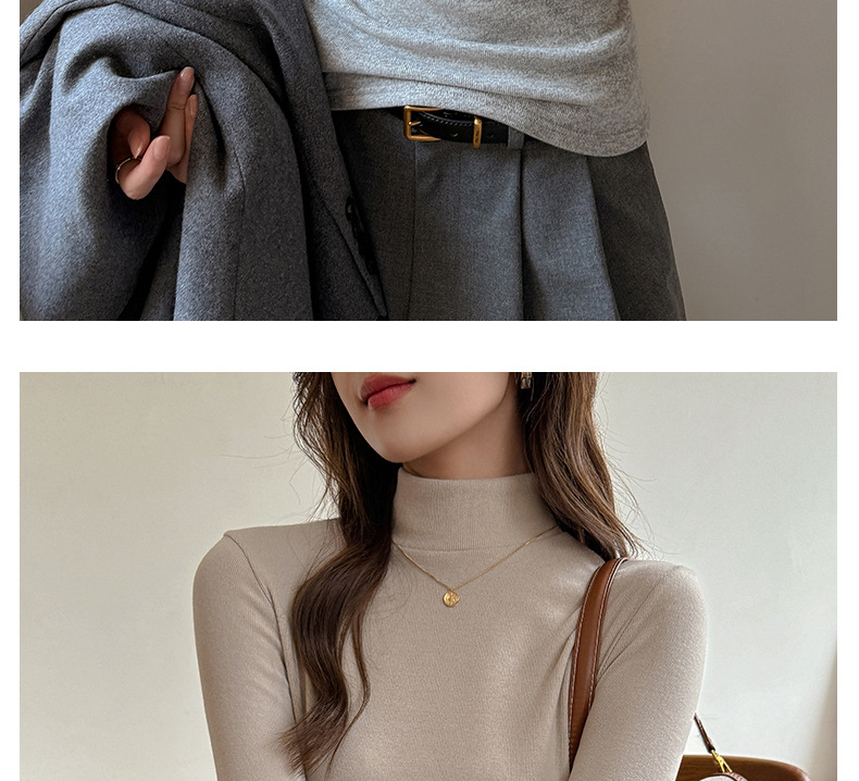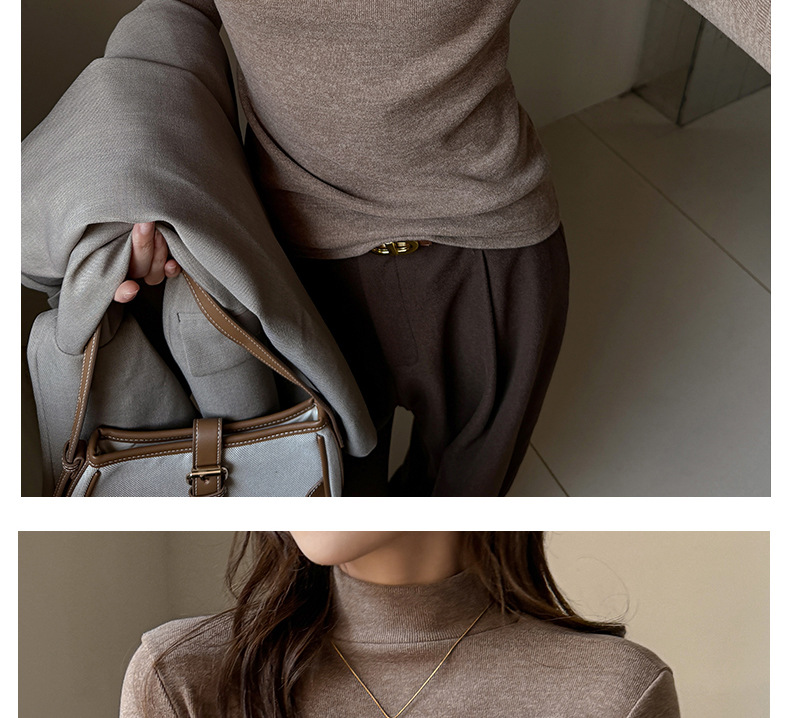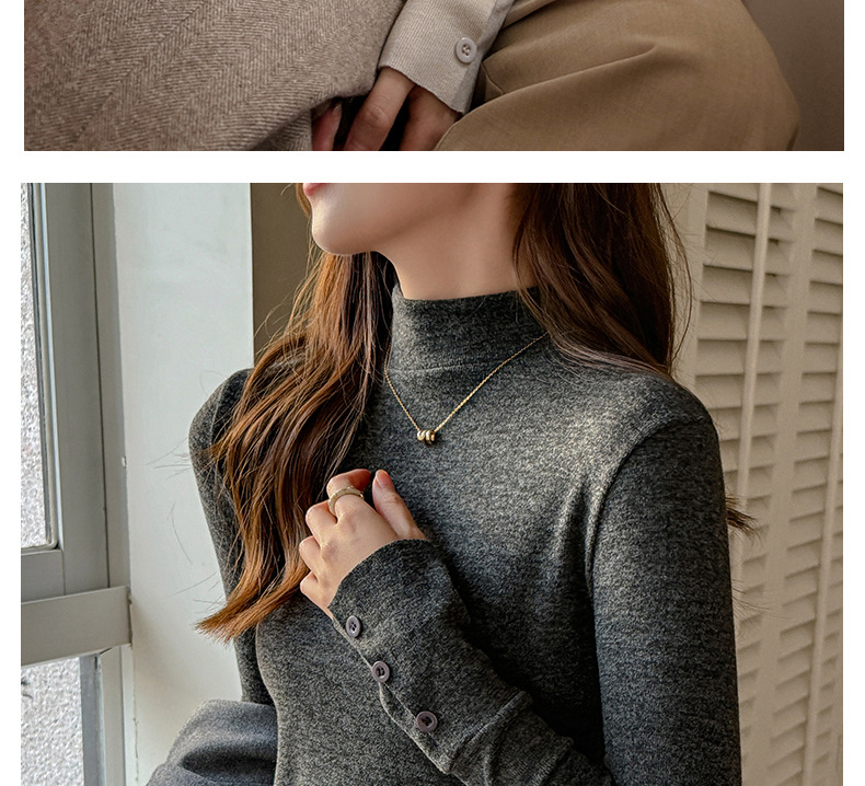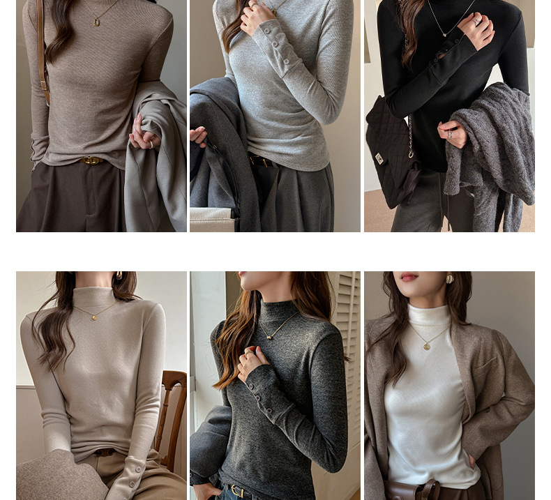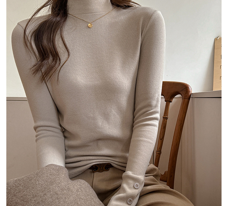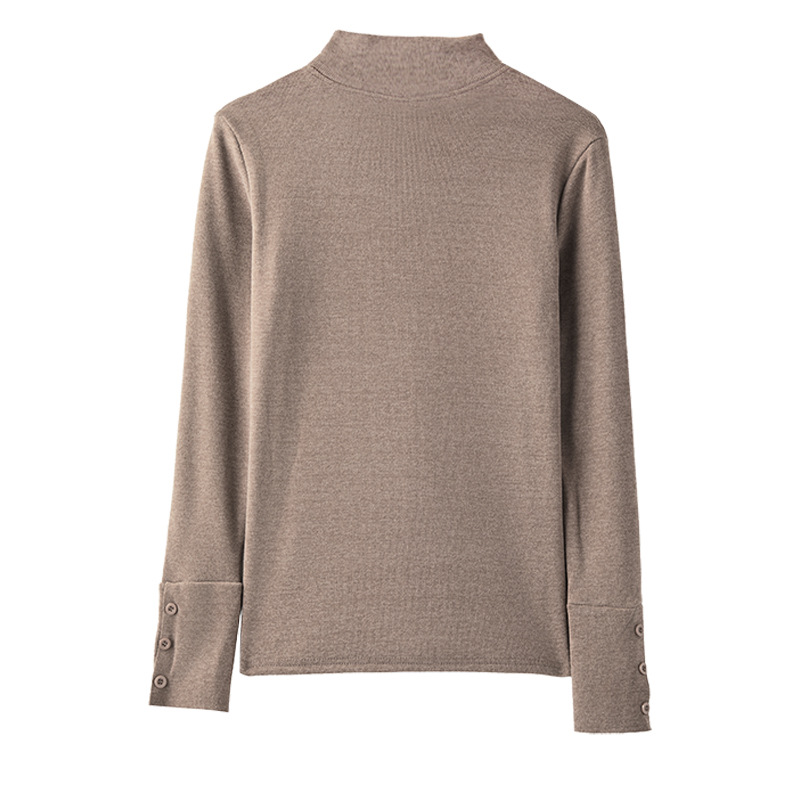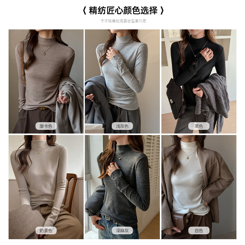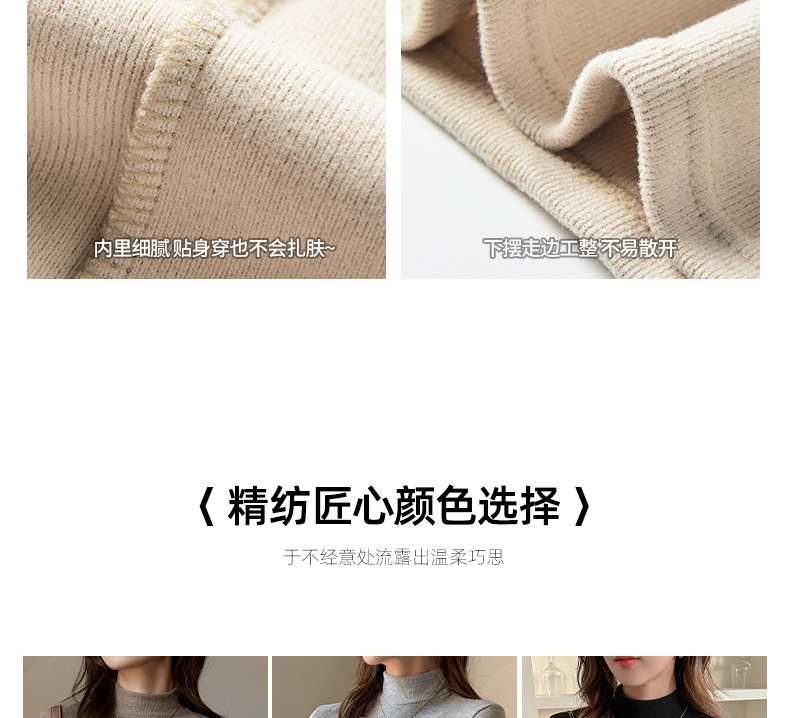 半高领磨毛设计感仿羊绒长袖打底衫女士内搭秋冬中领t恤修身上衣