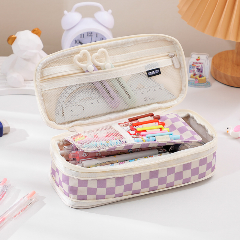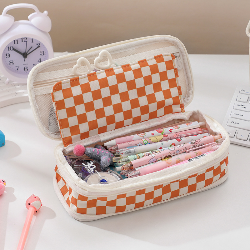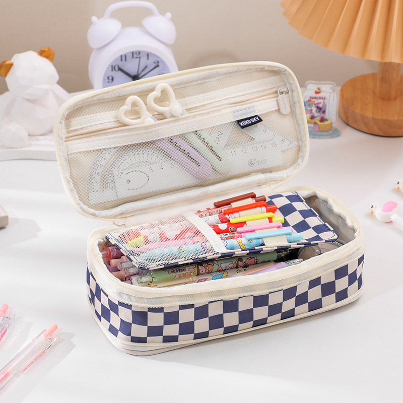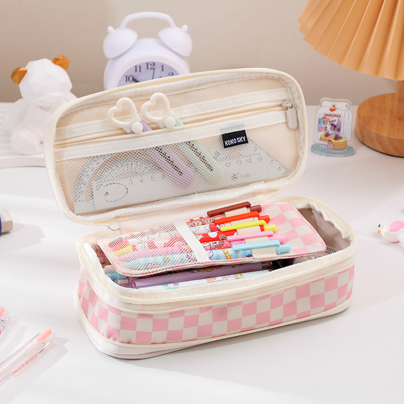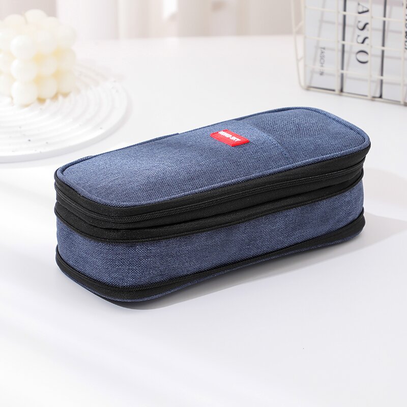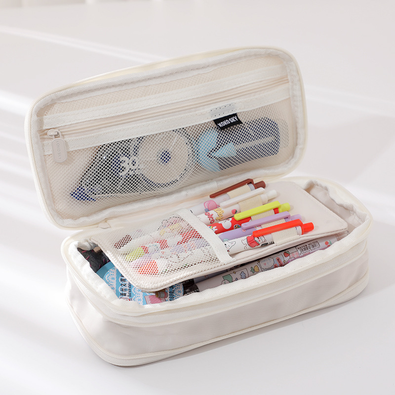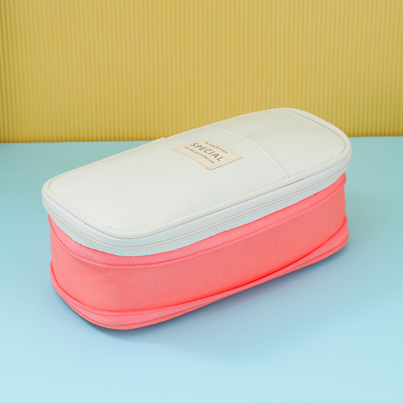 日韩风格笔袋大容量马卡龙拼色伸缩帆布笔袋可变身学生简约文具盒