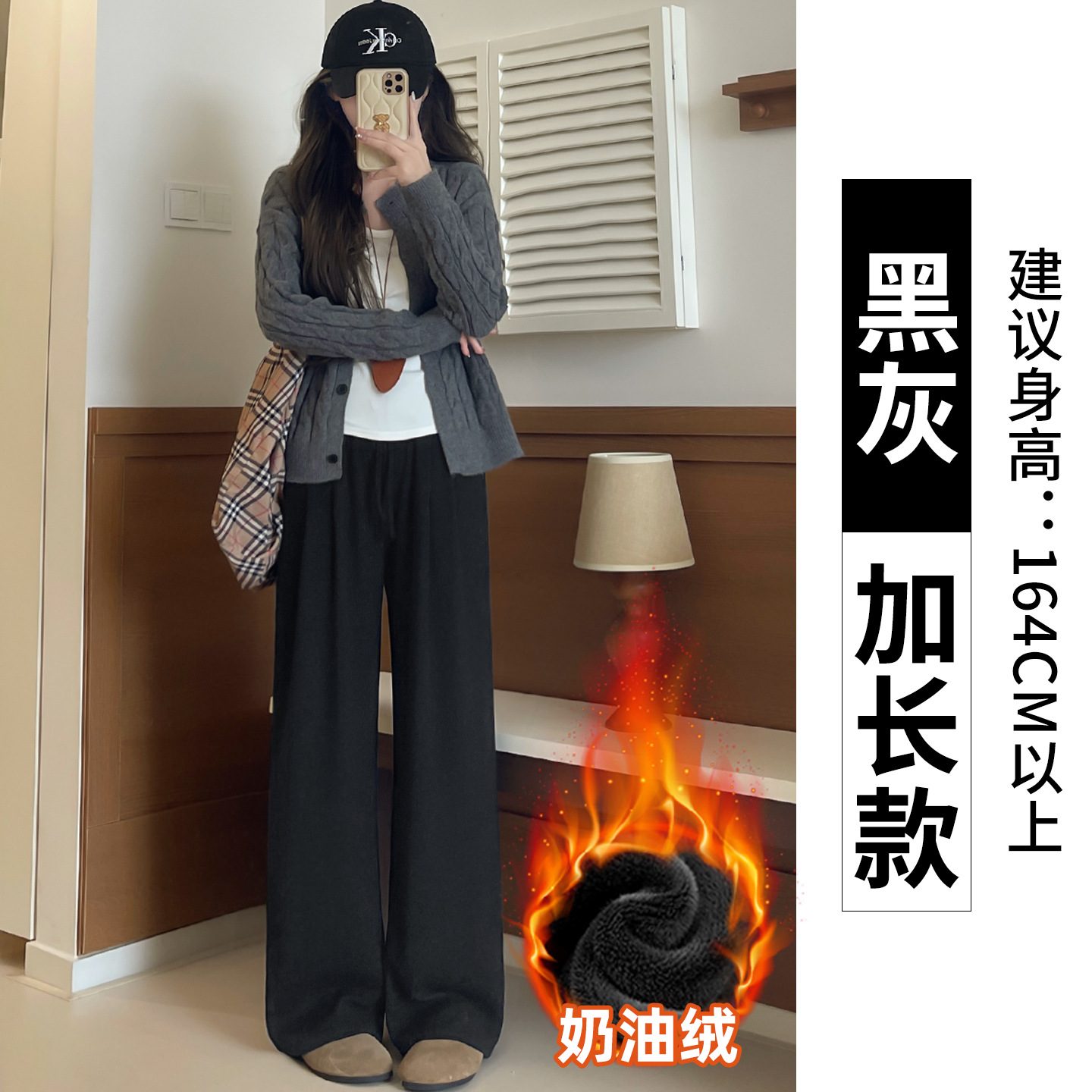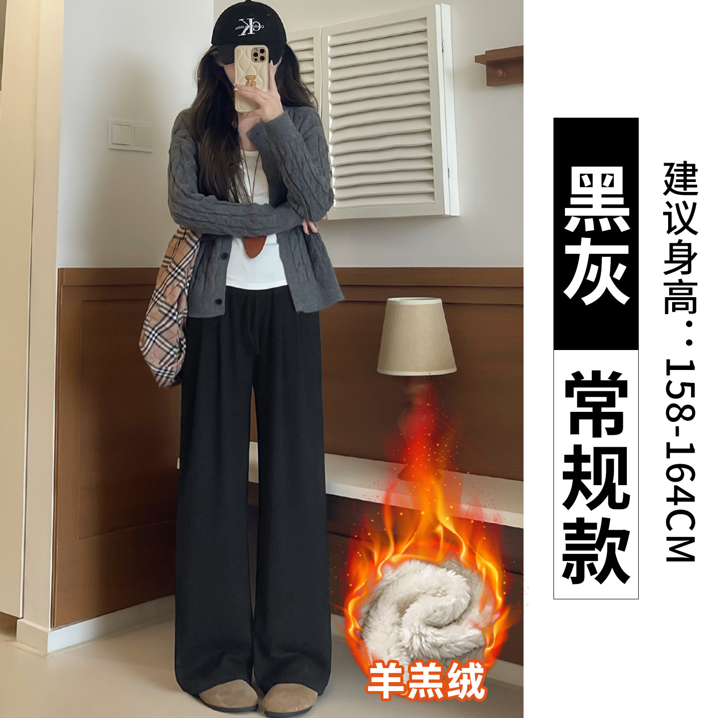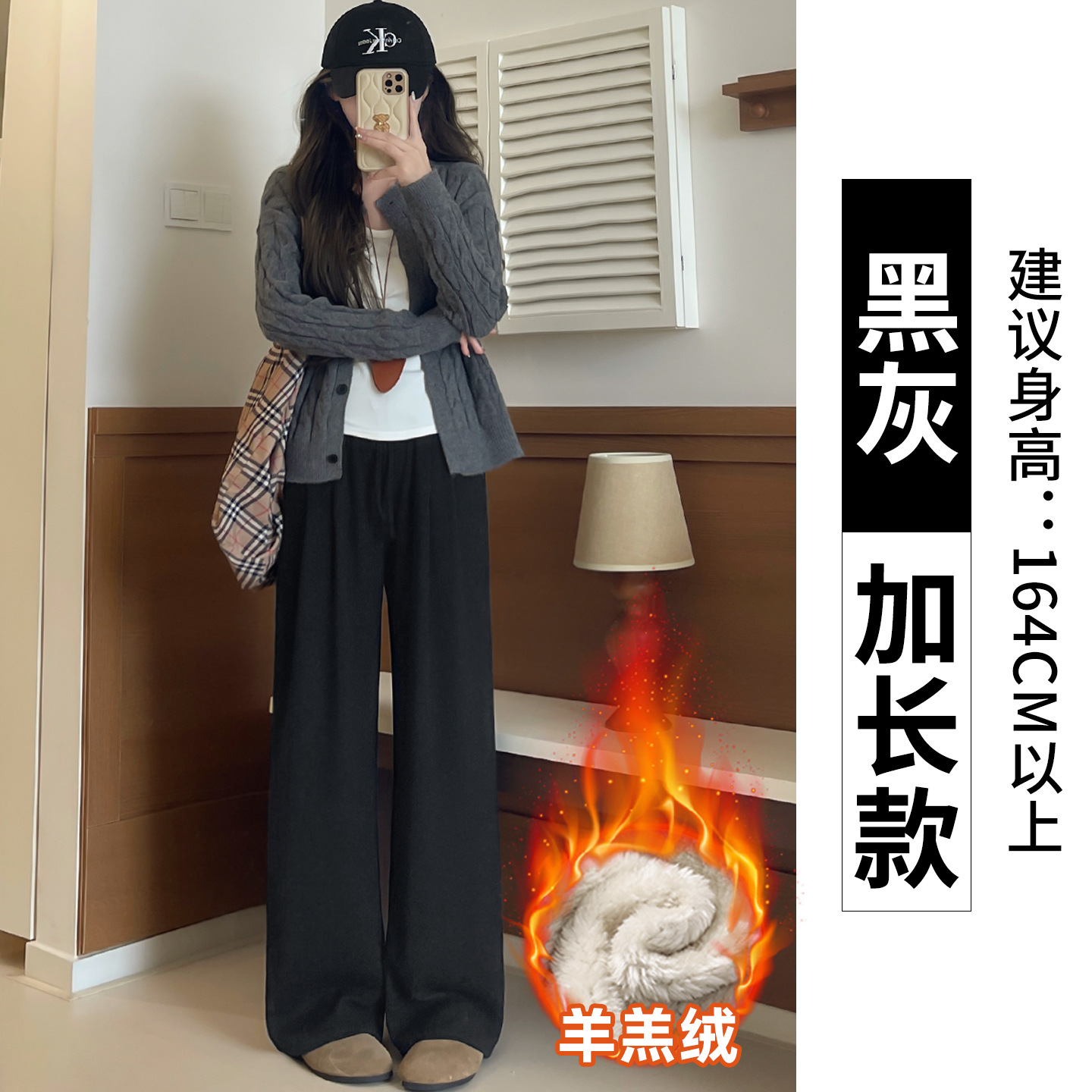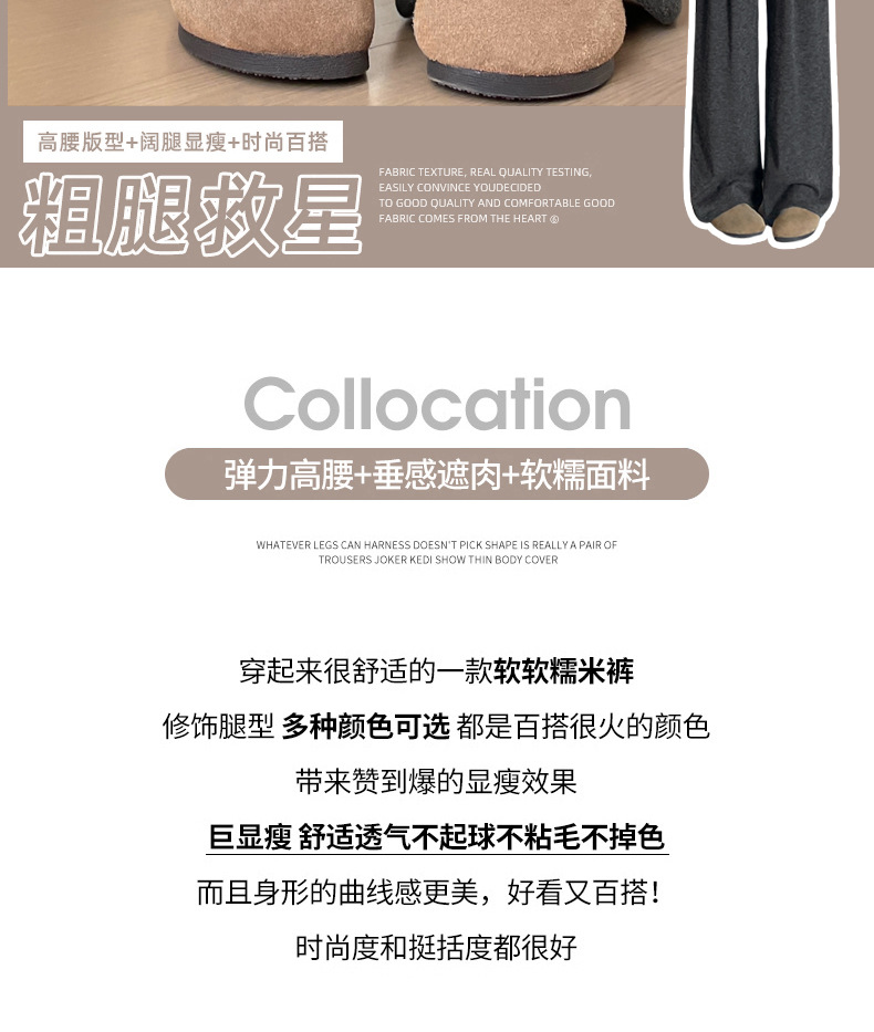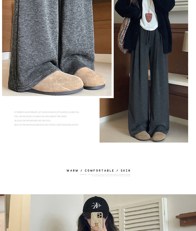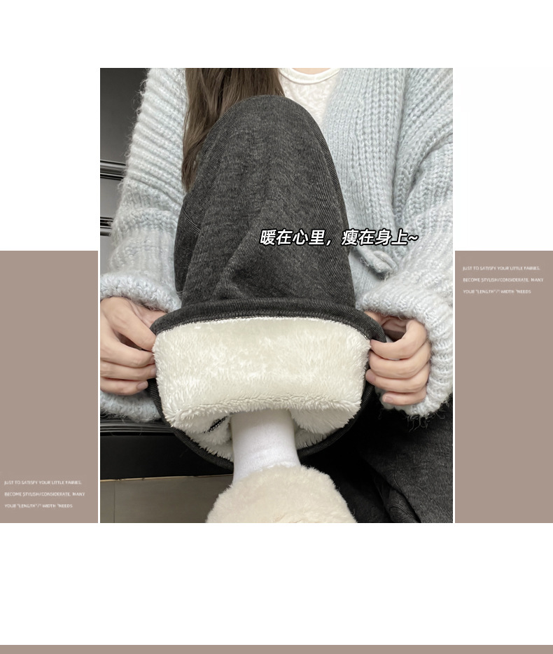 羊羔绒糯米裤女加厚2025冬新款垂感软糯直筒灰色秋冬加绒阔腿裤子