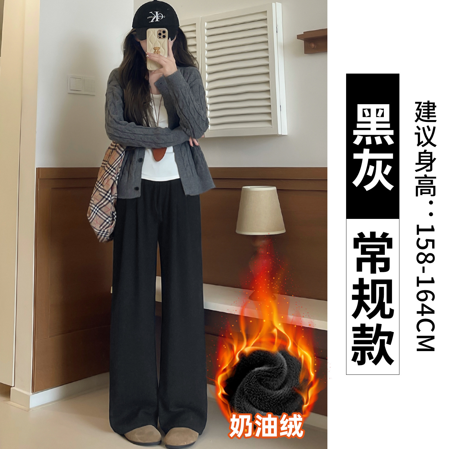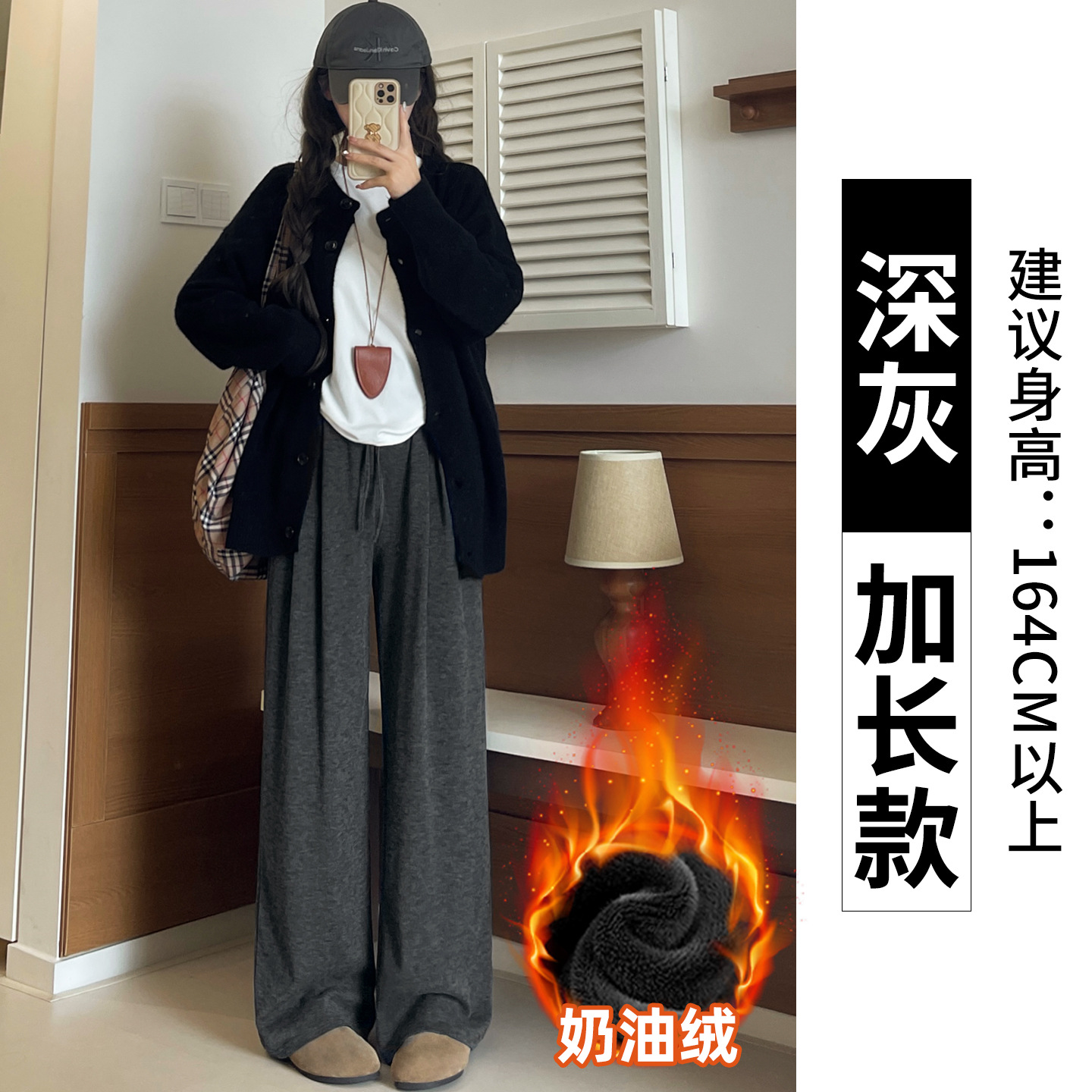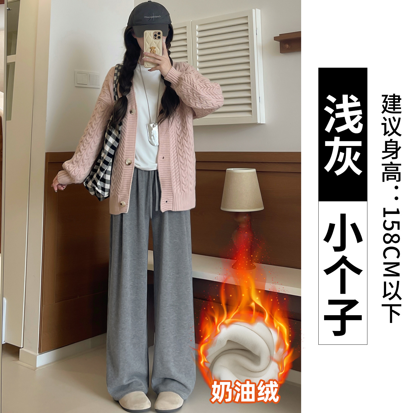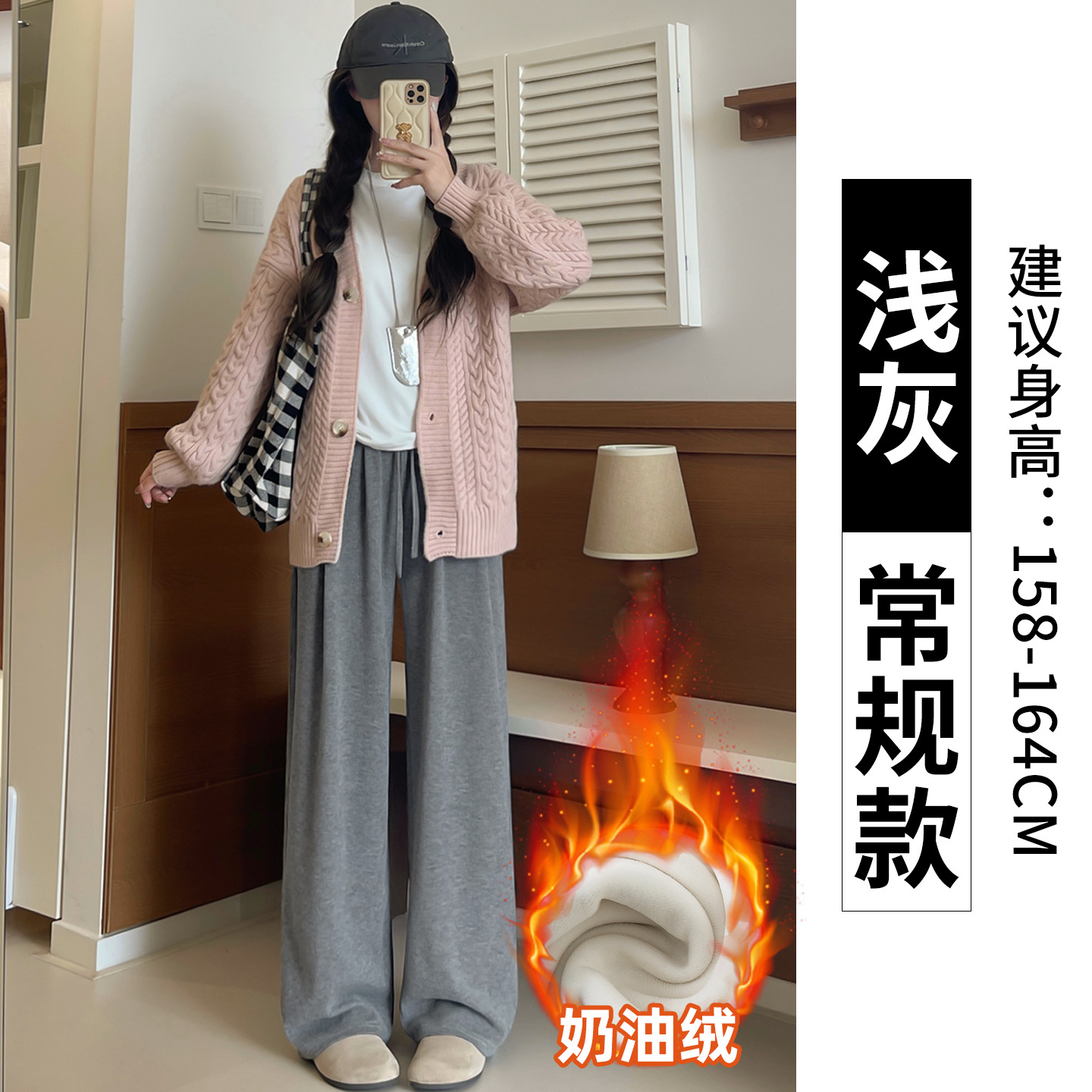 羊羔绒糯米裤女加厚2025冬新款垂感软糯直筒灰色秋冬加绒阔腿裤子