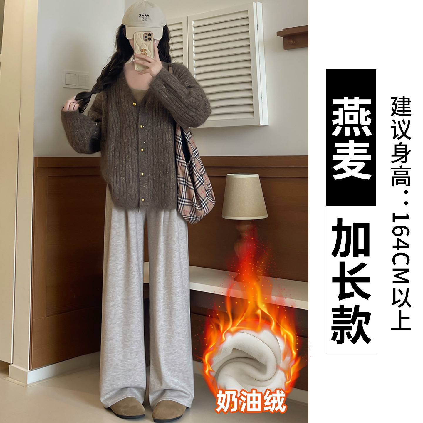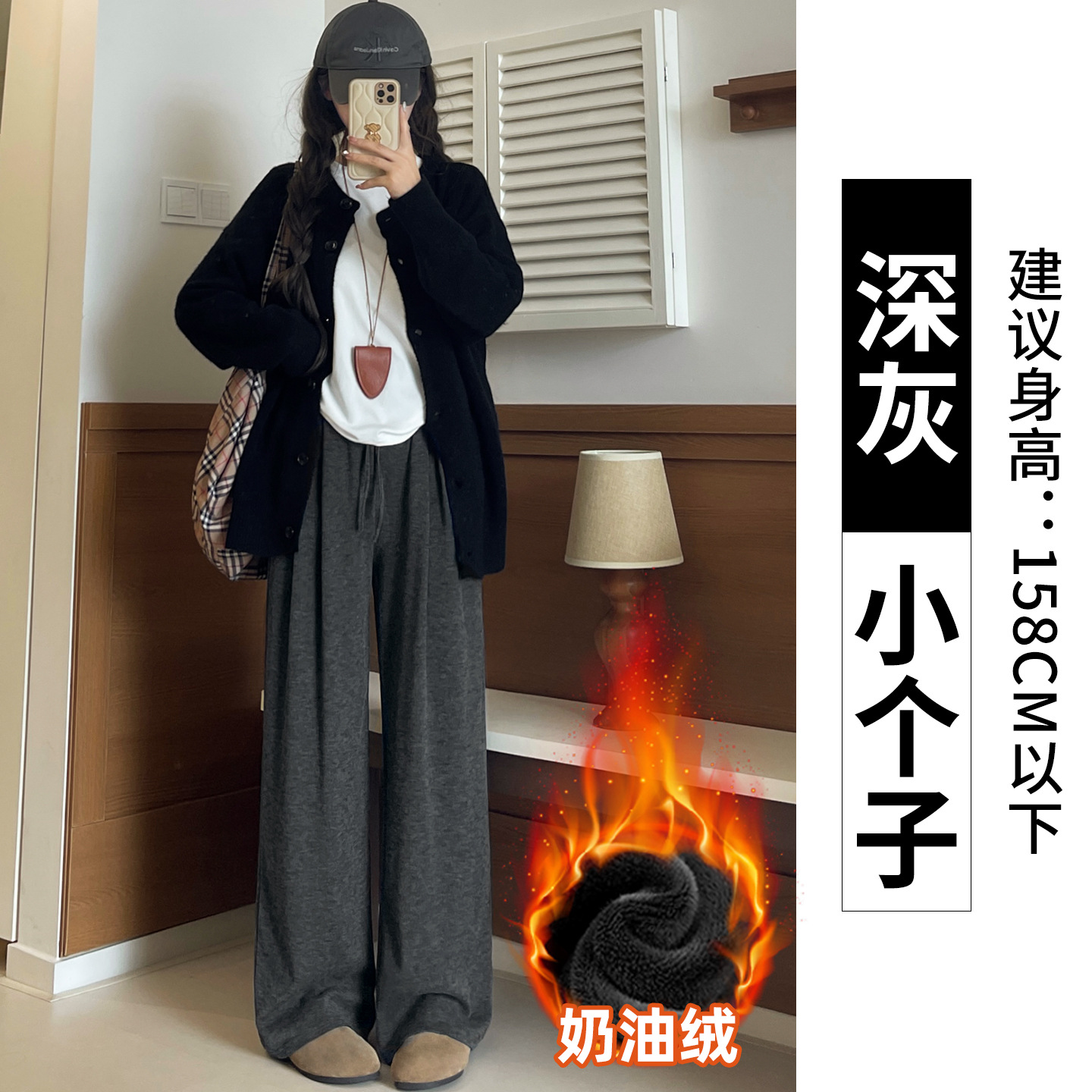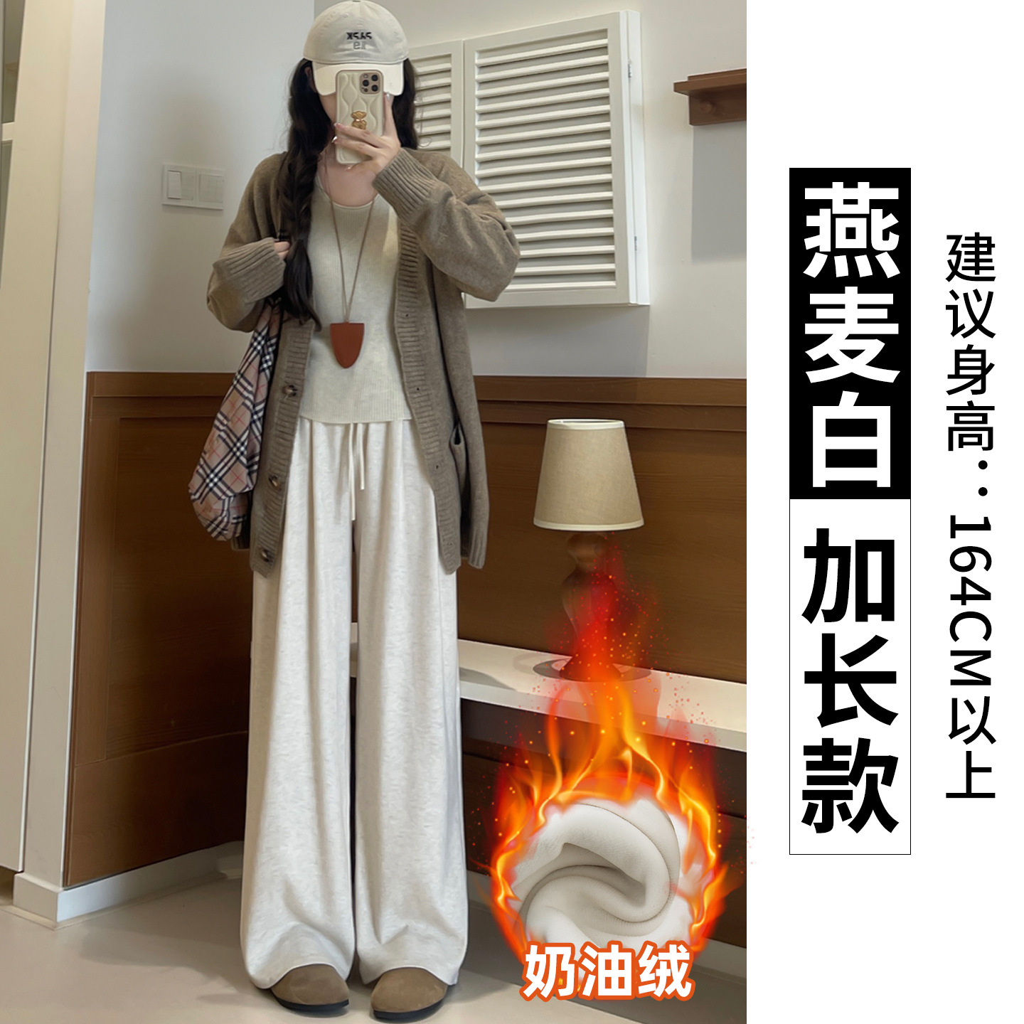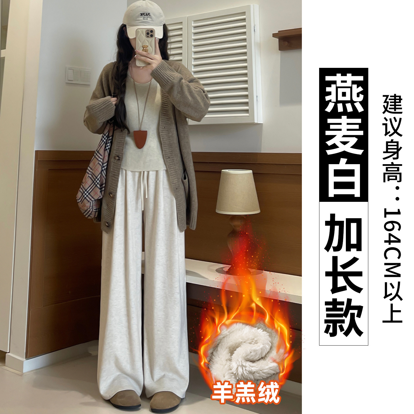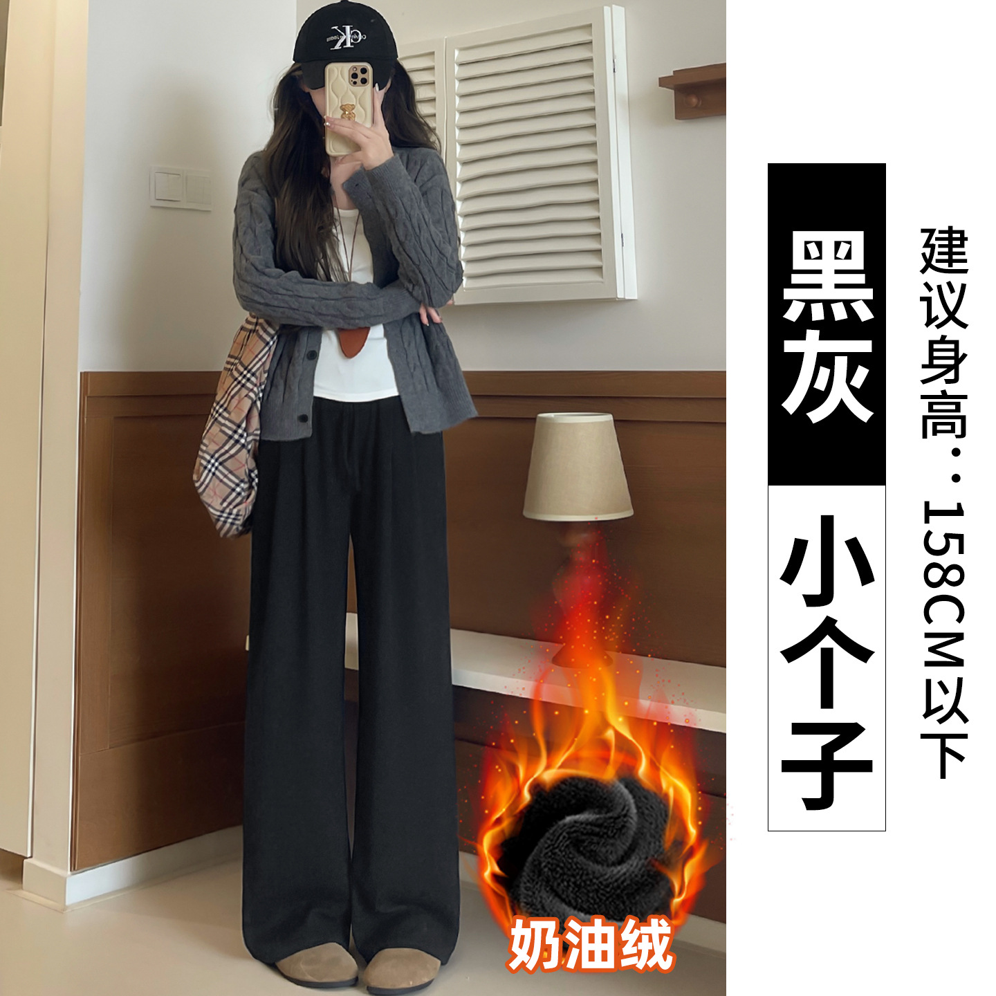 羊羔绒糯米裤女加厚2025冬新款垂感软糯直筒灰色秋冬加绒阔腿裤子