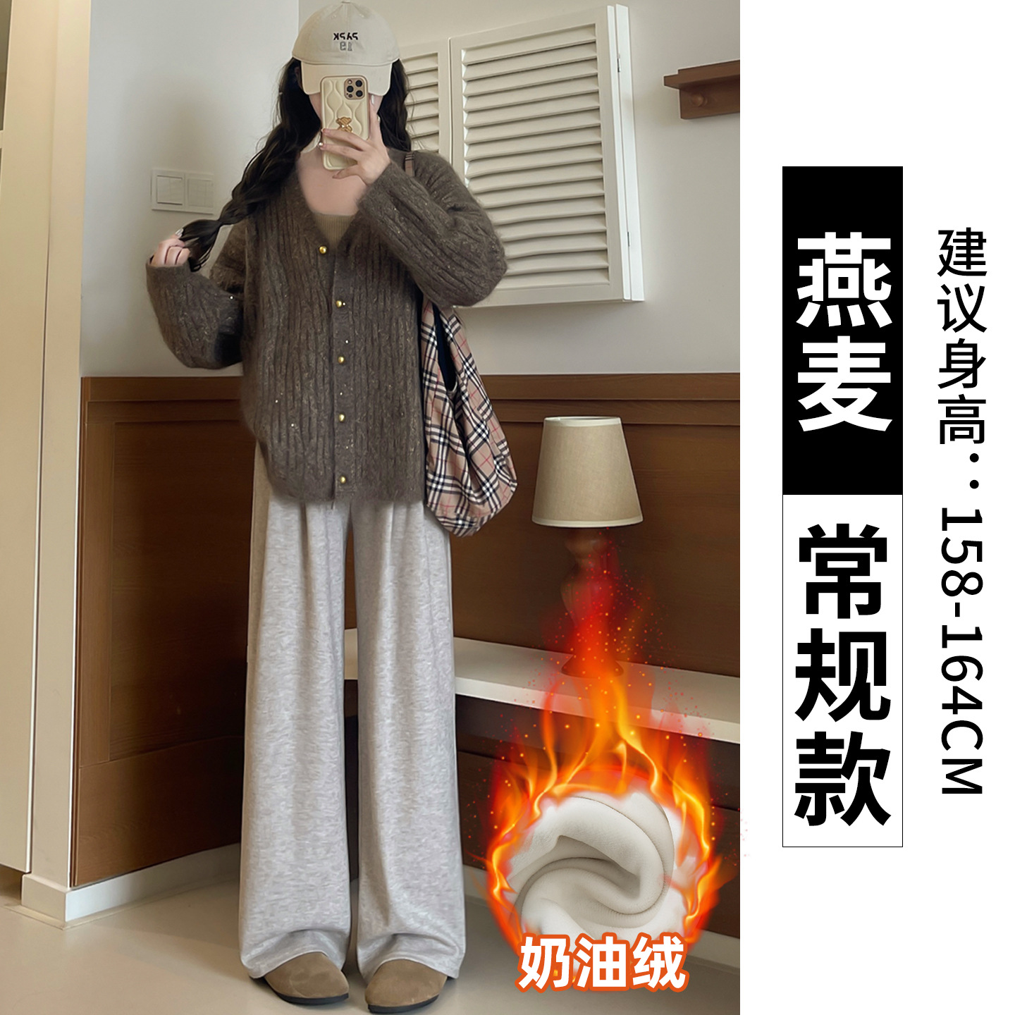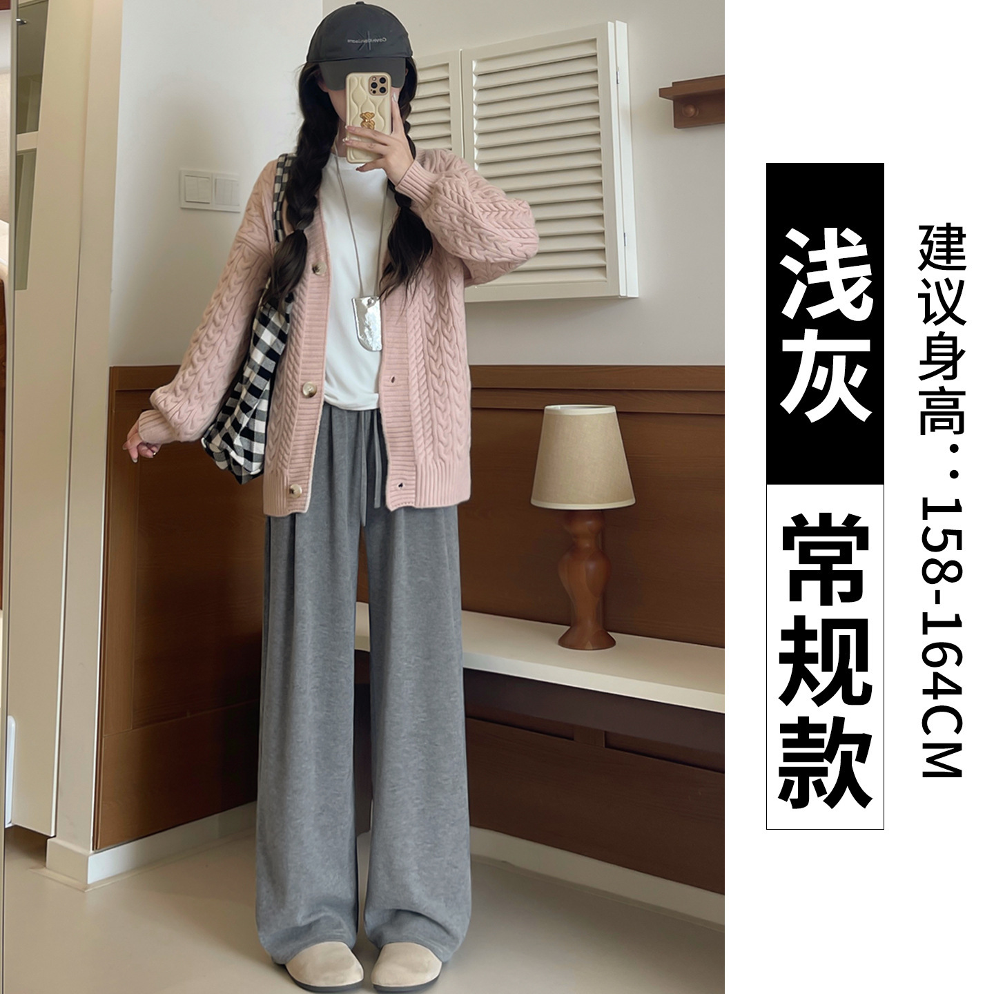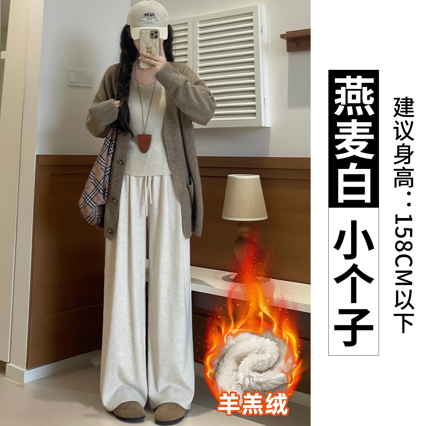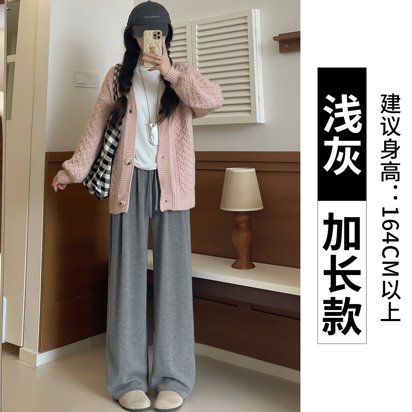 羊羔绒糯米裤女加厚2025冬新款垂感软糯直筒灰色秋冬加绒阔腿裤子