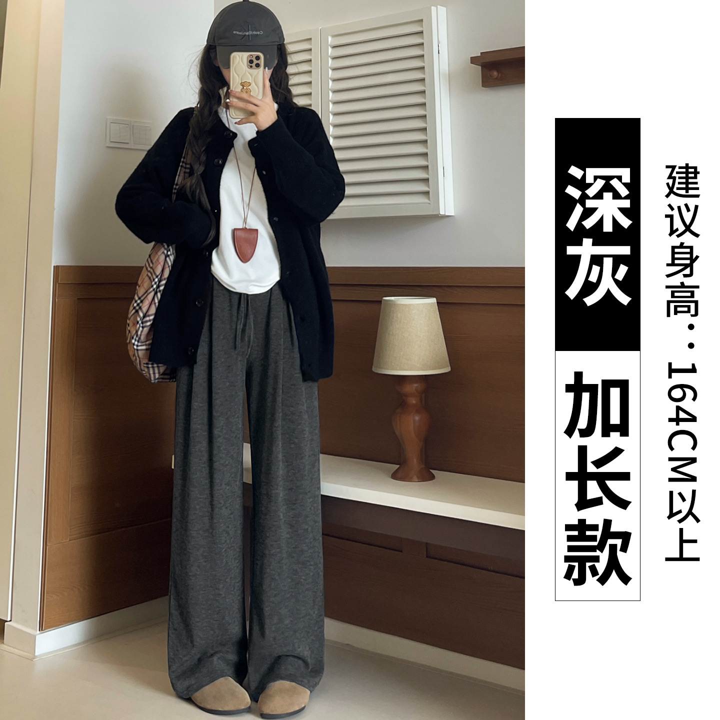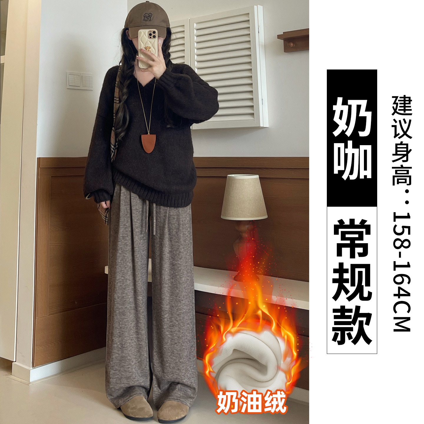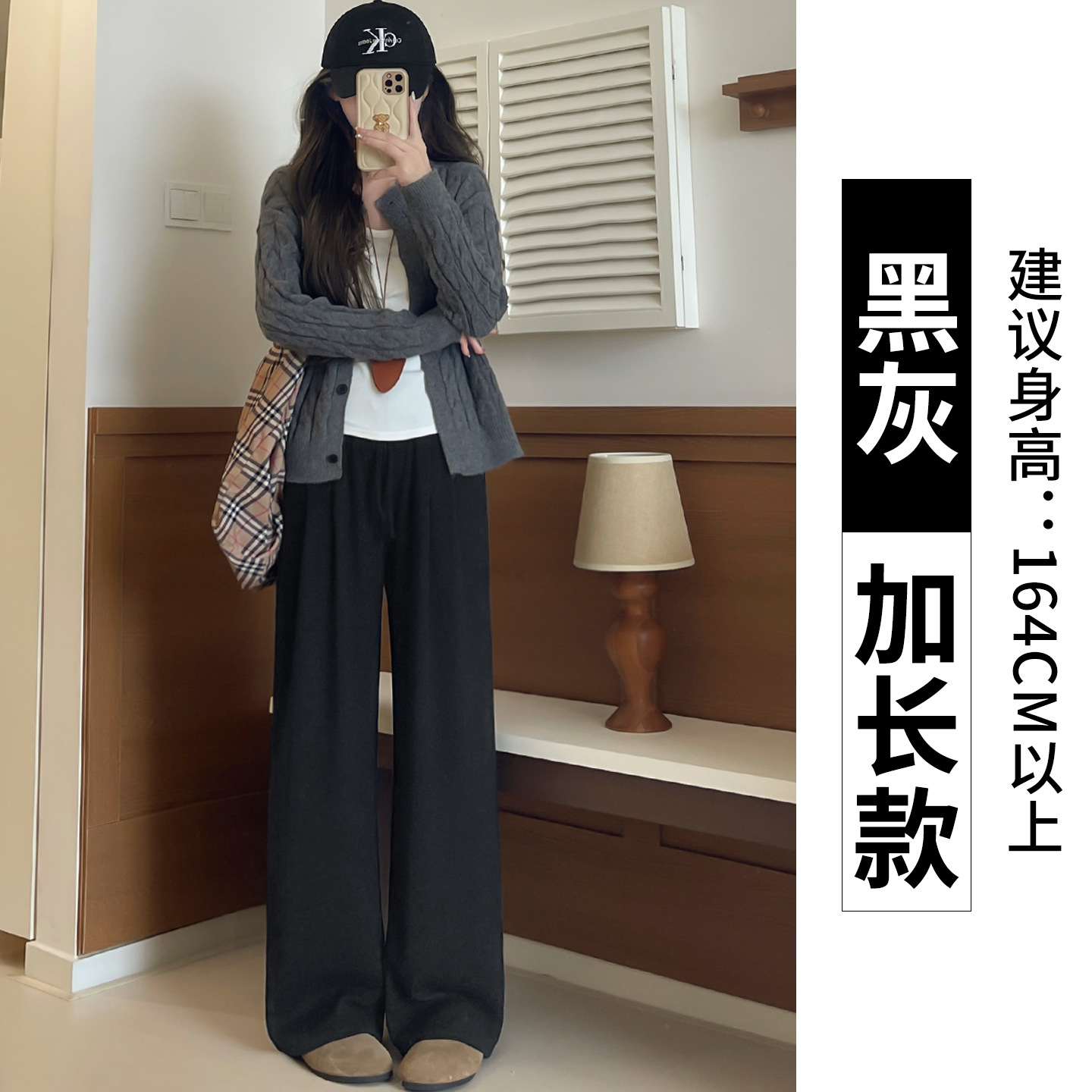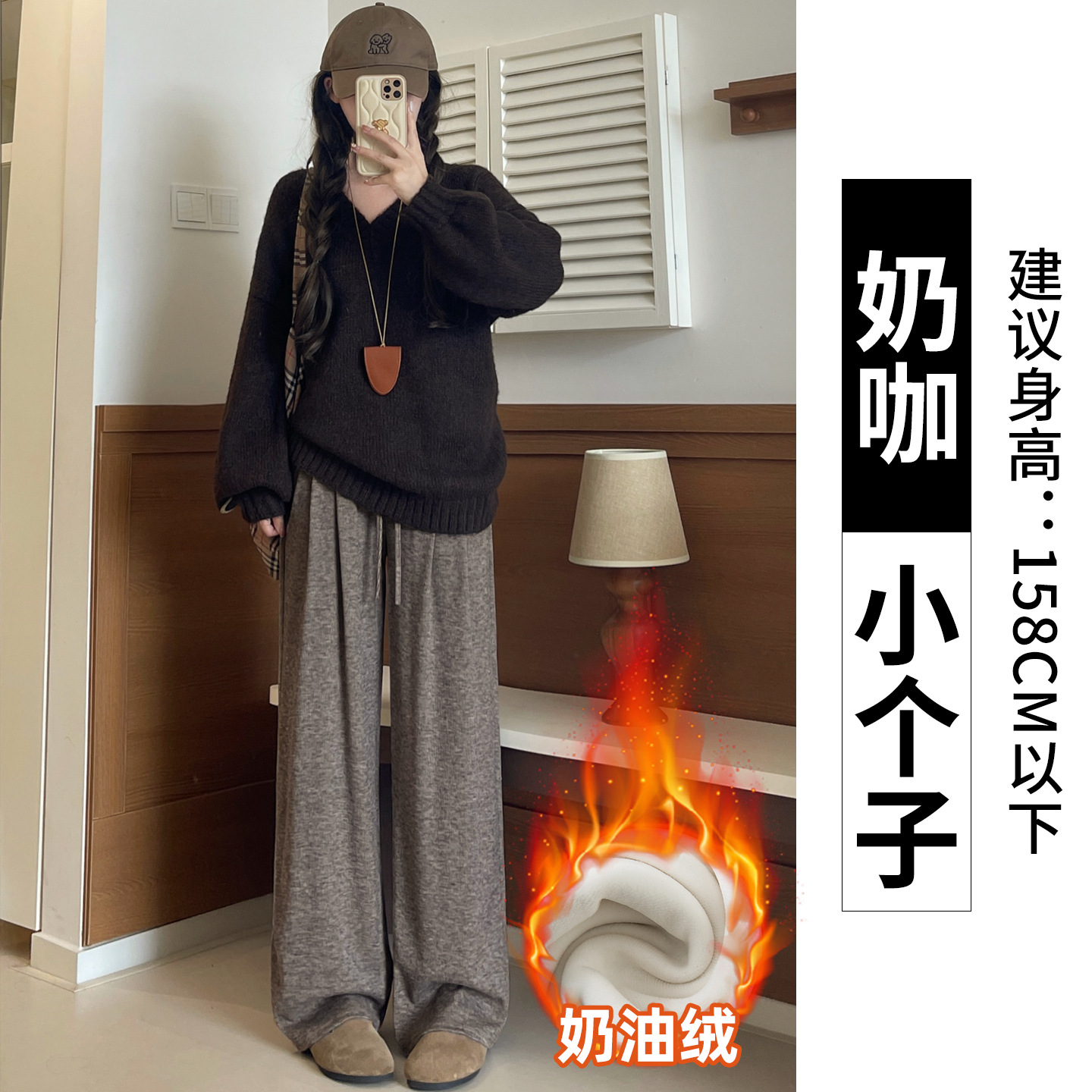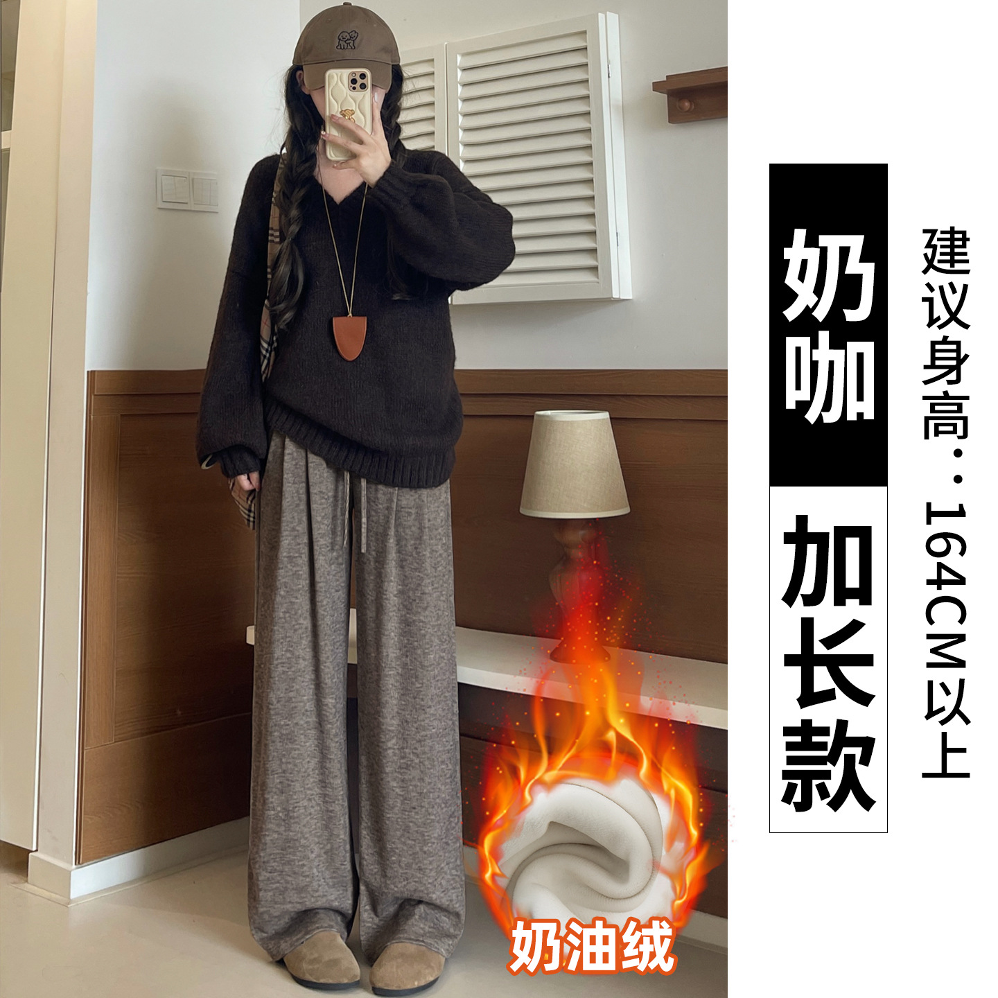 羊羔绒糯米裤女加厚2025冬新款垂感软糯直筒灰色秋冬加绒阔腿裤子