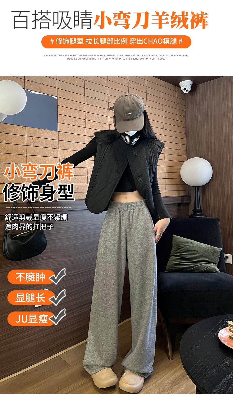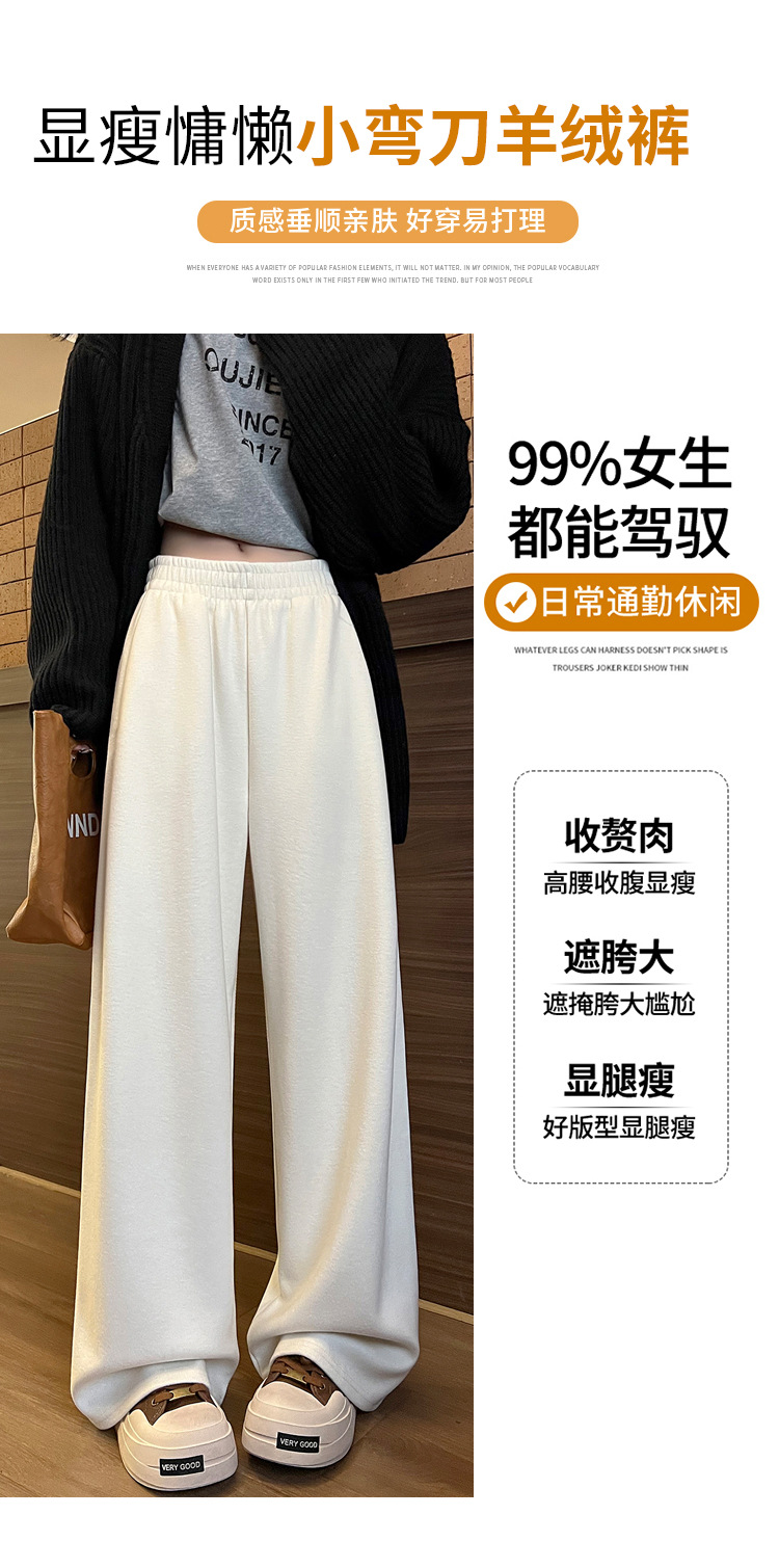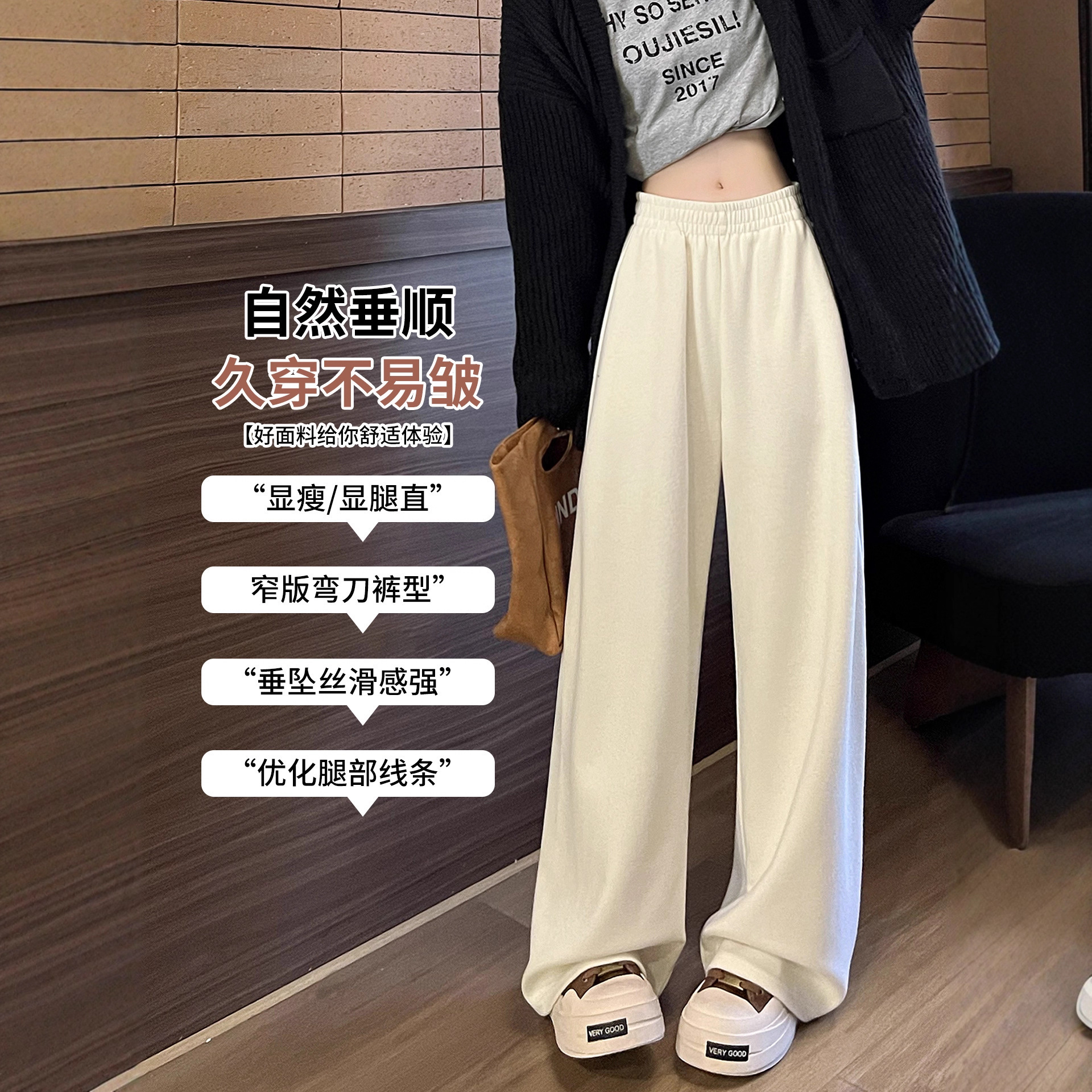 LULU神裤!白色羊绒阔腿裤女2025垂坠软糯运动裤冬季加绒糯米裤子