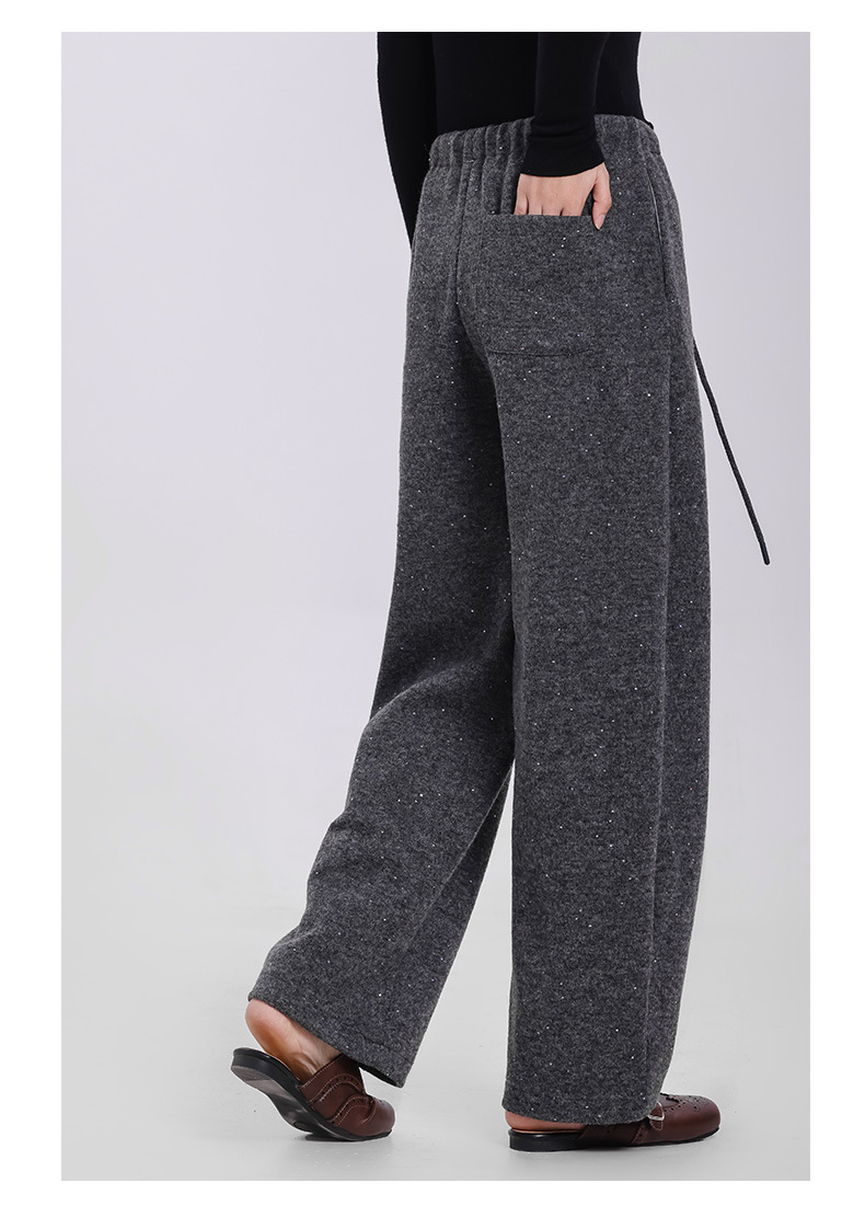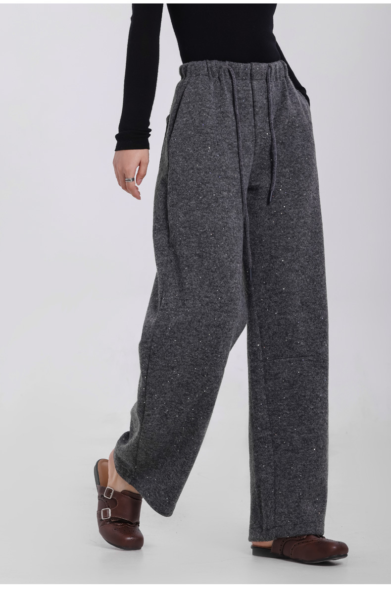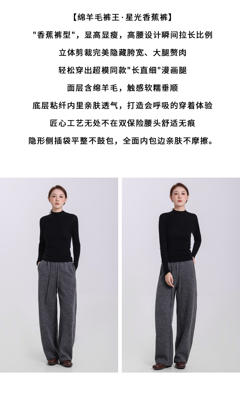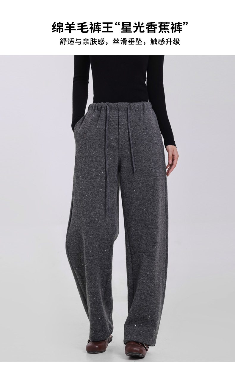冬季绵羊毛星光高级感阔腿裤2025新款女装加厚高腰抽绳显瘦弯刀裤