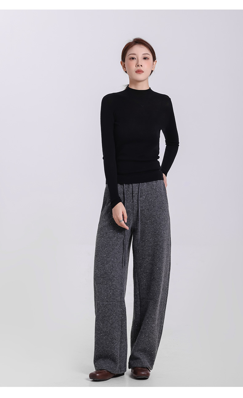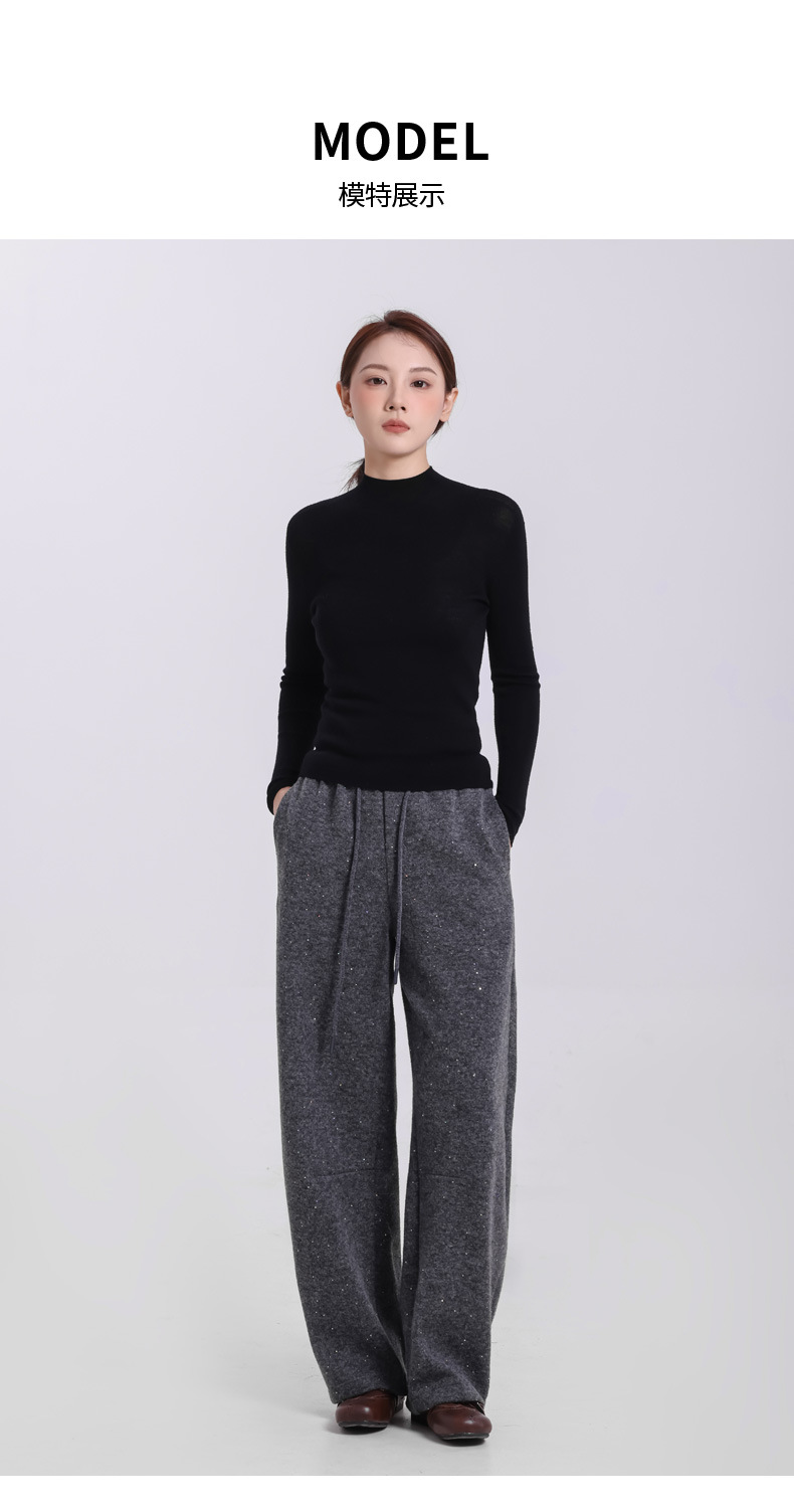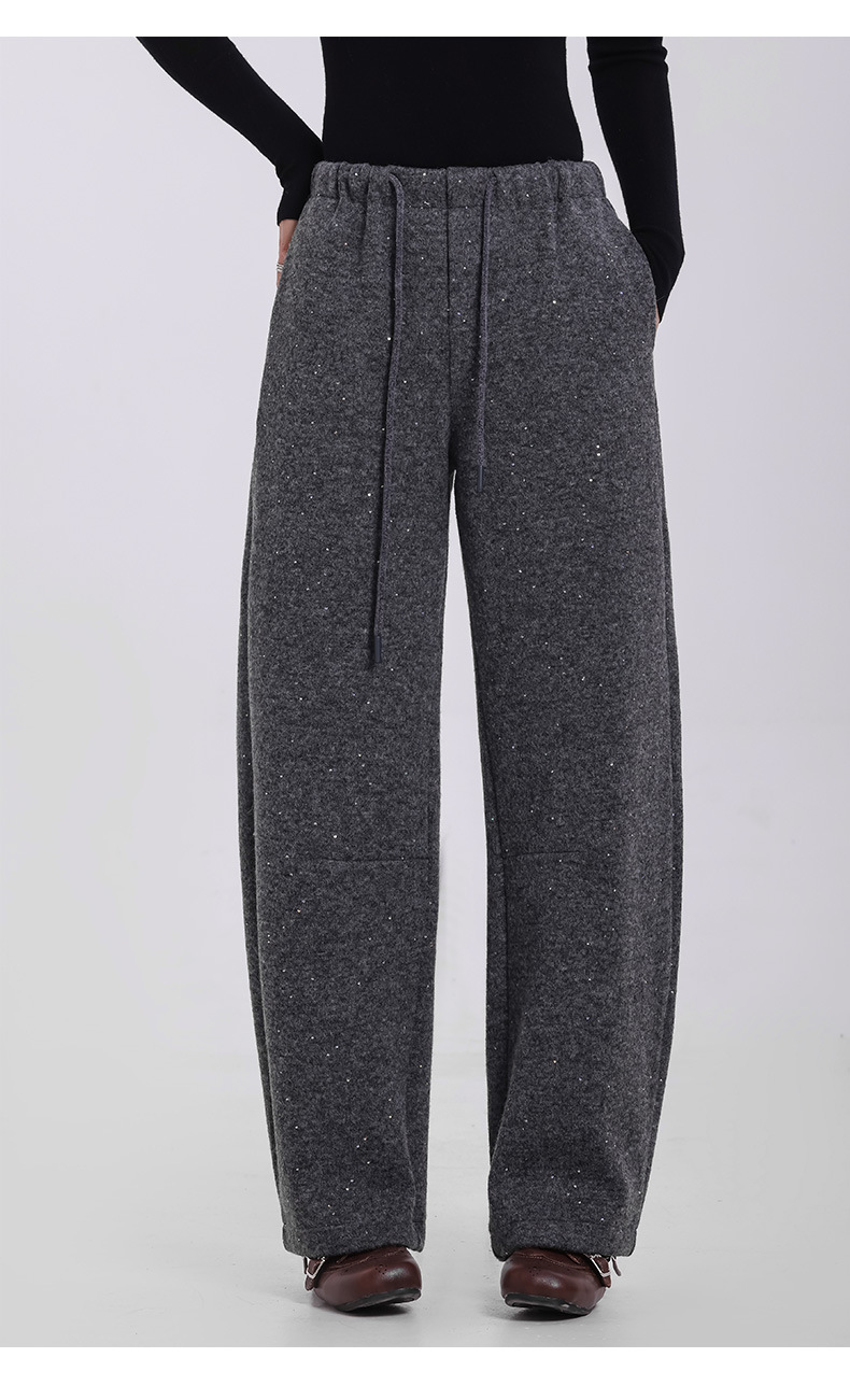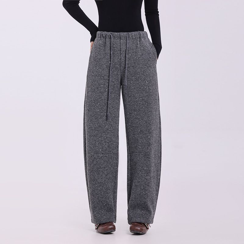 冬季绵羊毛星光高级感阔腿裤2025新款女装加厚高腰抽绳显瘦弯刀裤