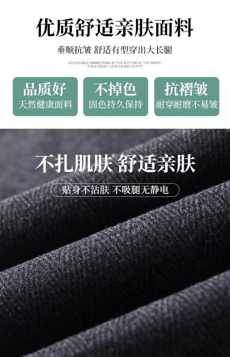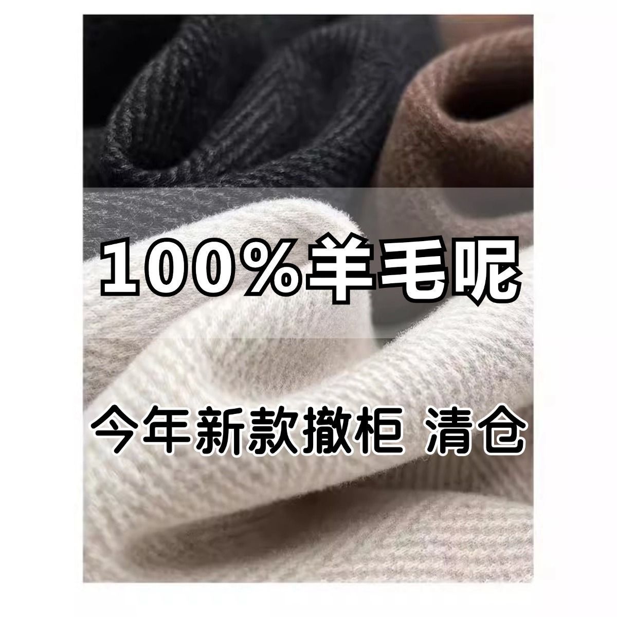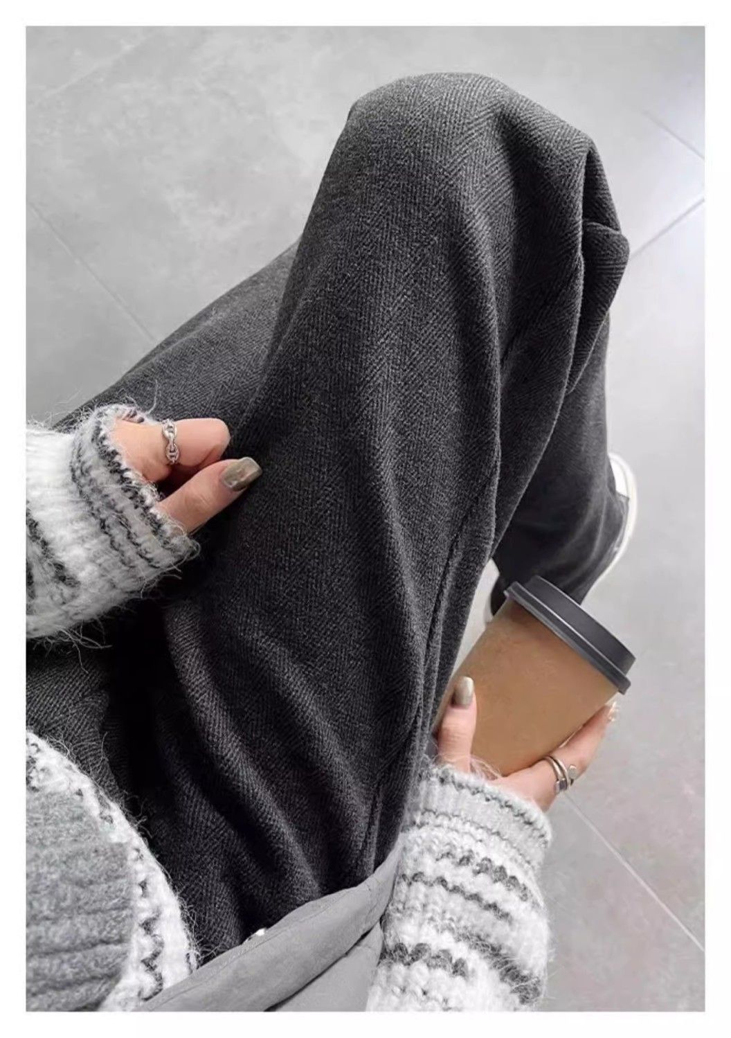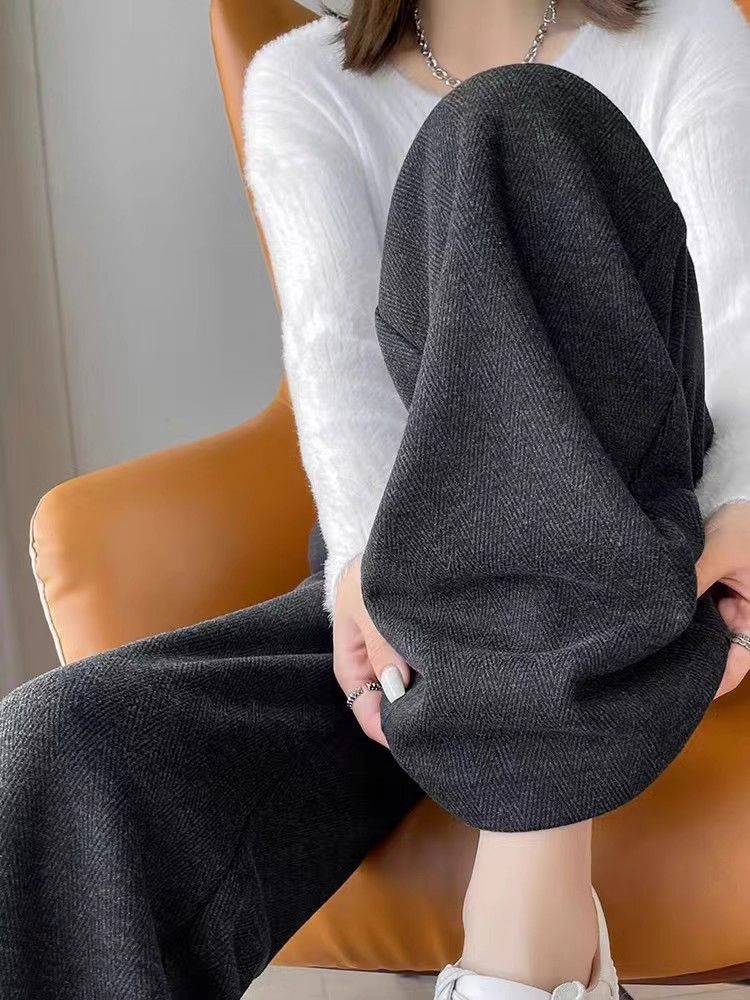 鄂尔多斯市100正品高档羊毛呢加绒阔腿裤女人字纹宽松垂感休闲裤
