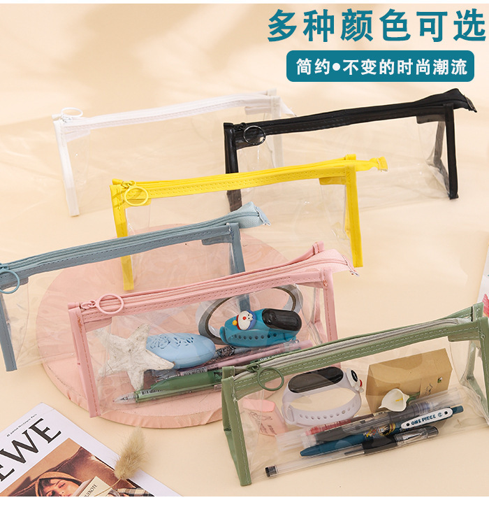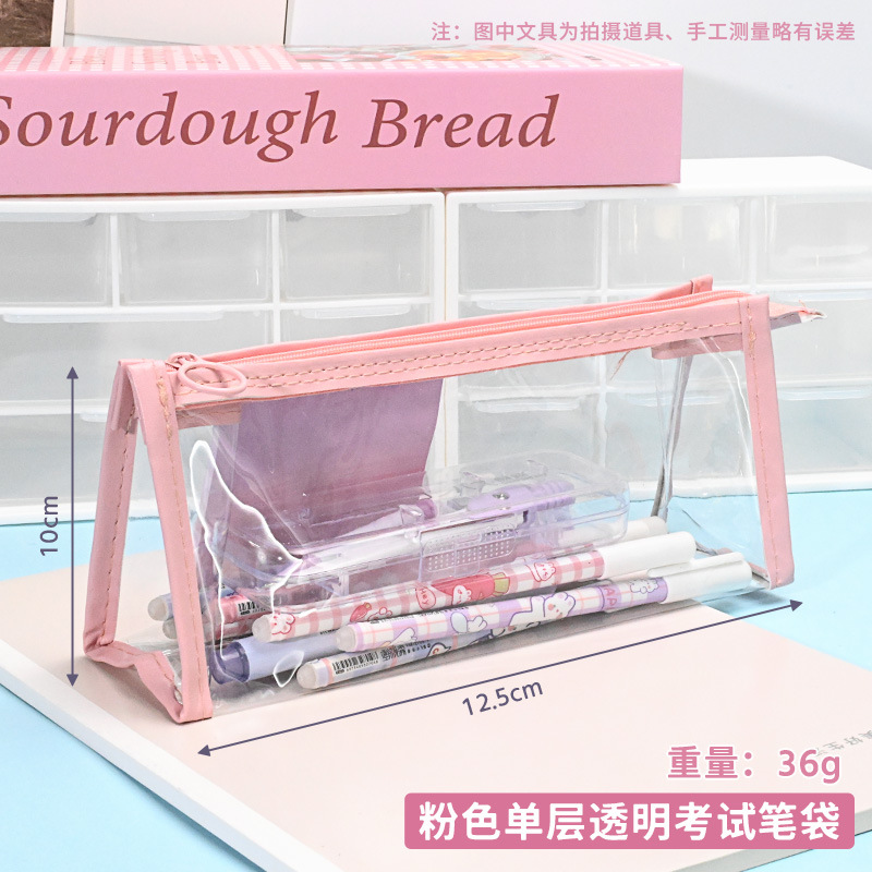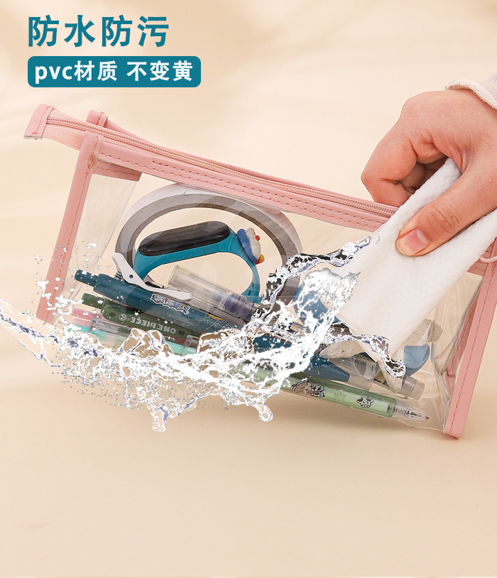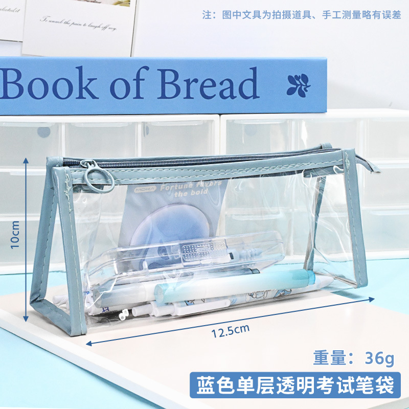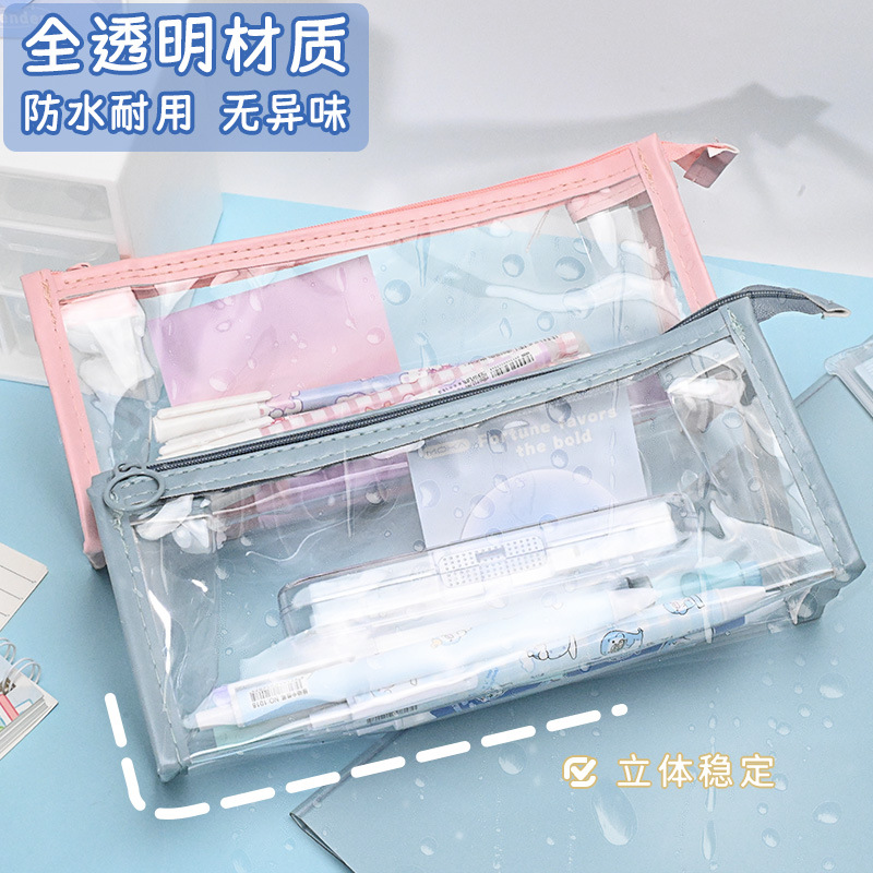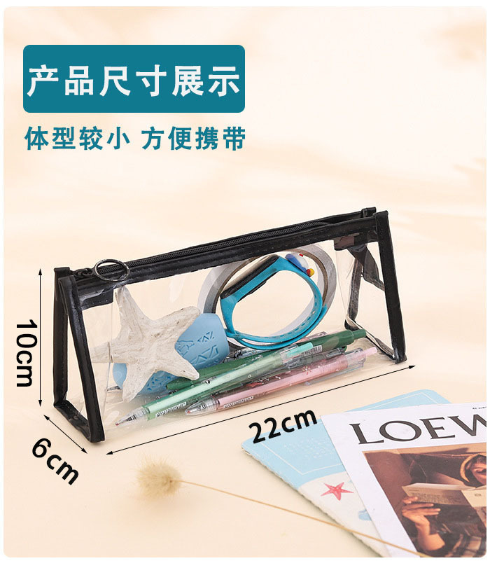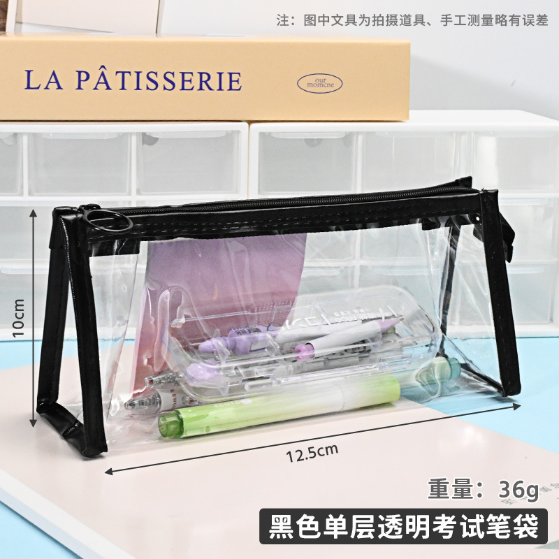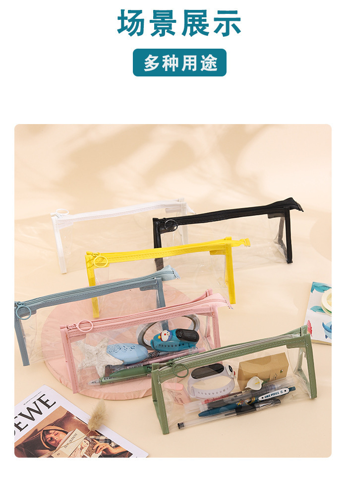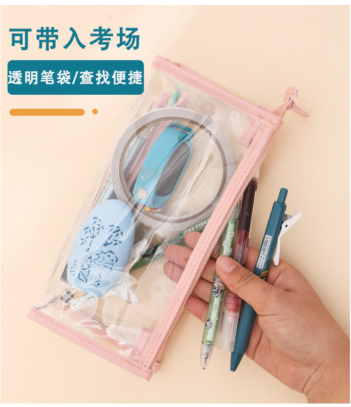 跨境透明PVC笔袋收纳袋学生考试专用便携铅笔袋大容量文具袋批发