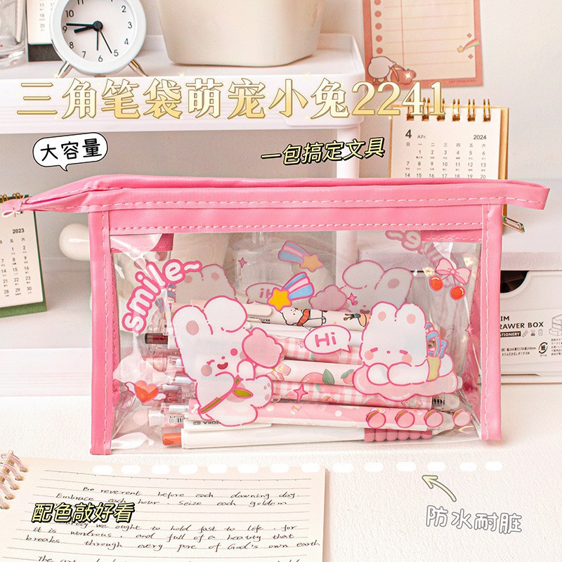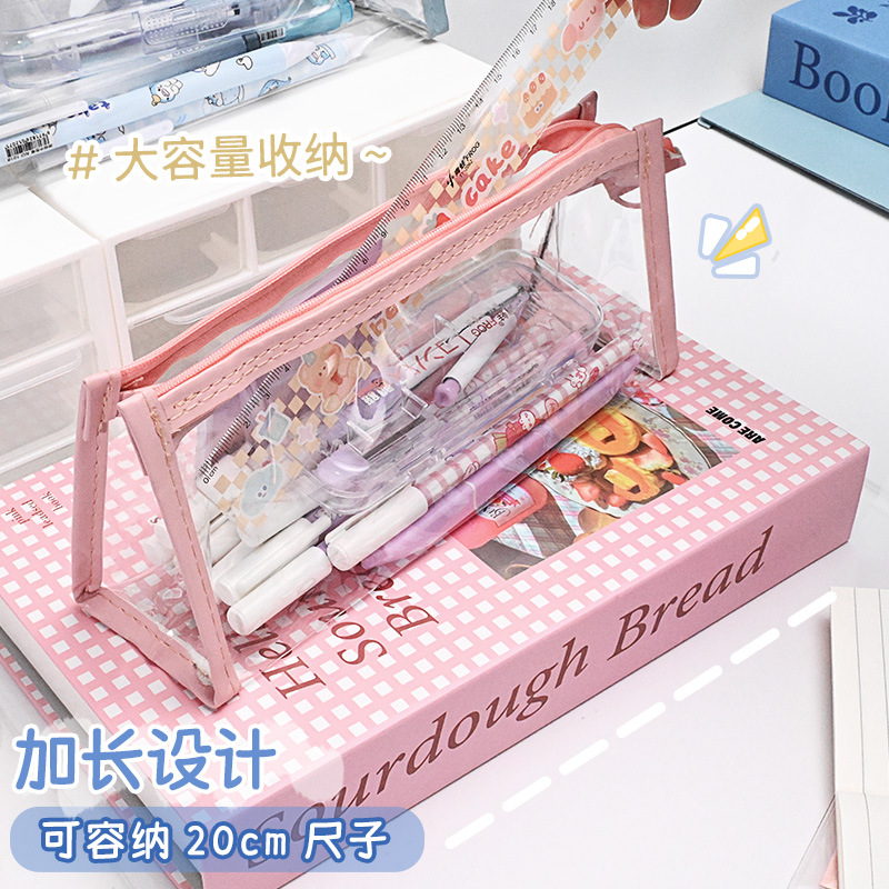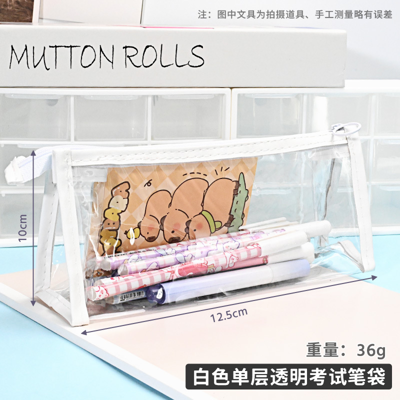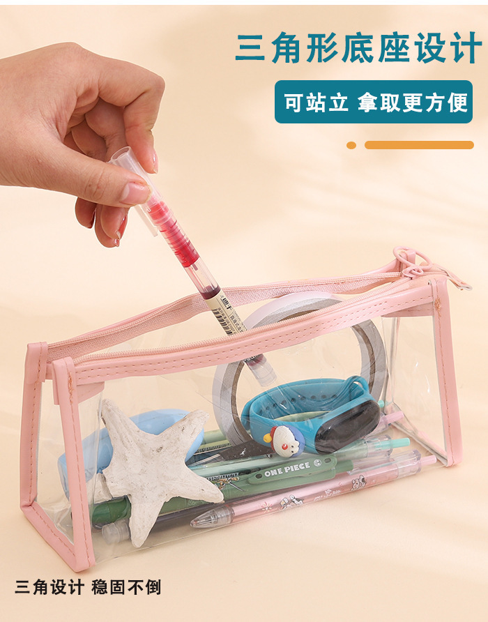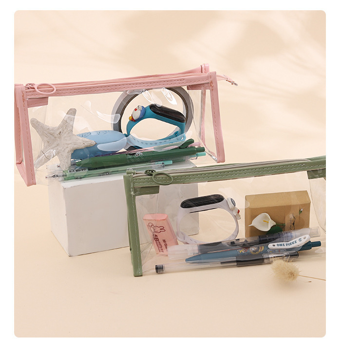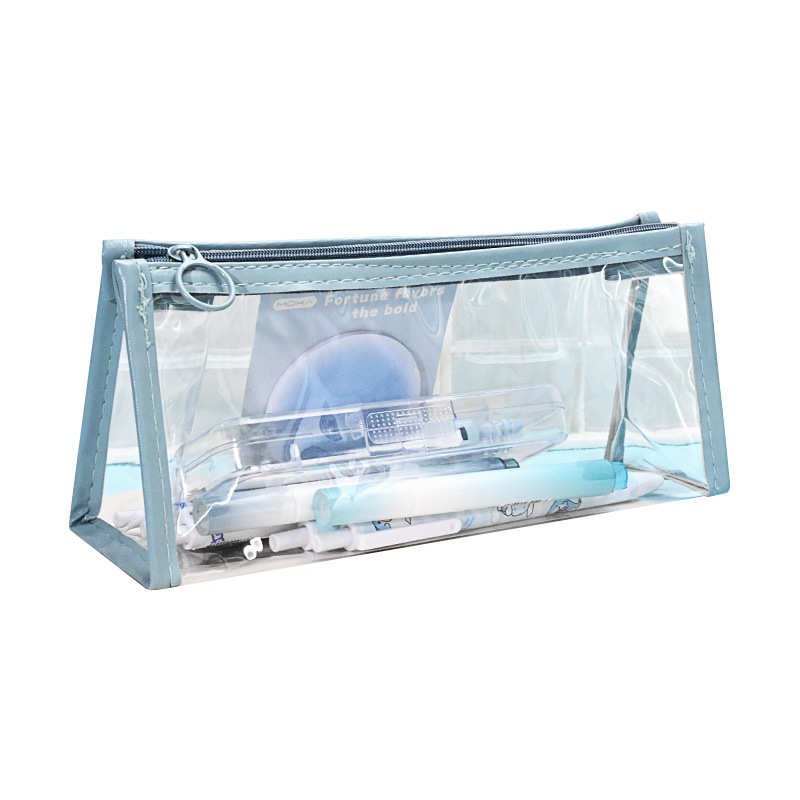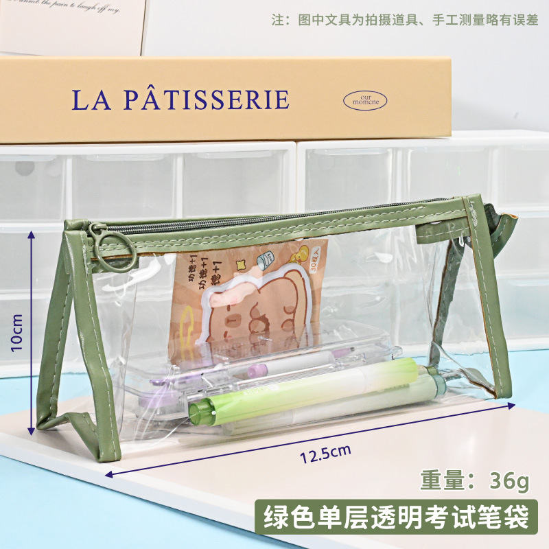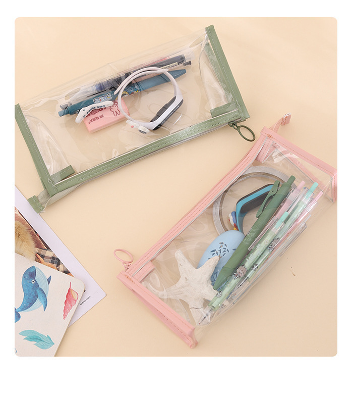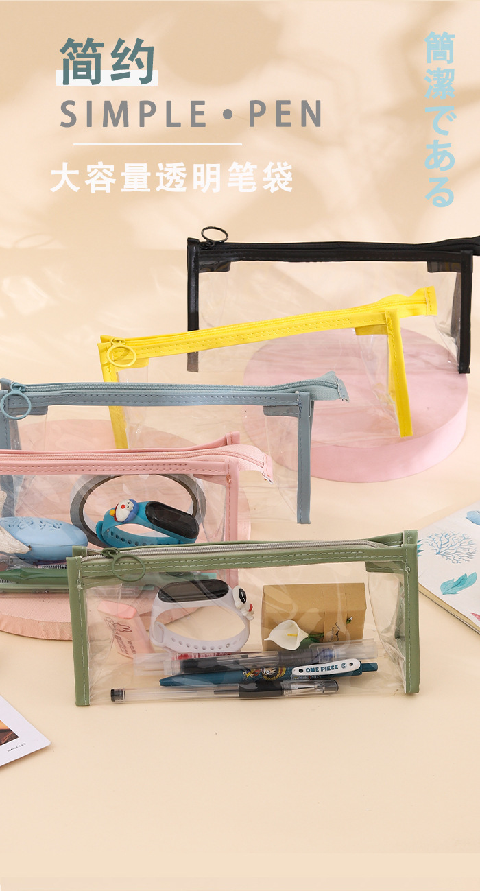 跨境透明PVC笔袋收纳袋学生考试专用便携铅笔袋大容量文具袋批发
