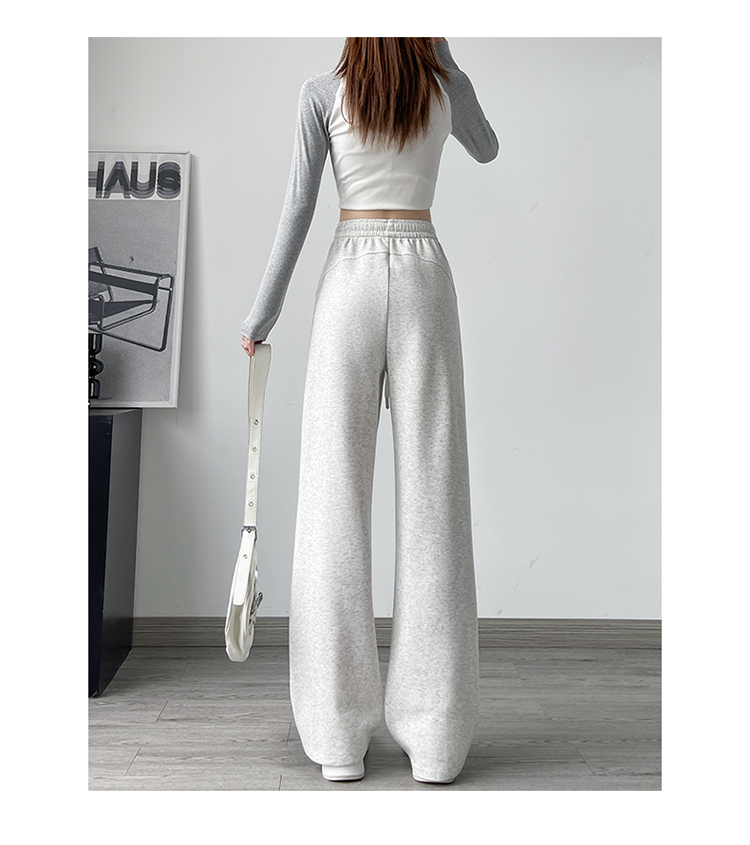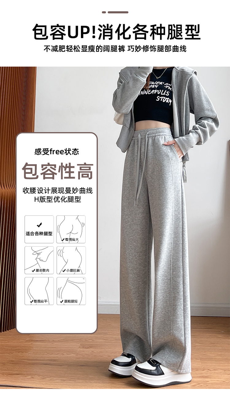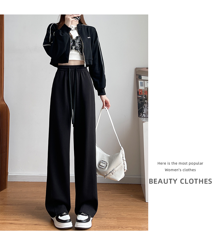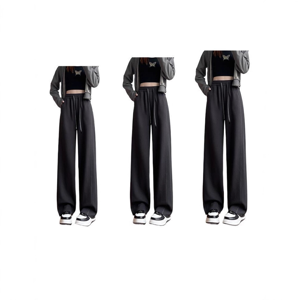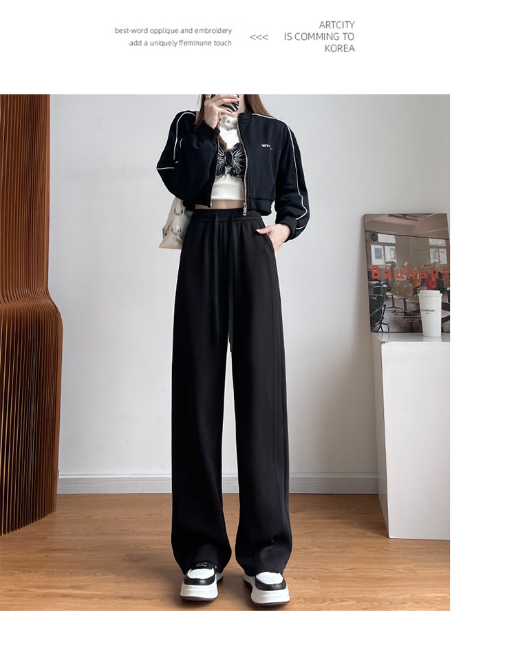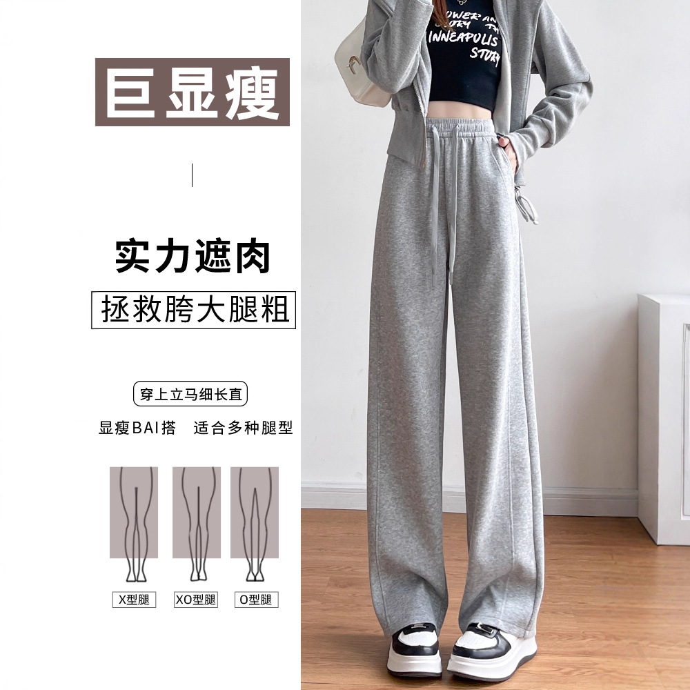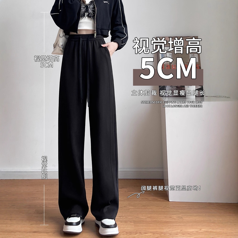 窄版阔腿裤女2025新款黑色直筒运动裤小个子春秋季加绒休闲卫裤子