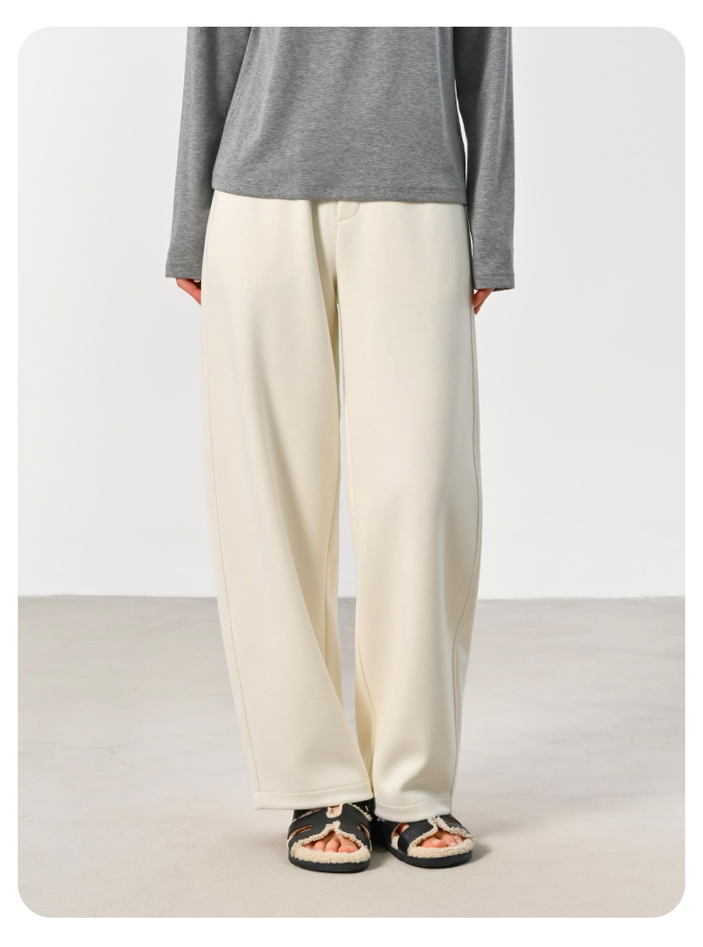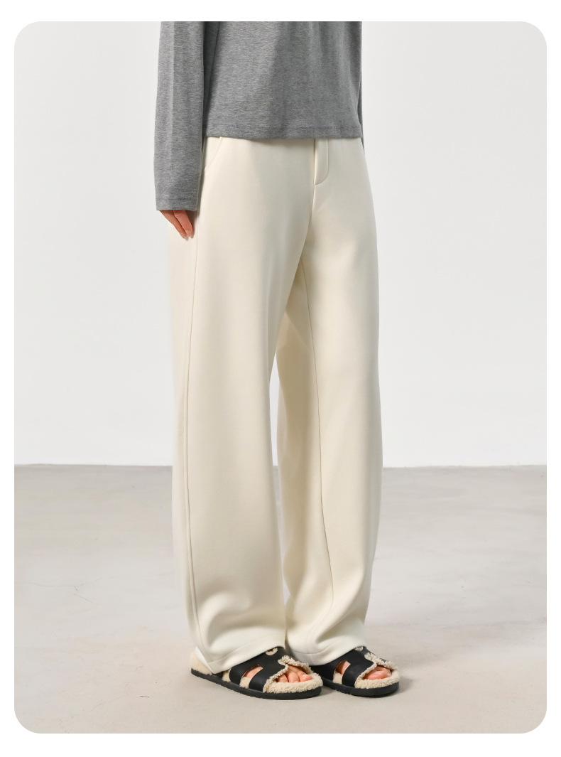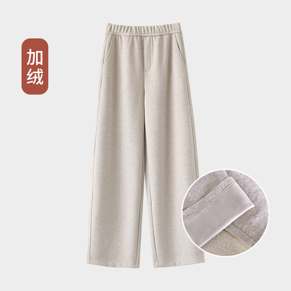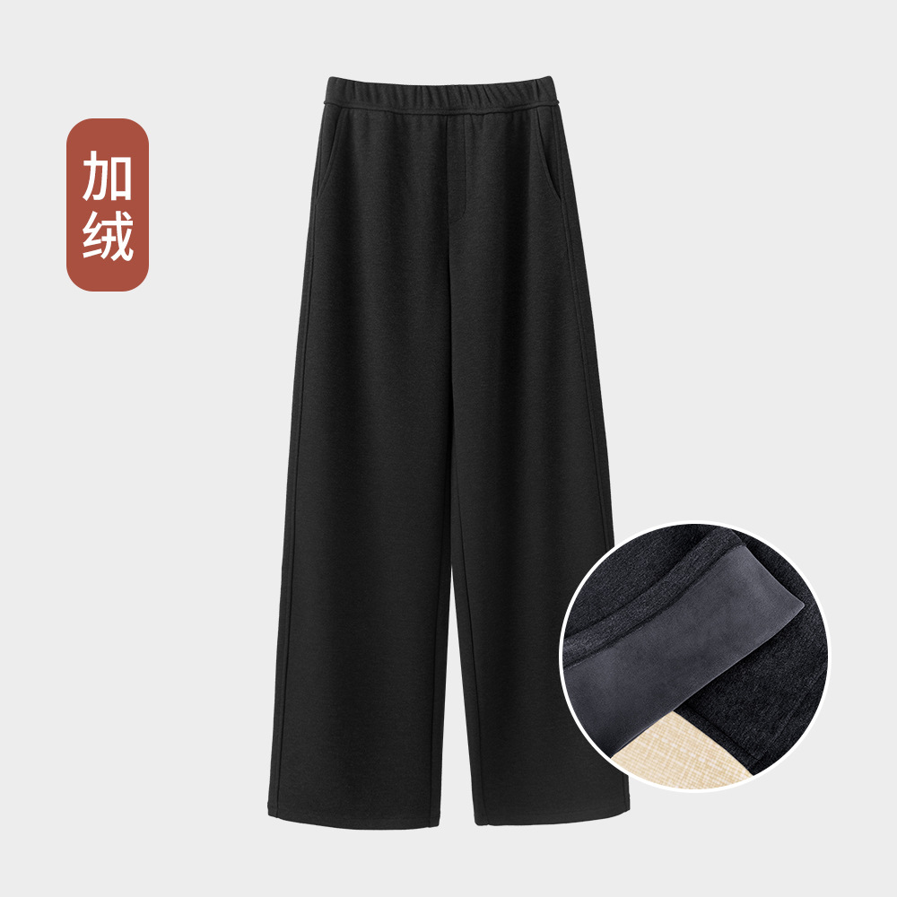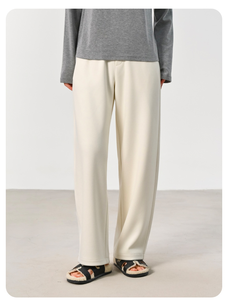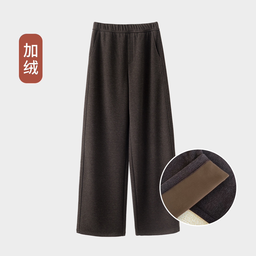 ABOUTSEA秋冬裤子女直筒羊毛加热弯刀裤宽松显瘦高腰休闲裤加绒款