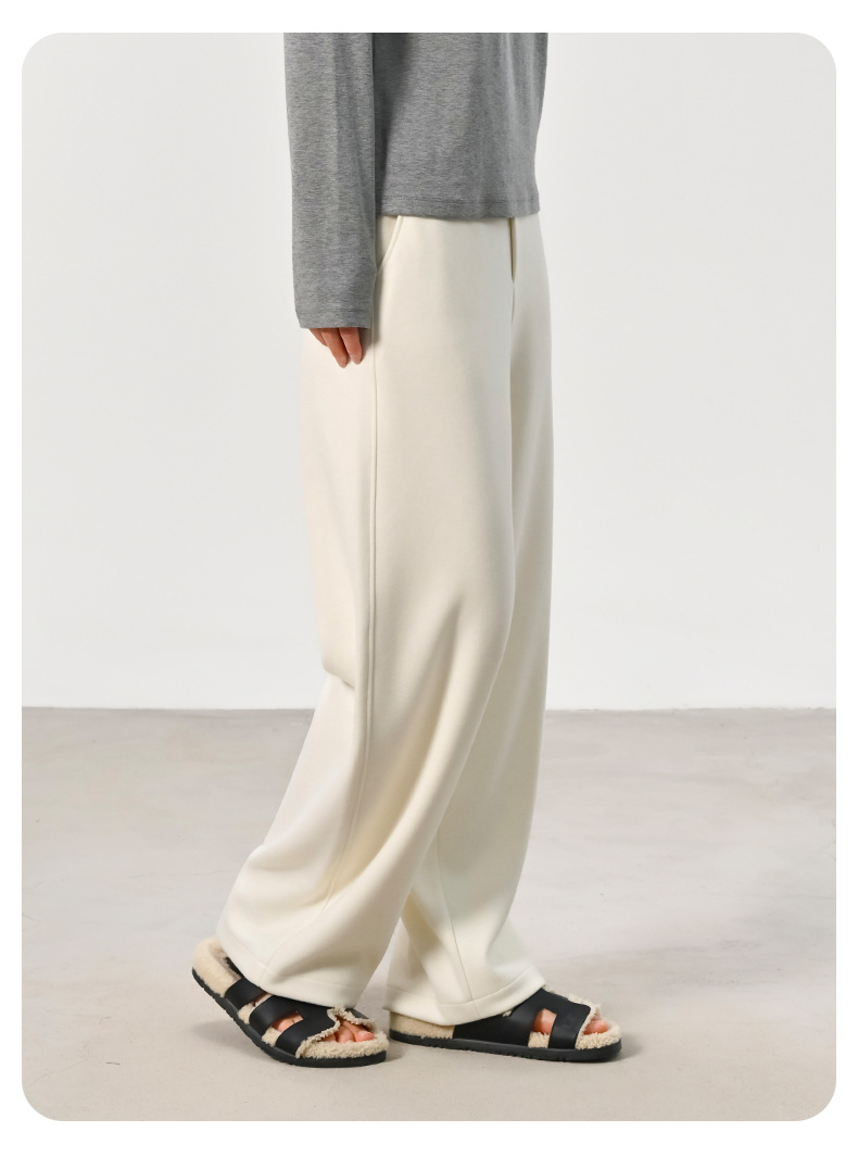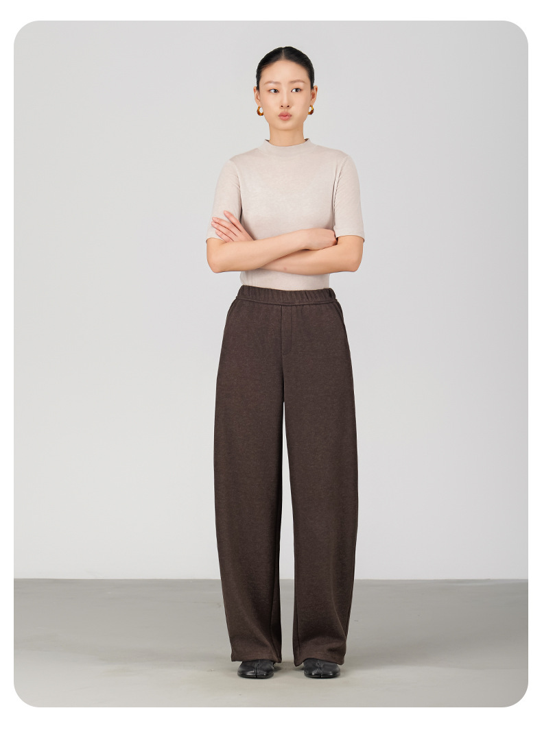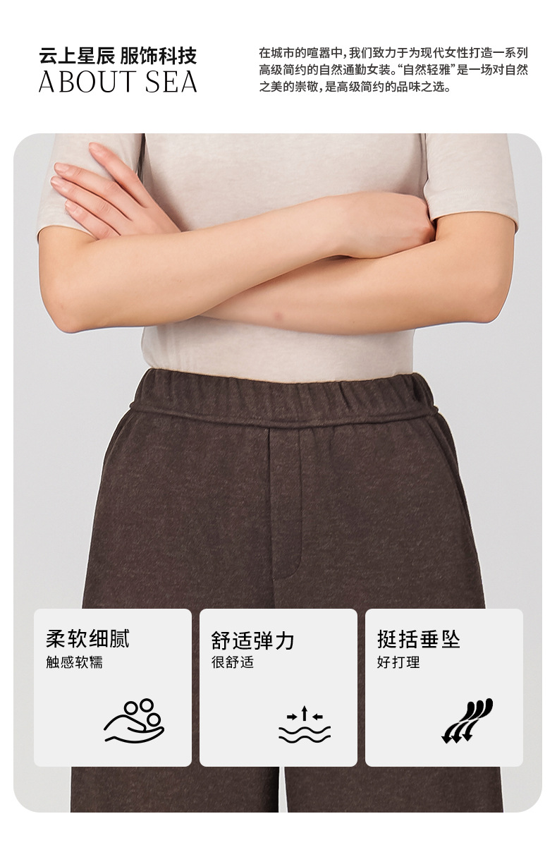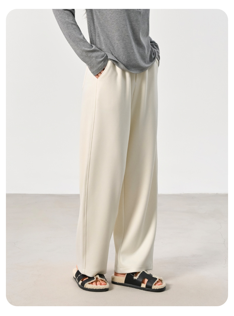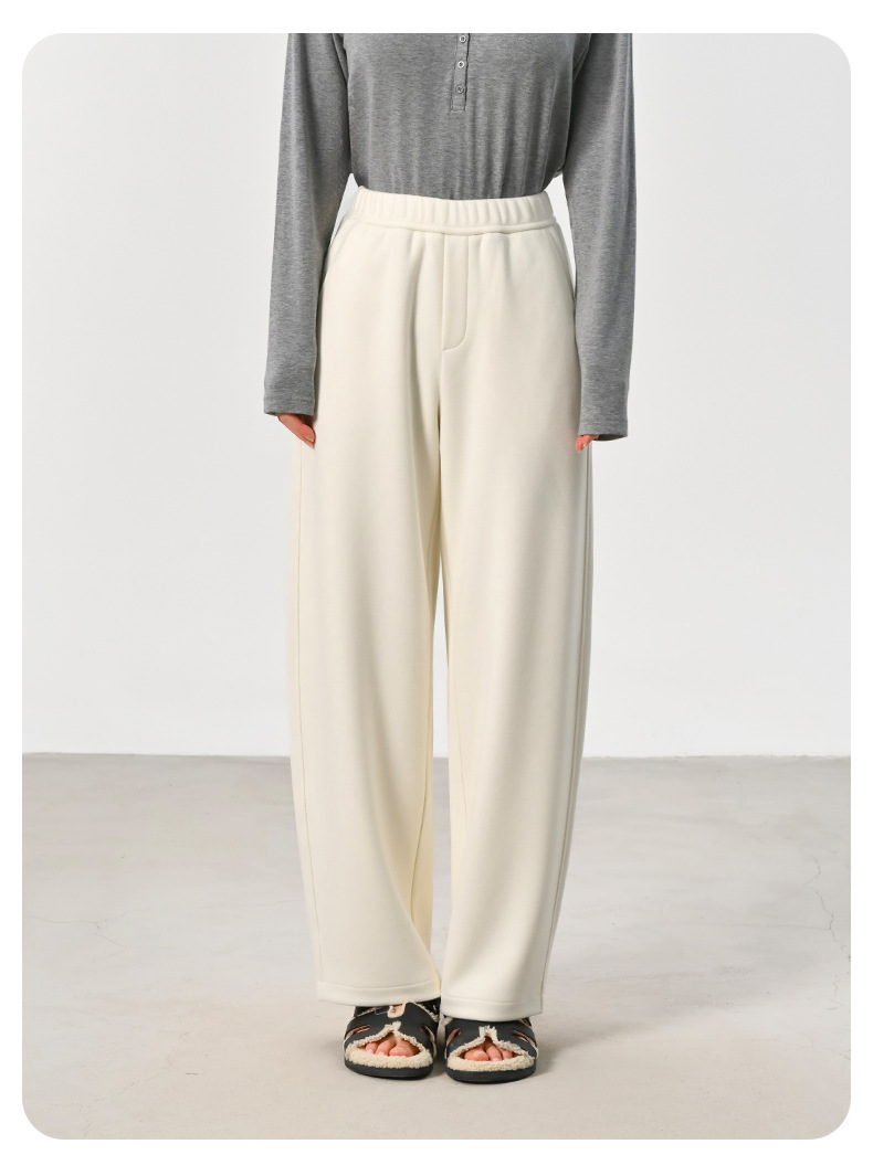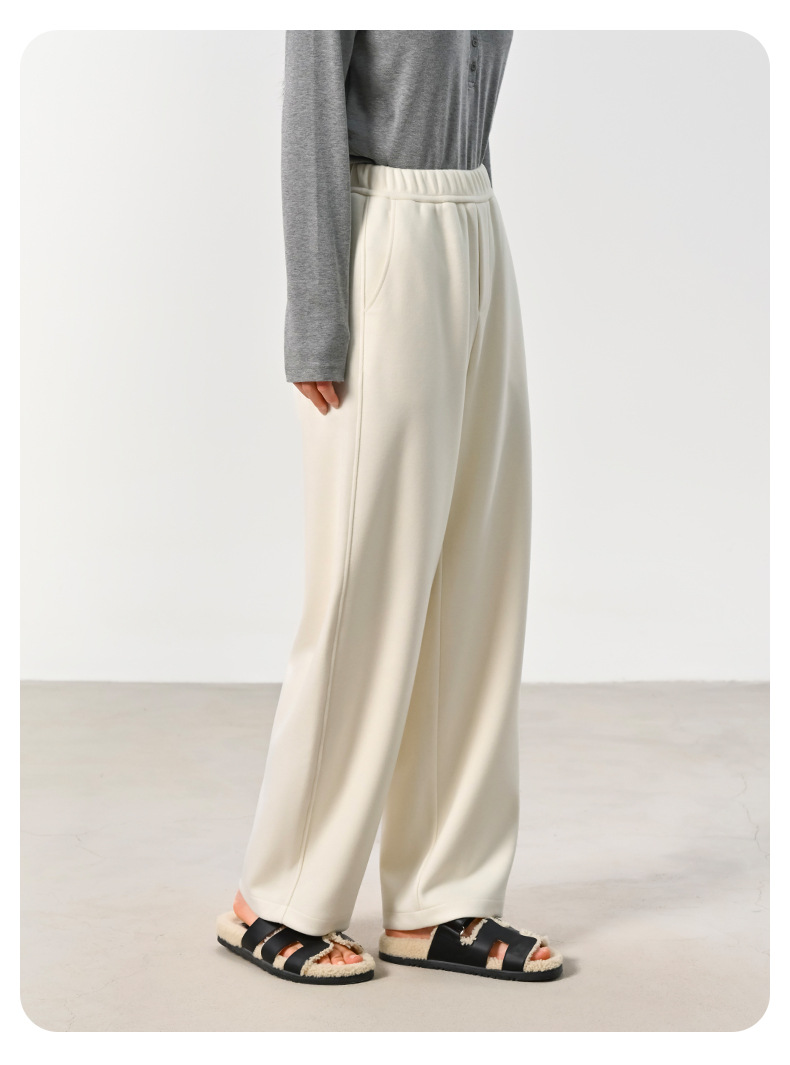 ABOUTSEA秋冬裤子女直筒羊毛加热弯刀裤宽松显瘦高腰休闲裤加绒款