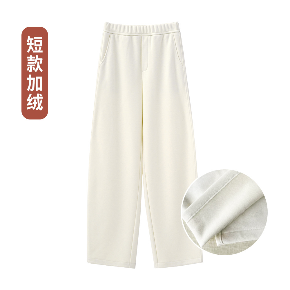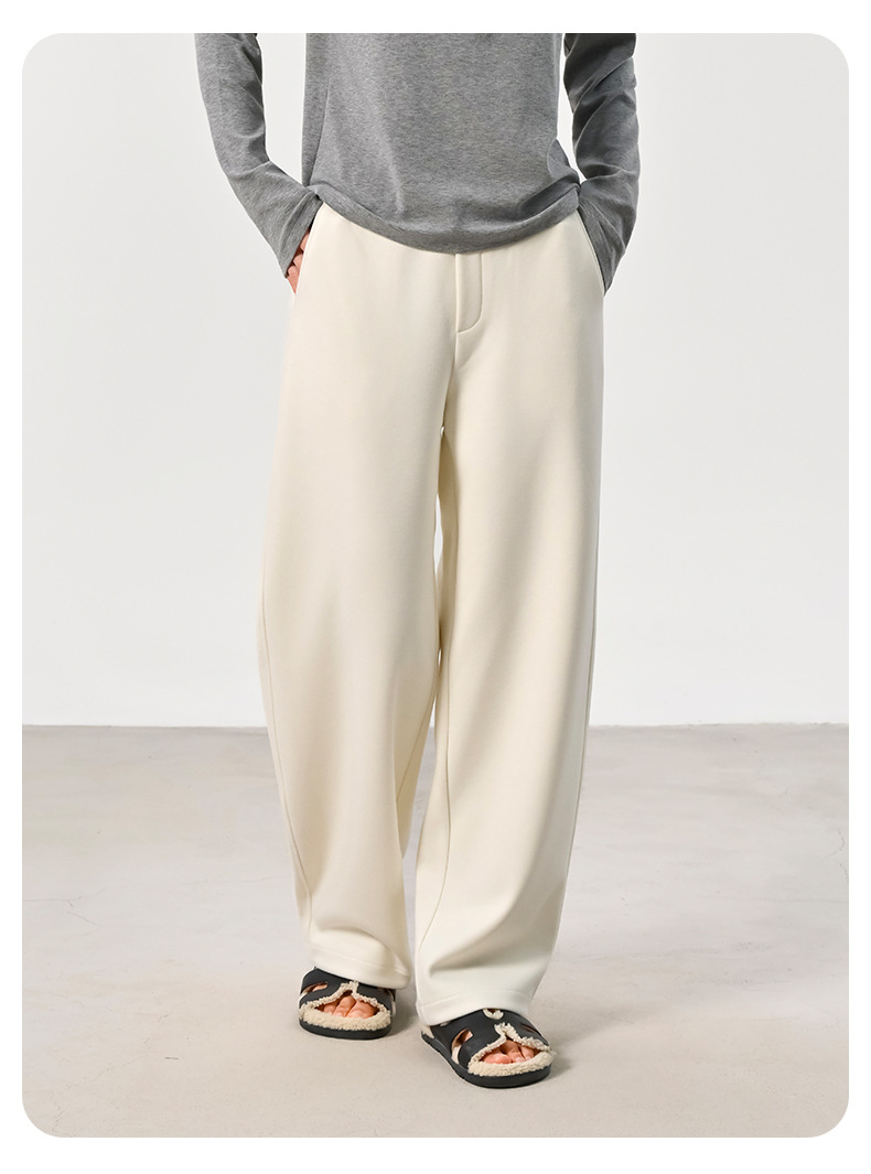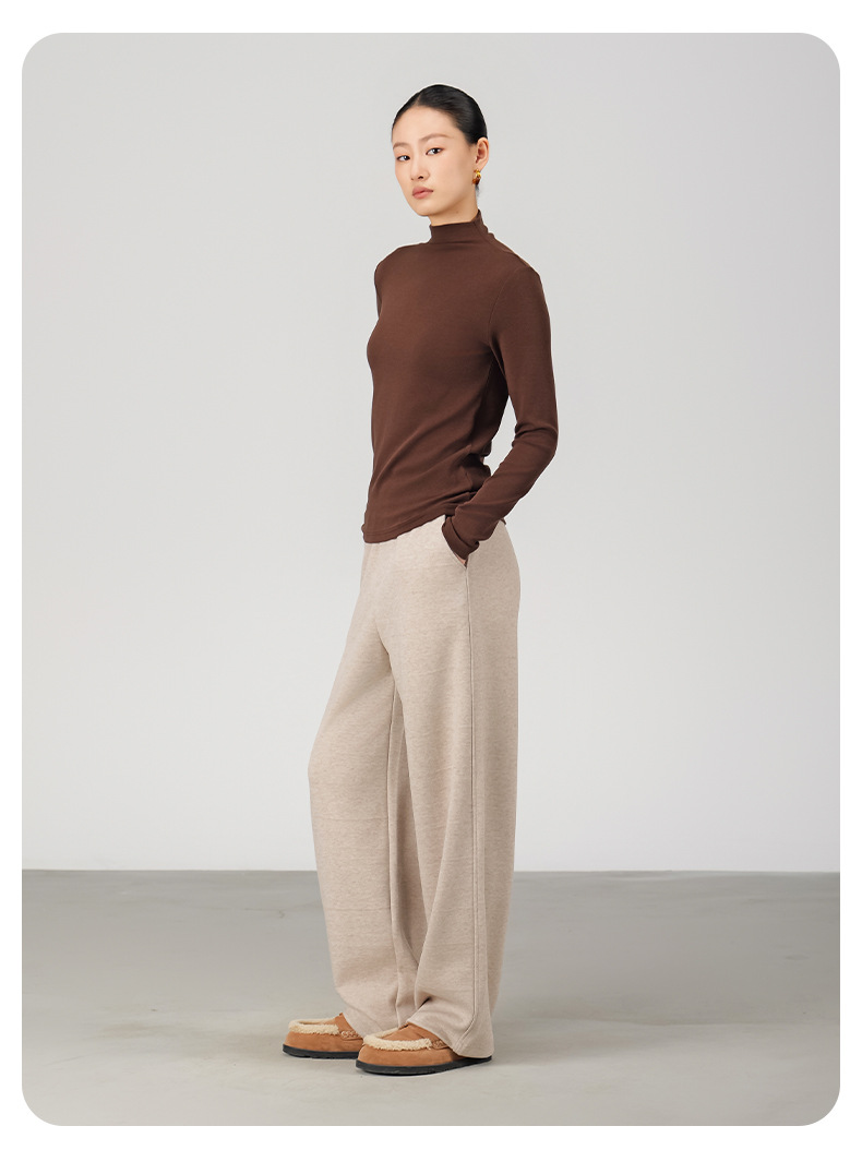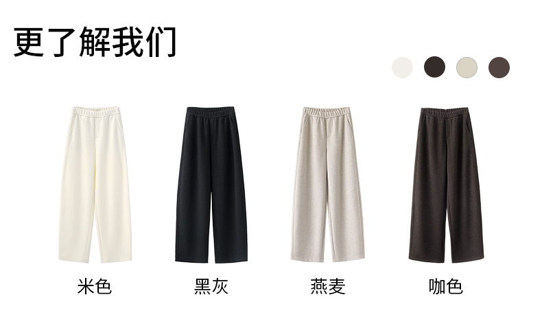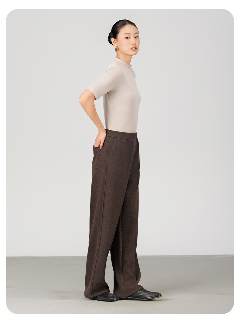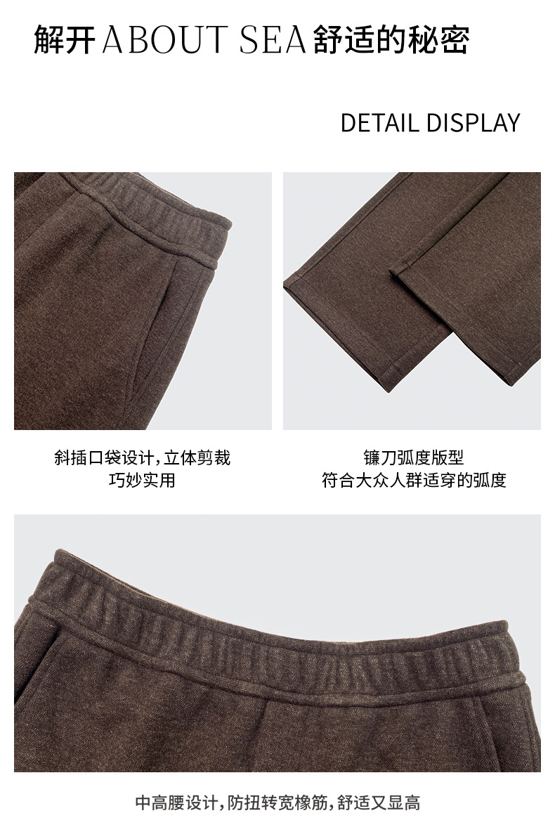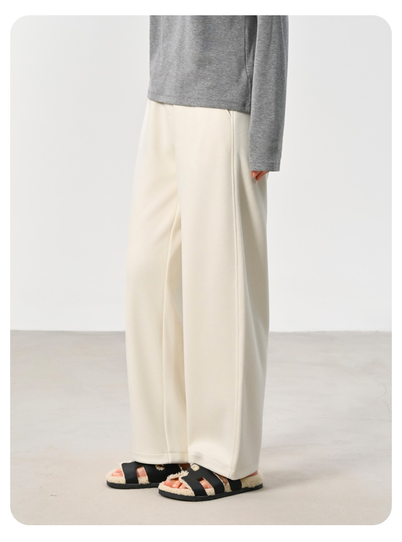 ABOUTSEA秋冬裤子女直筒羊毛加热弯刀裤宽松显瘦高腰休闲裤加绒款