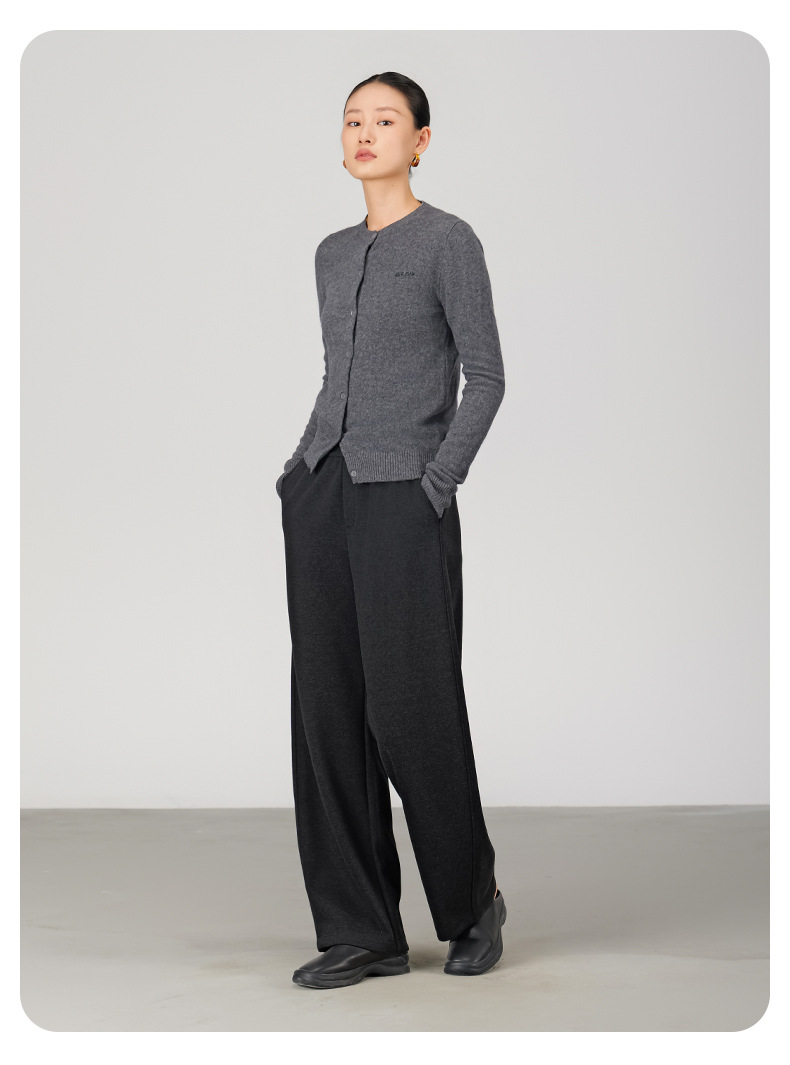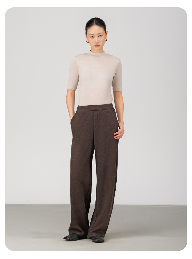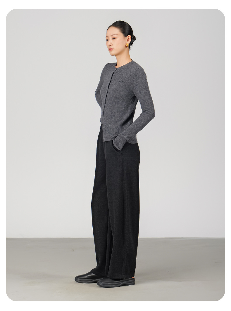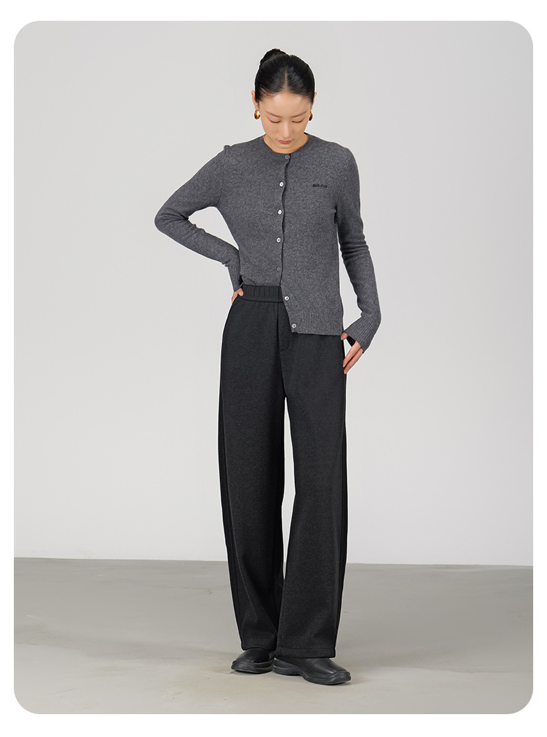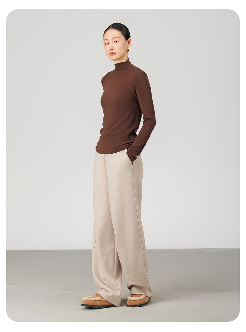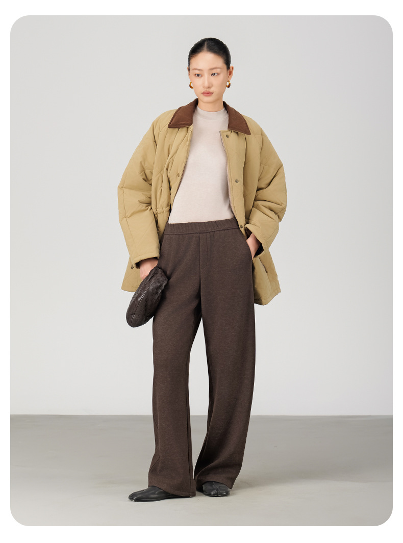 ABOUTSEA秋冬裤子女直筒羊毛加热弯刀裤宽松显瘦高腰休闲裤加绒款