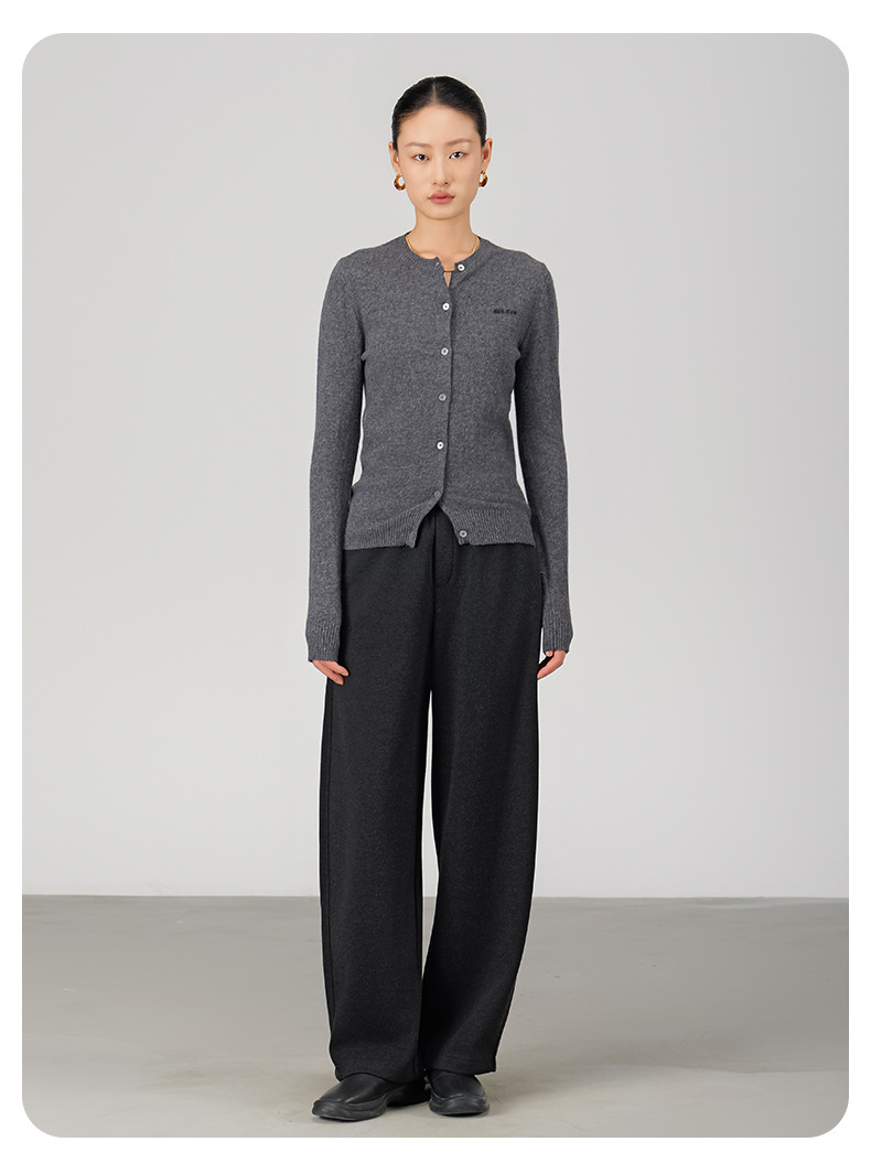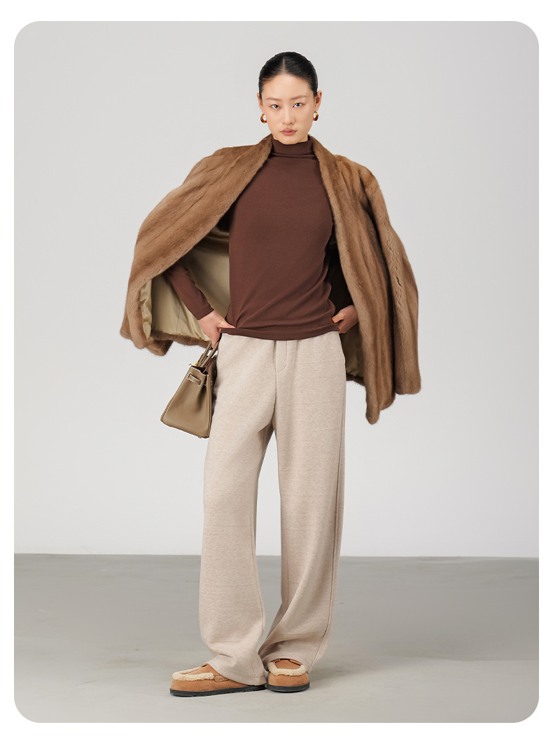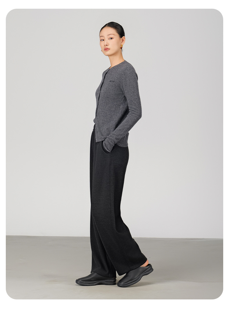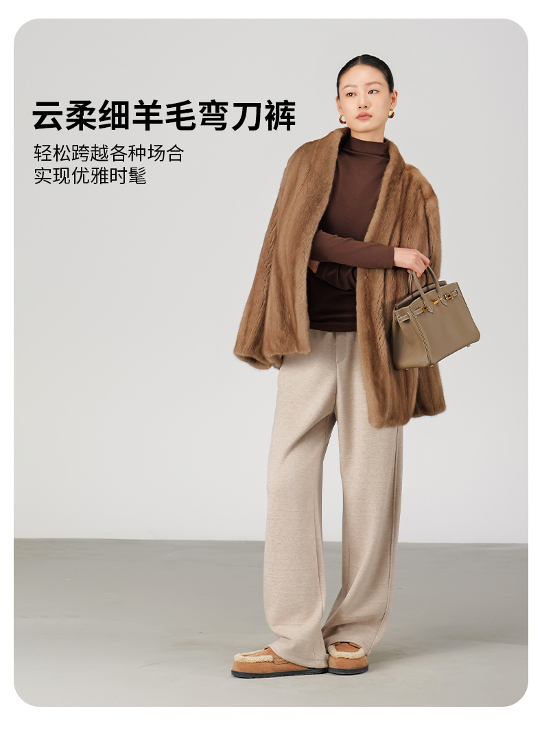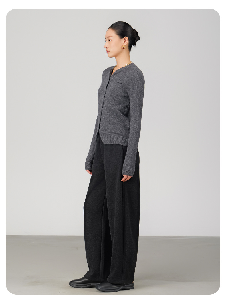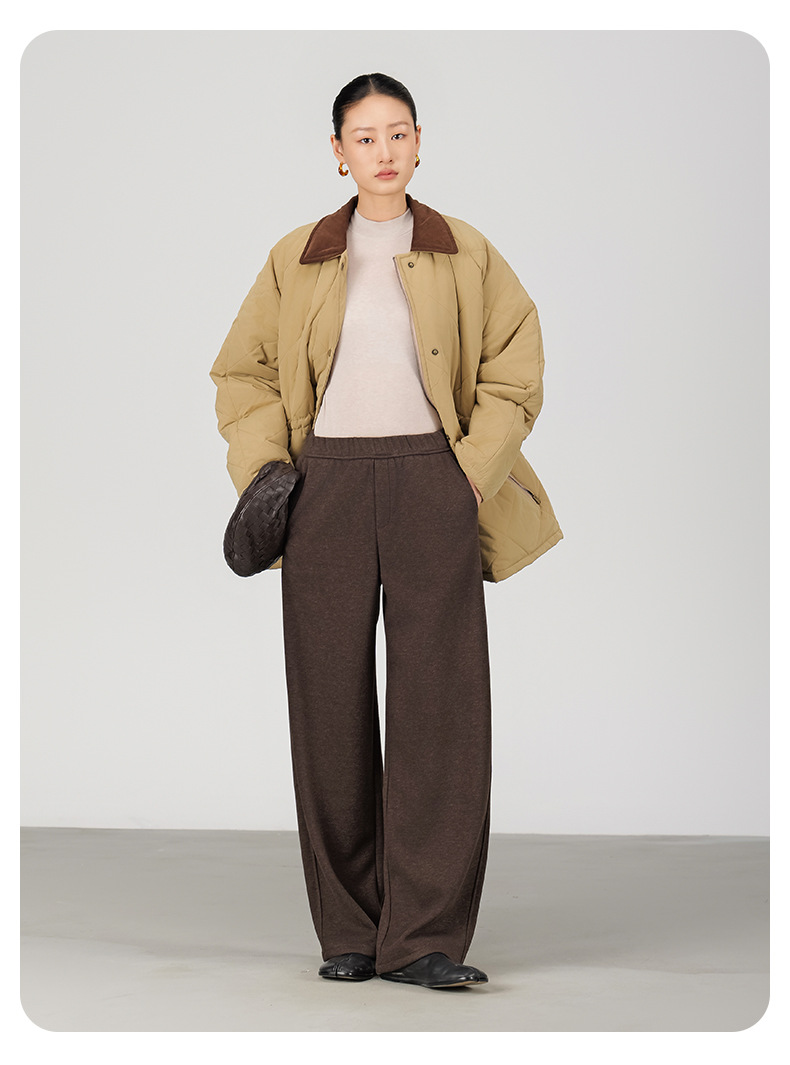 ABOUTSEA秋冬裤子女直筒羊毛加热弯刀裤宽松显瘦高腰休闲裤加绒款