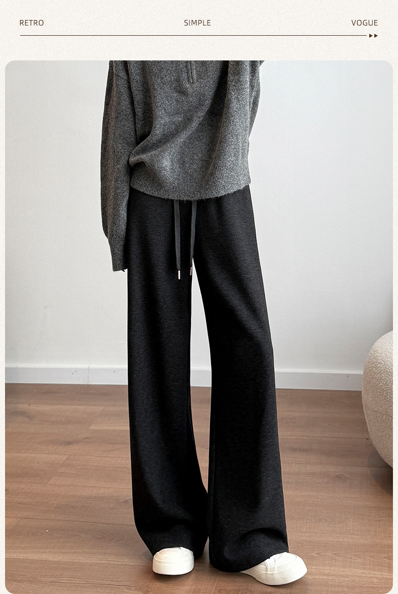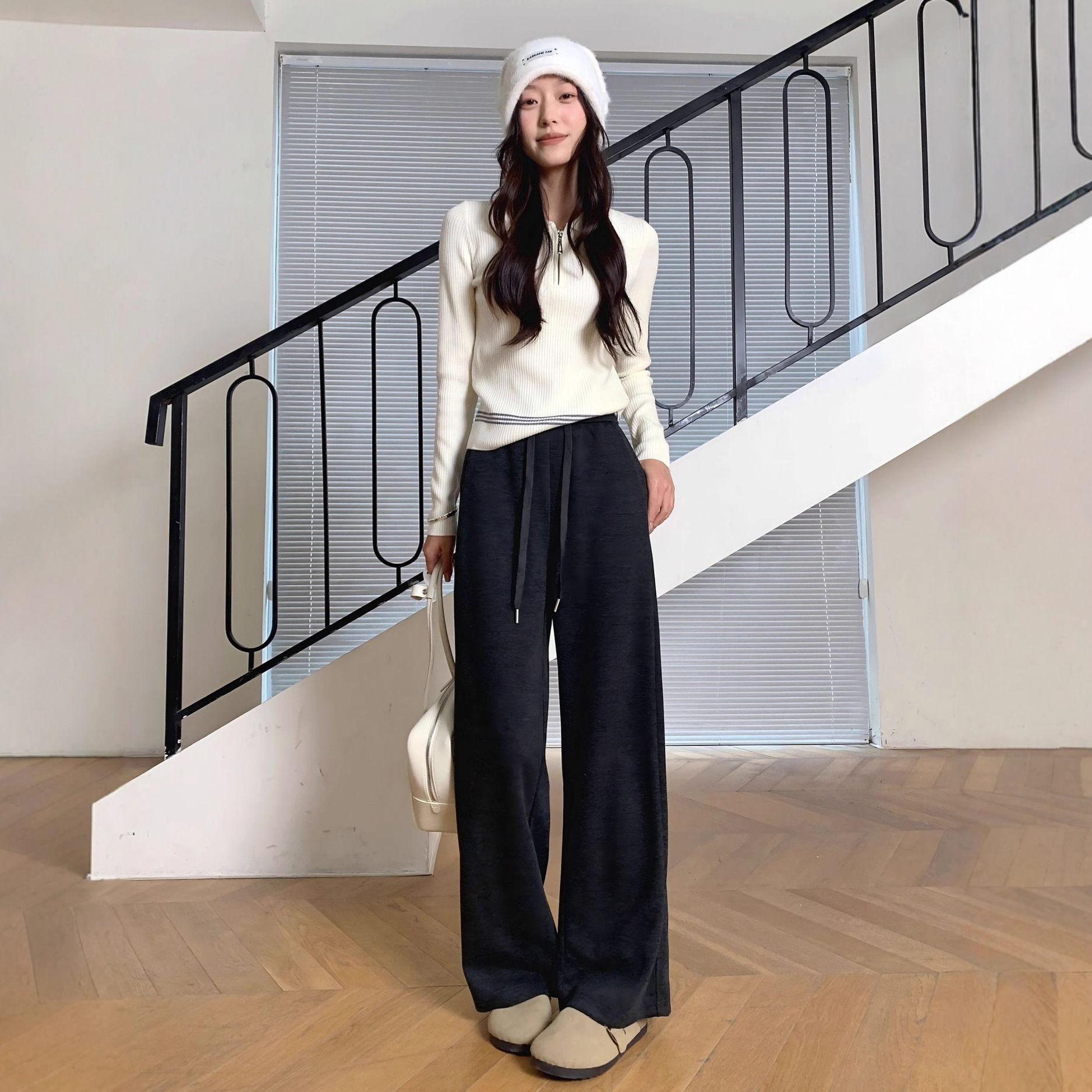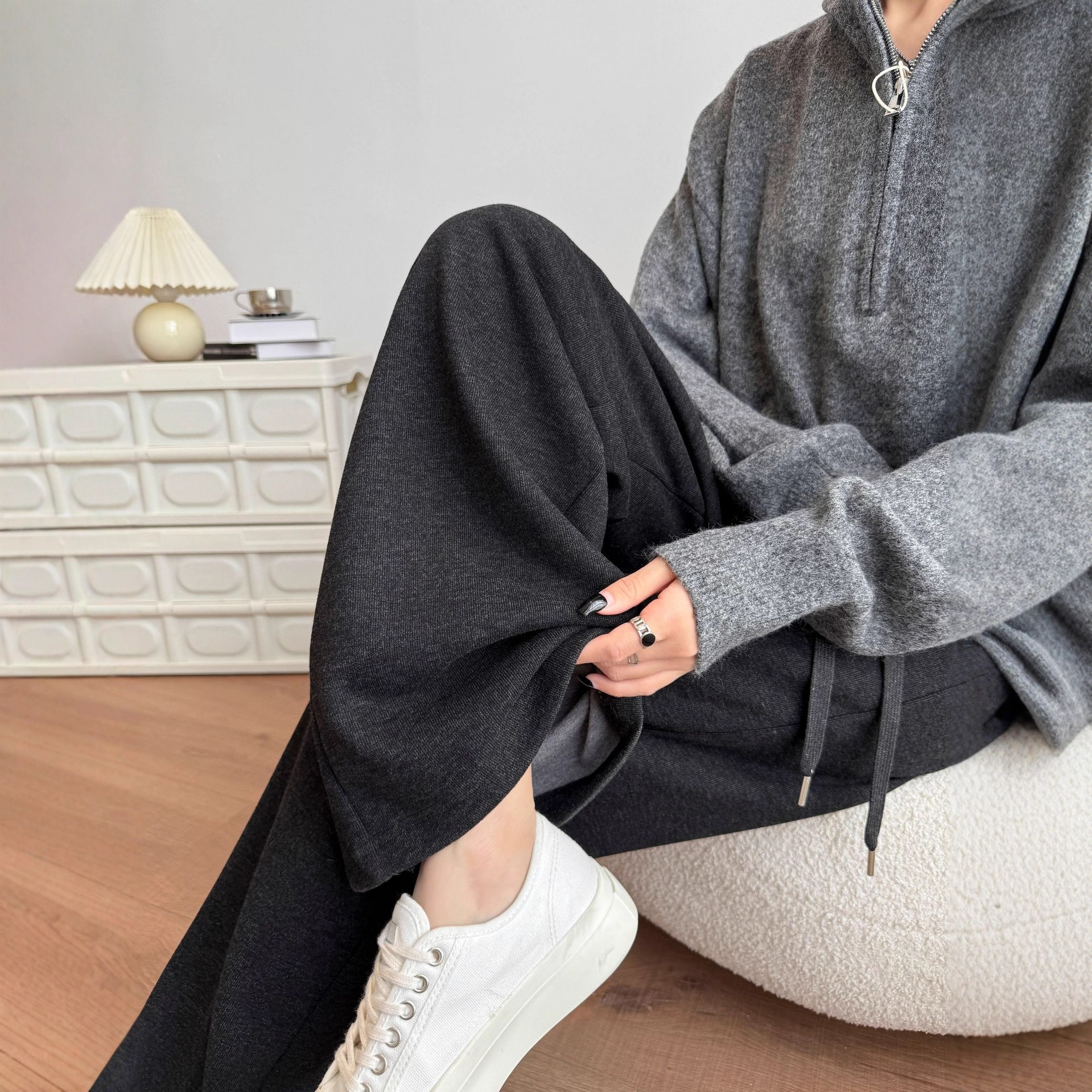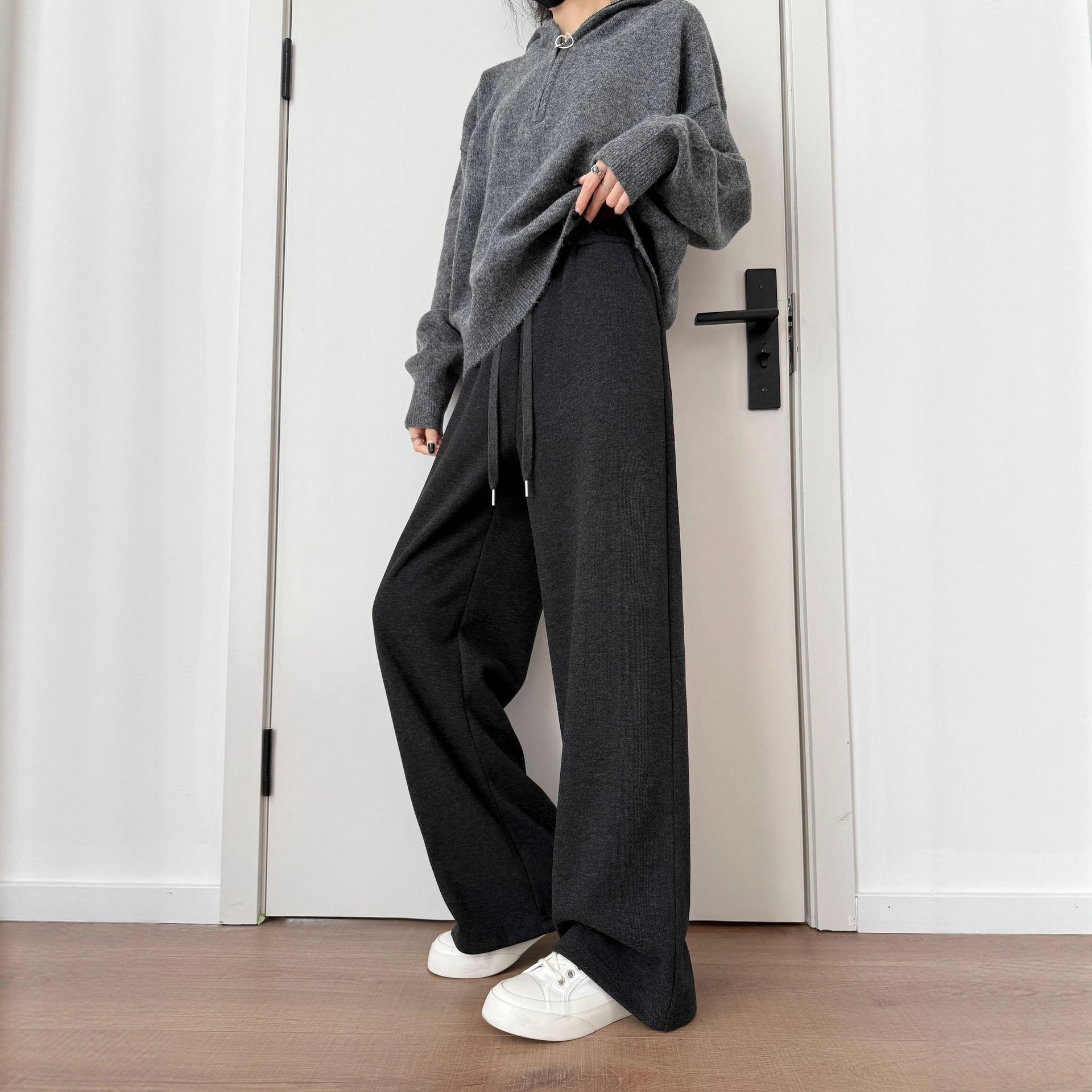 艾轩黑灰色醋酸羊毛裤2025秋冬女款阔腿裤子垂感糯米裤直筒休闲裤