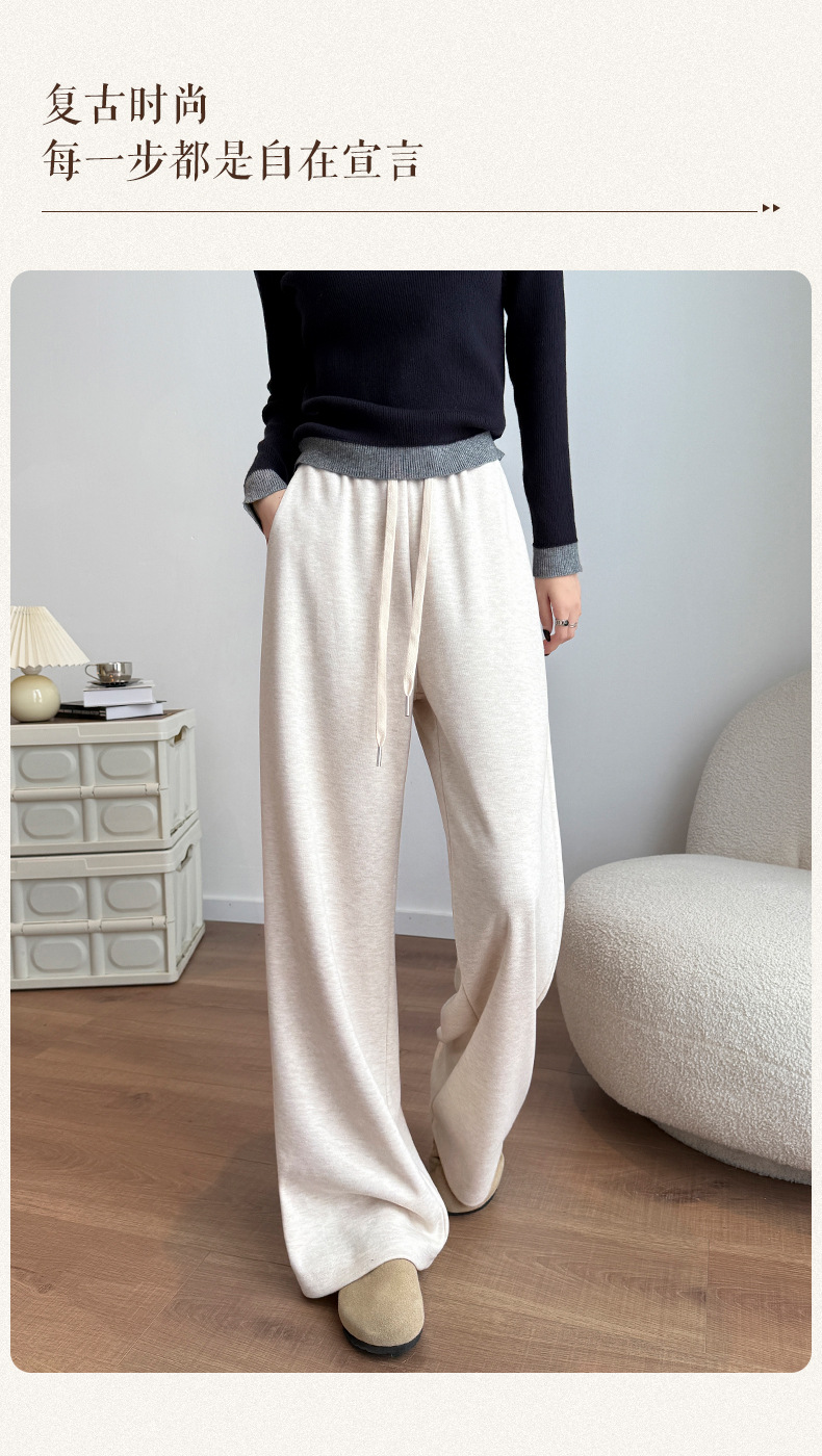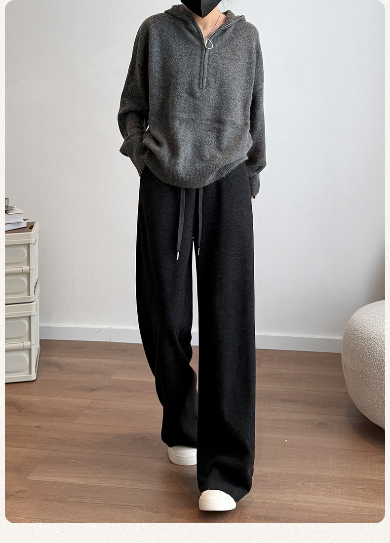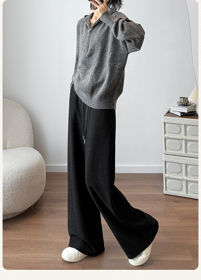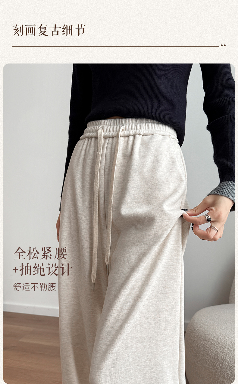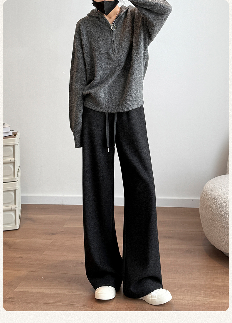 艾轩黑灰色醋酸羊毛裤2025秋冬女款阔腿裤子垂感糯米裤直筒休闲裤