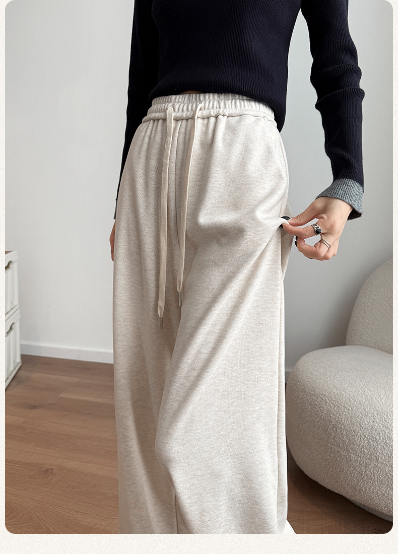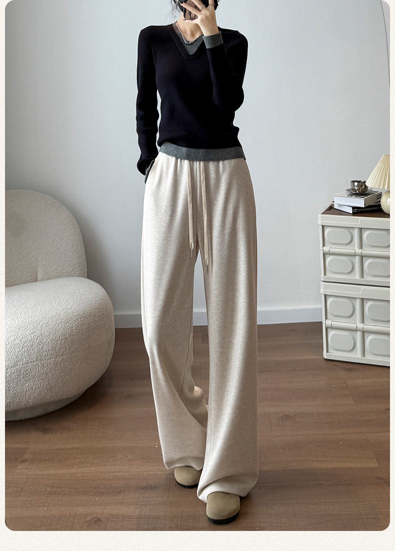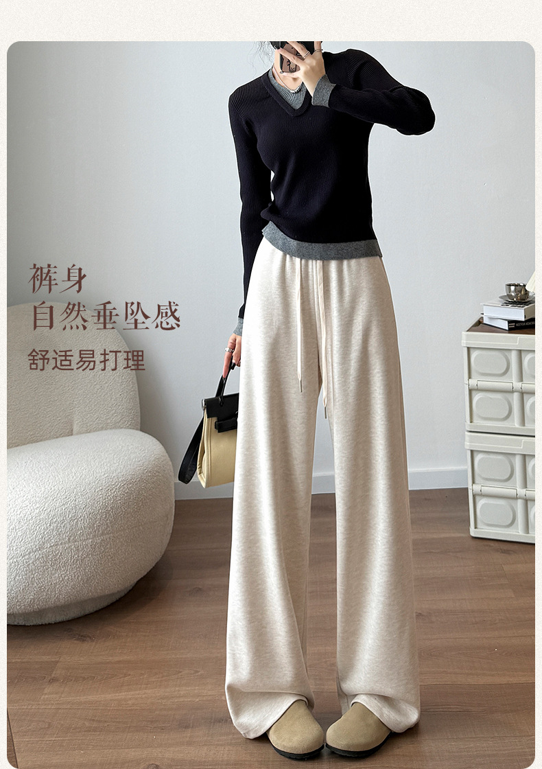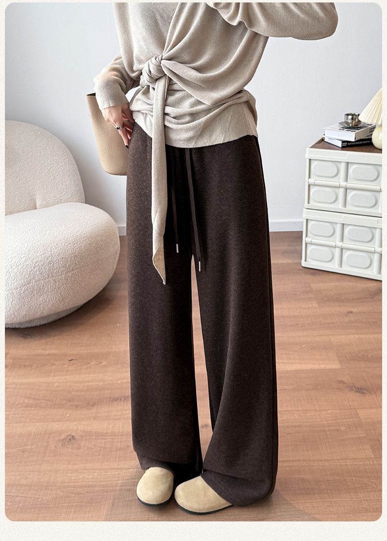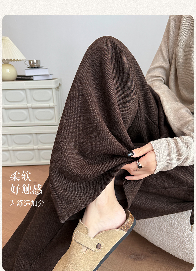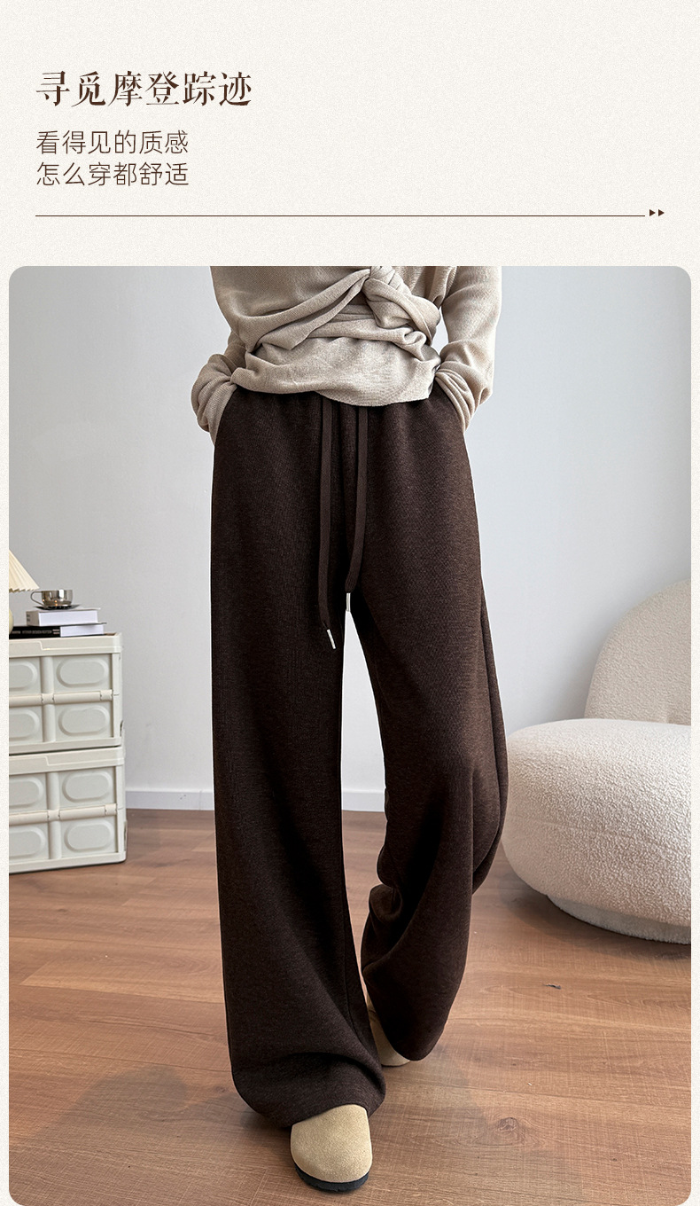 艾轩黑灰色醋酸羊毛裤2025秋冬女款阔腿裤子垂感糯米裤直筒休闲裤