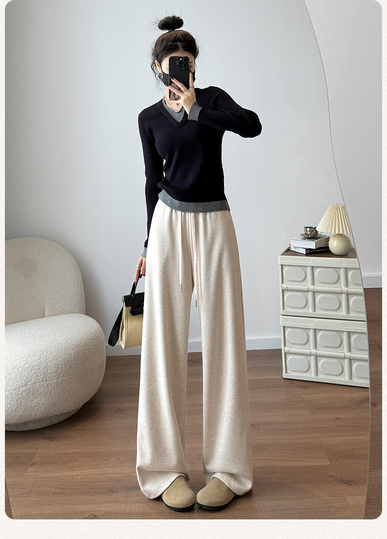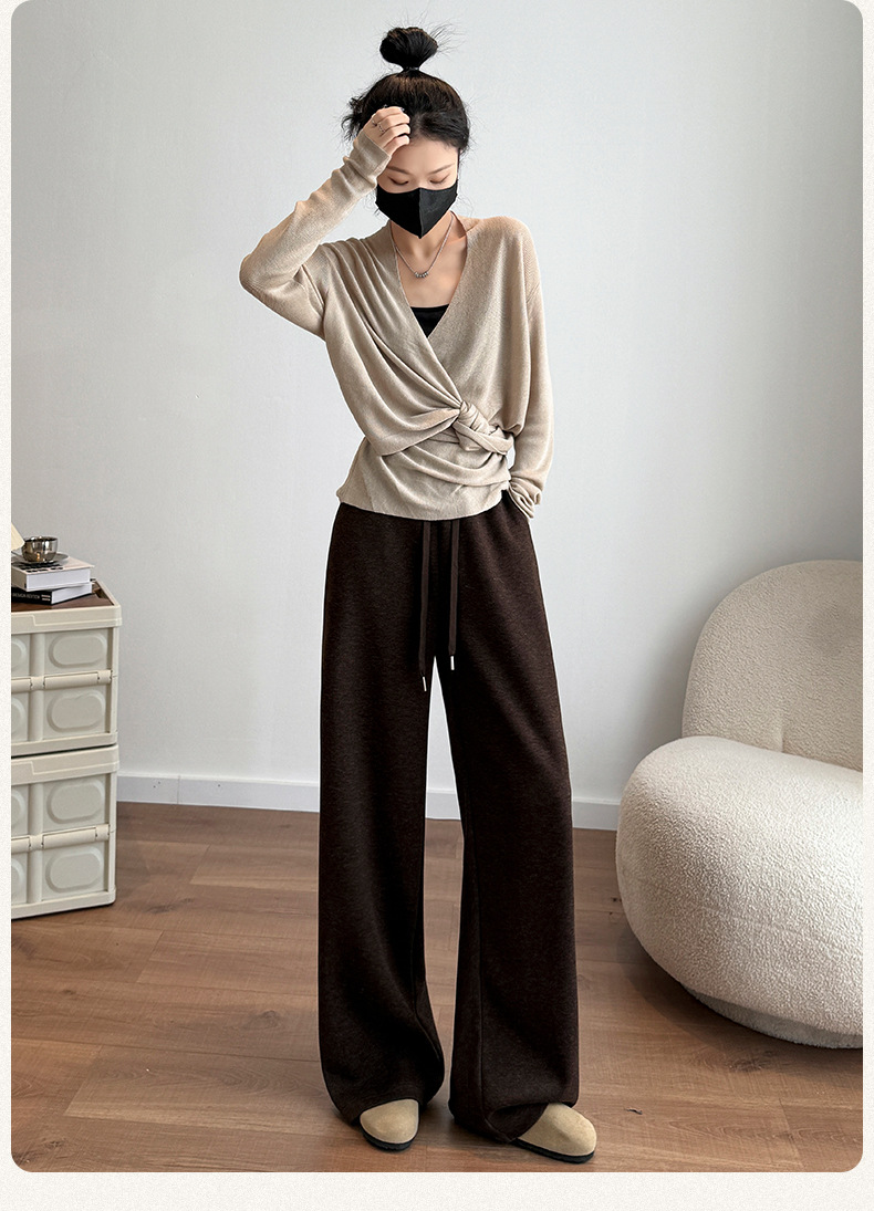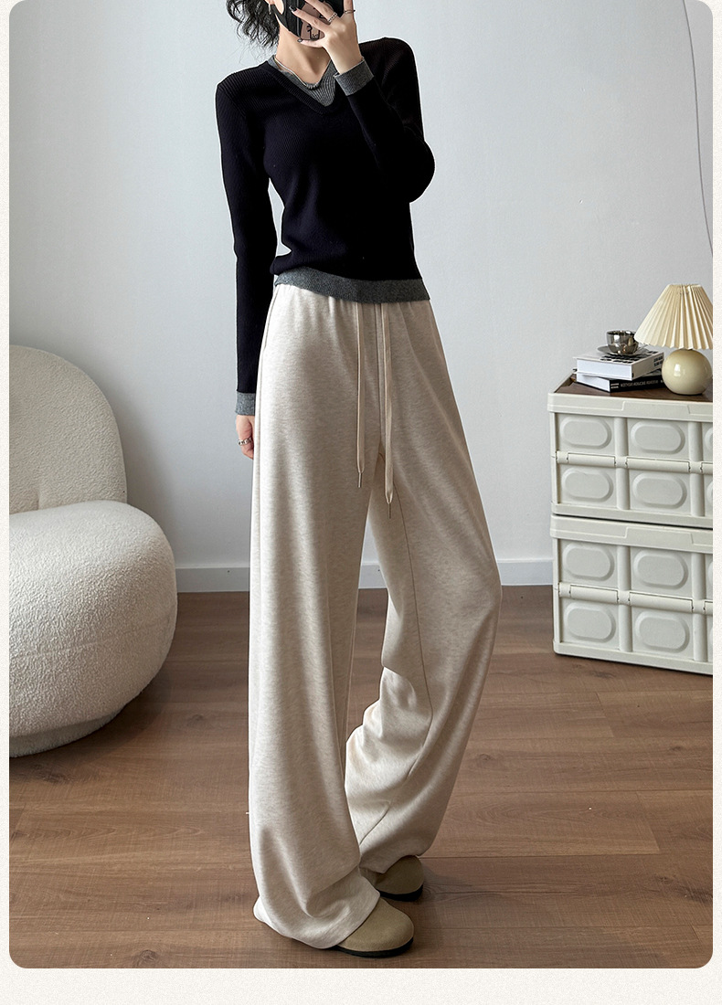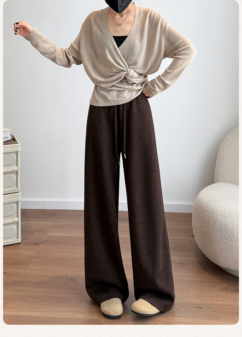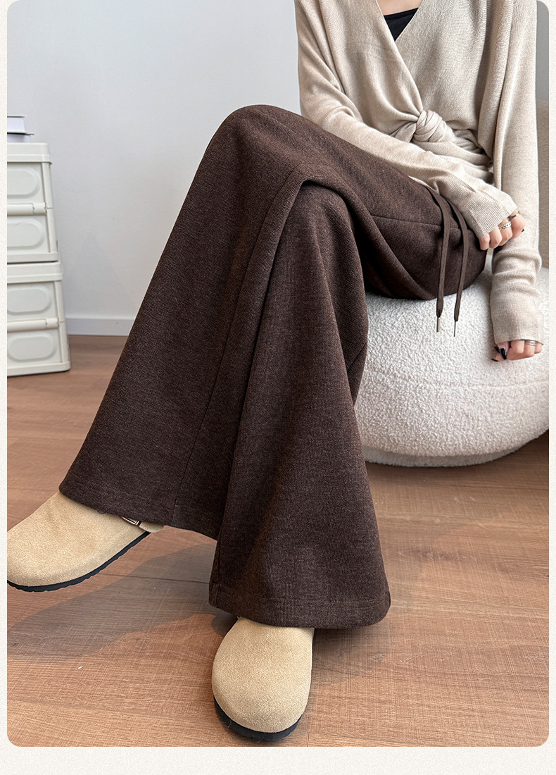 艾轩黑灰色醋酸羊毛裤2025秋冬女款阔腿裤子垂感糯米裤直筒休闲裤