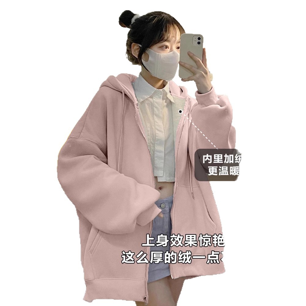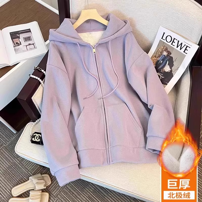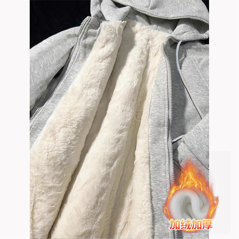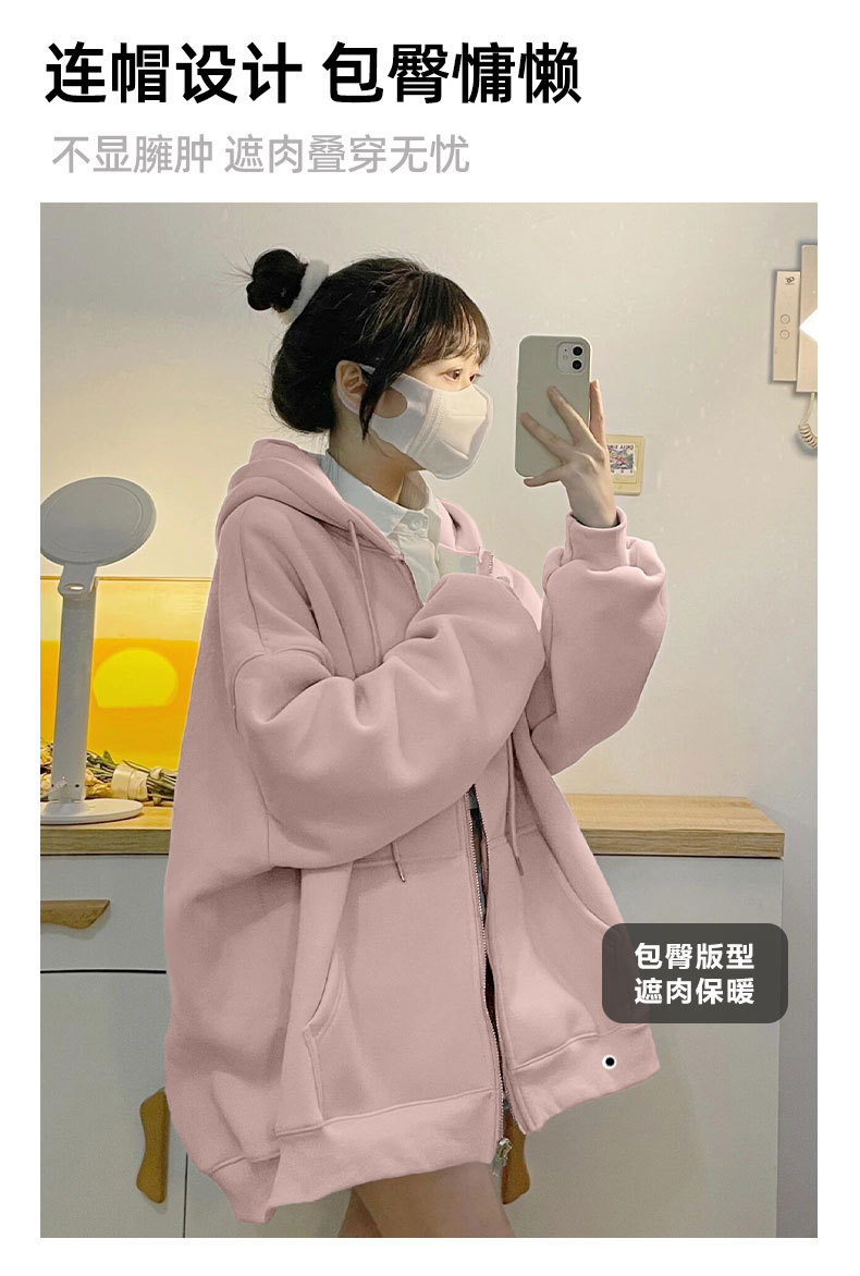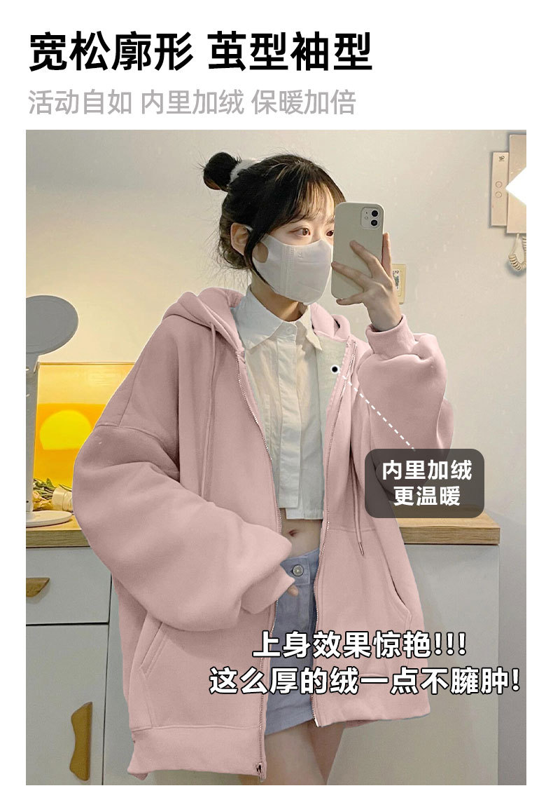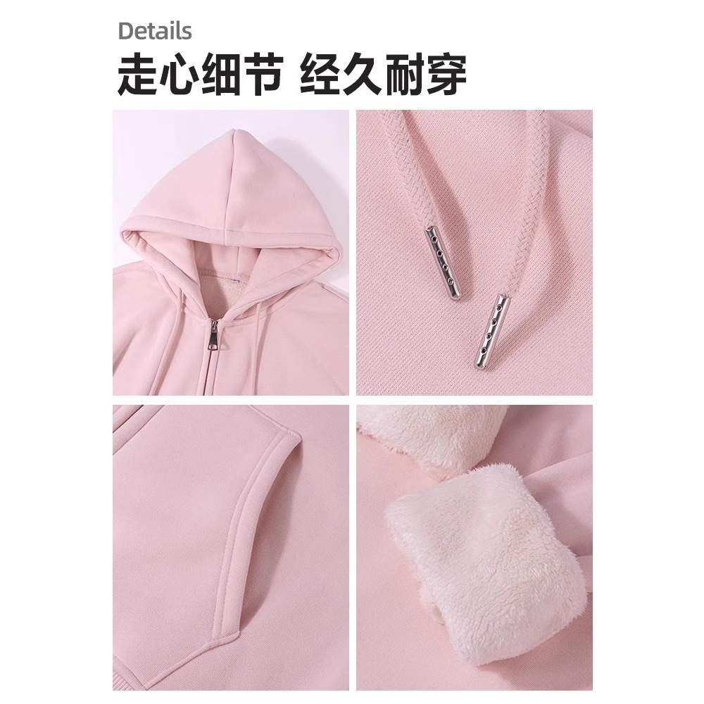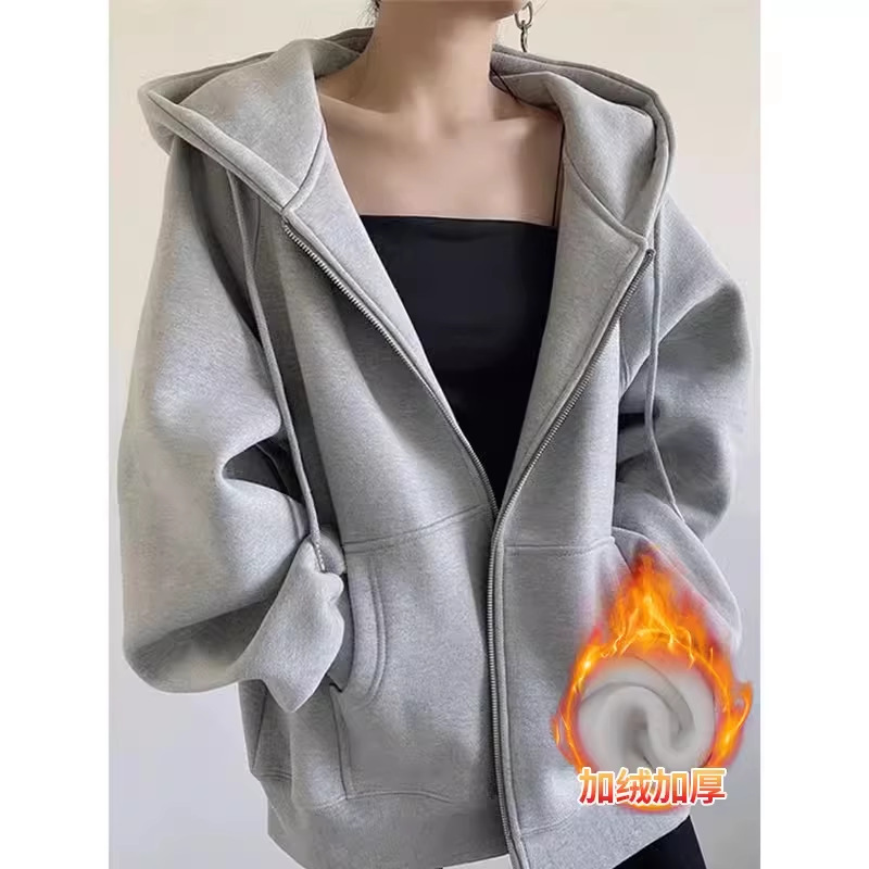 美拉德新款女士卫衣女秋冬加绒加厚开衫连帽显瘦外套2025秋季