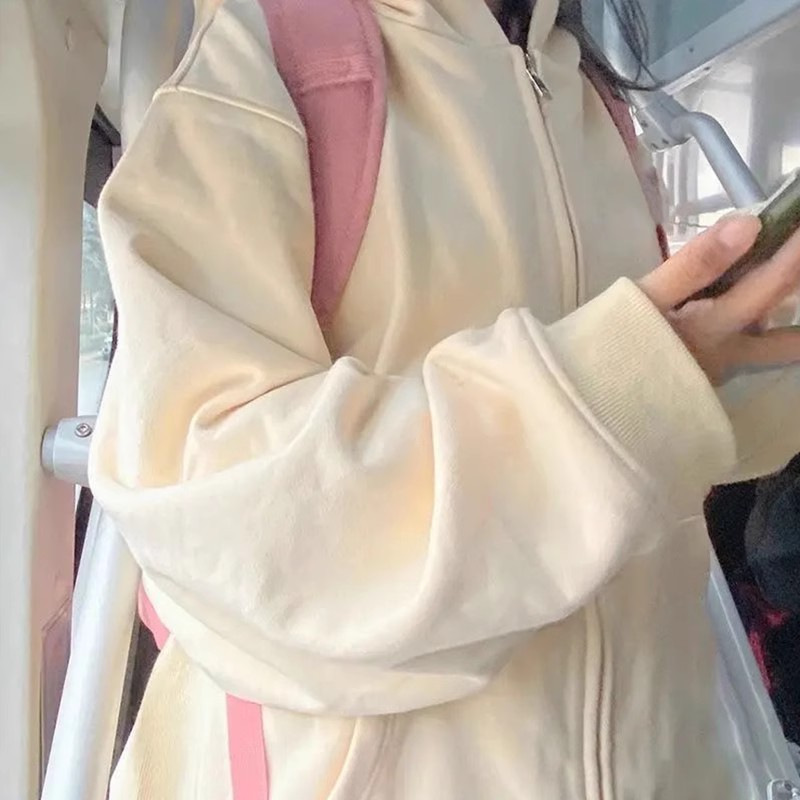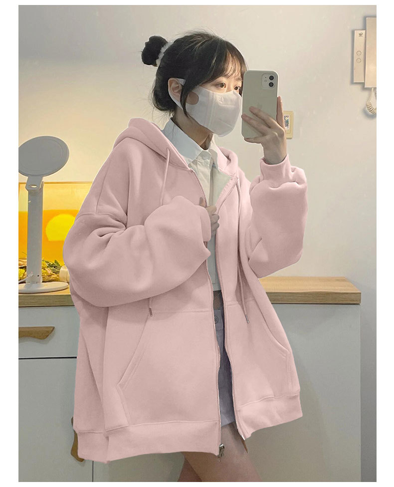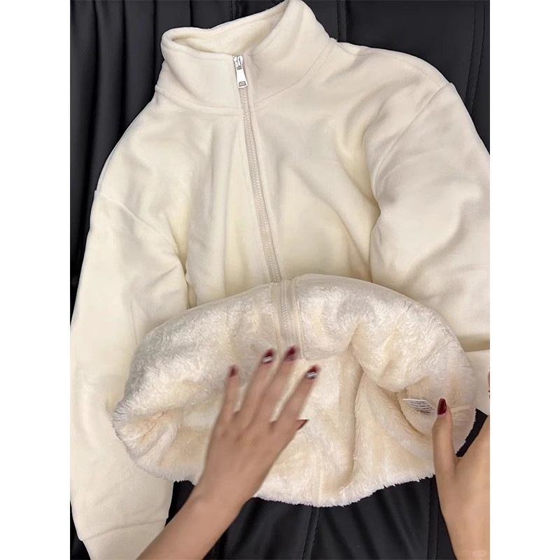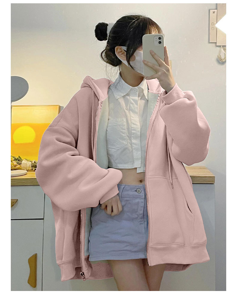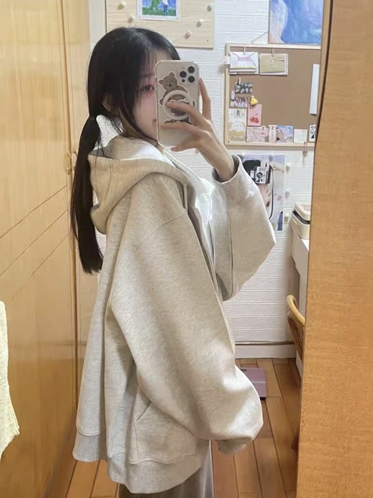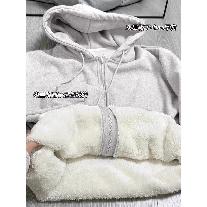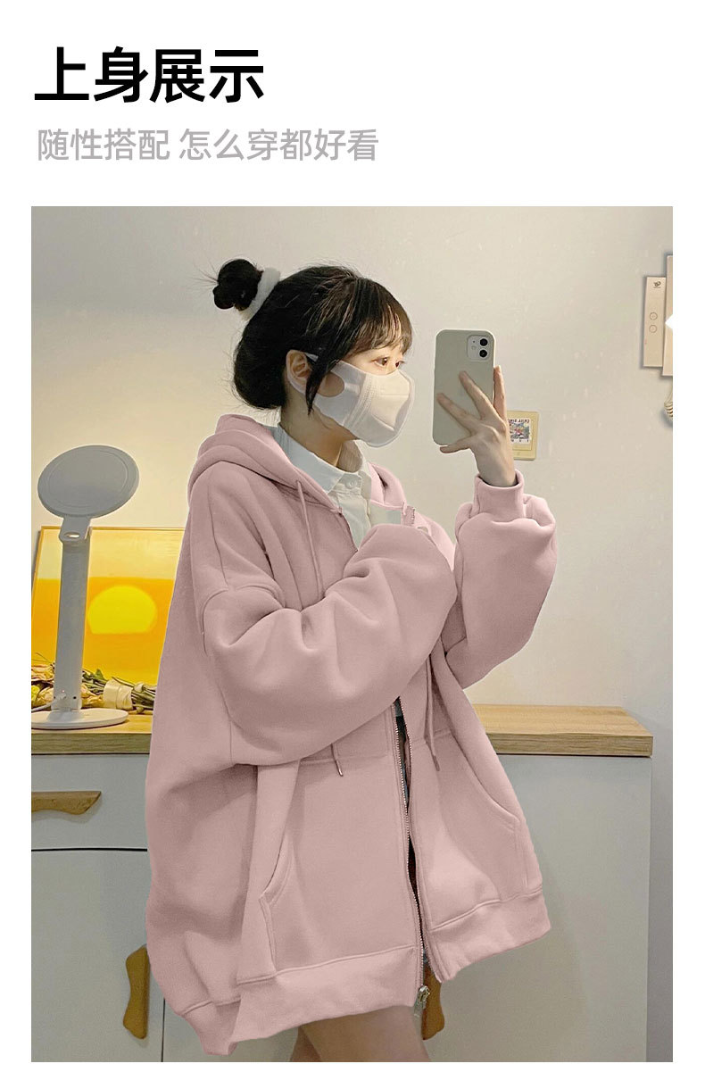 美拉德新款女士卫衣女秋冬加绒加厚开衫连帽显瘦外套2025秋季
