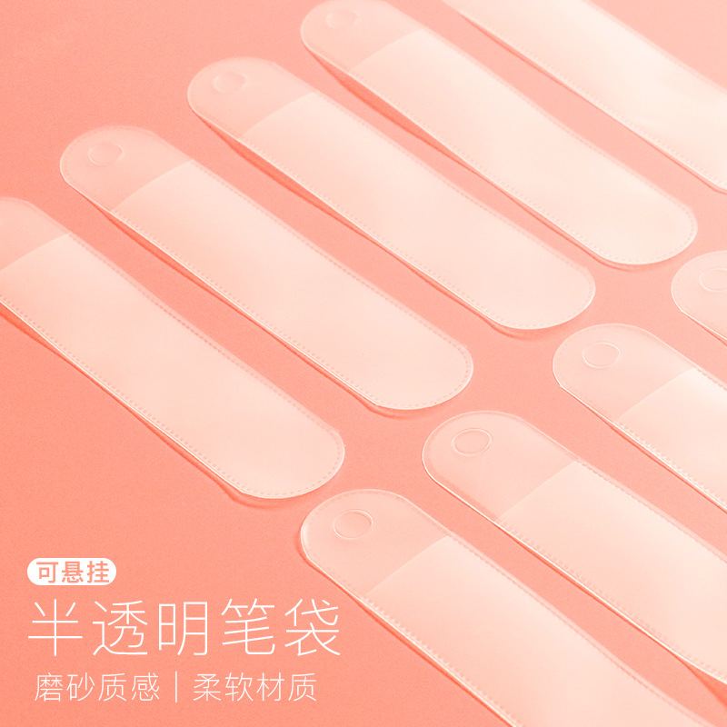 塑料圆角磨砂透明笔袋纯色通用钢笔袋光滑护笔礼品笔袋可挂式