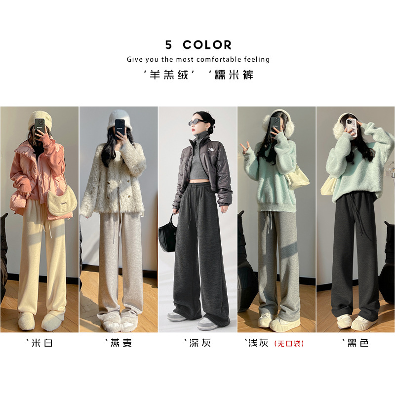 羊羔绒糯米裤女冬季高腰直筒拖地休闲裤子宽松慵懒窄版加绒阔腿裤