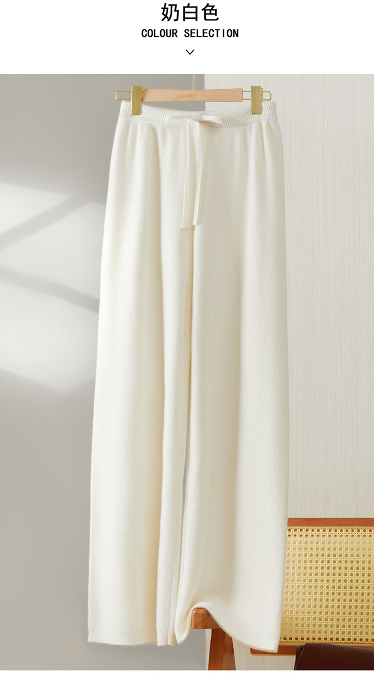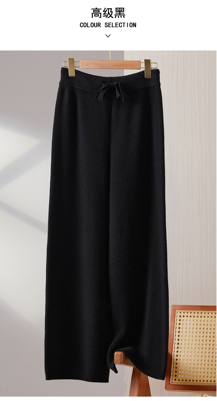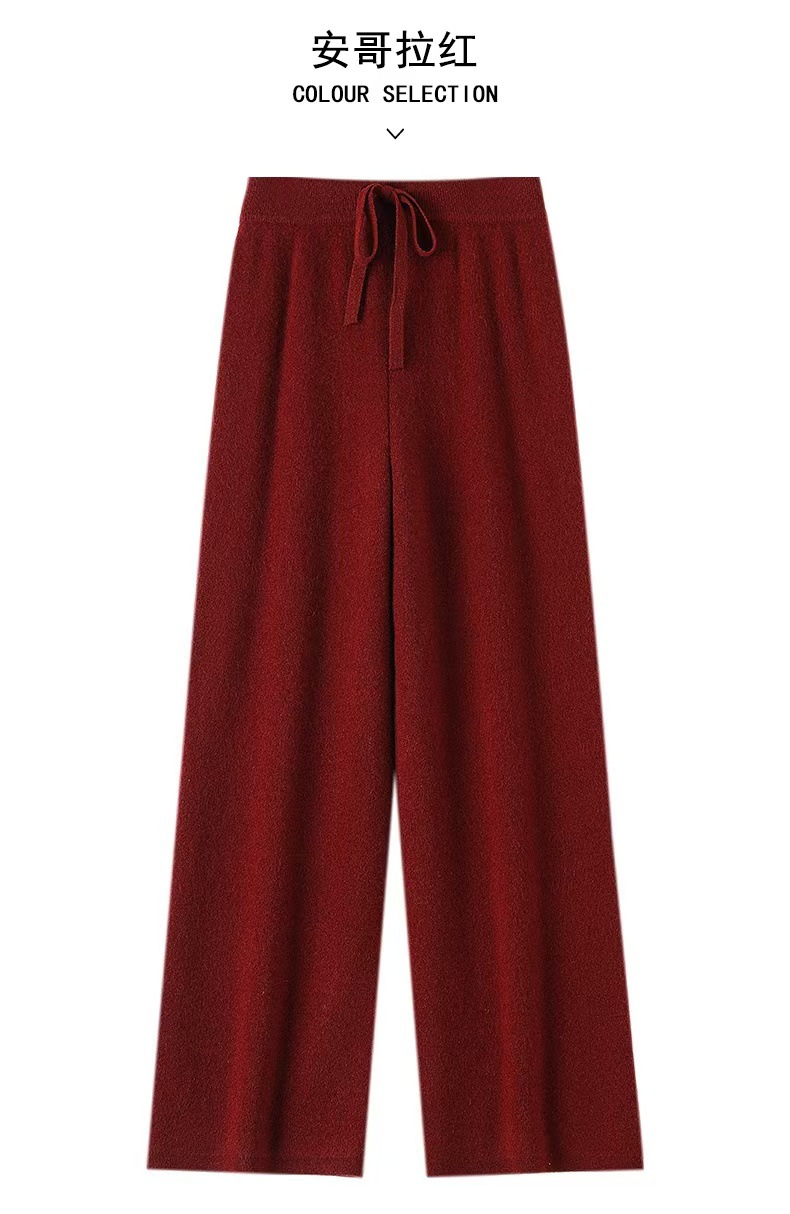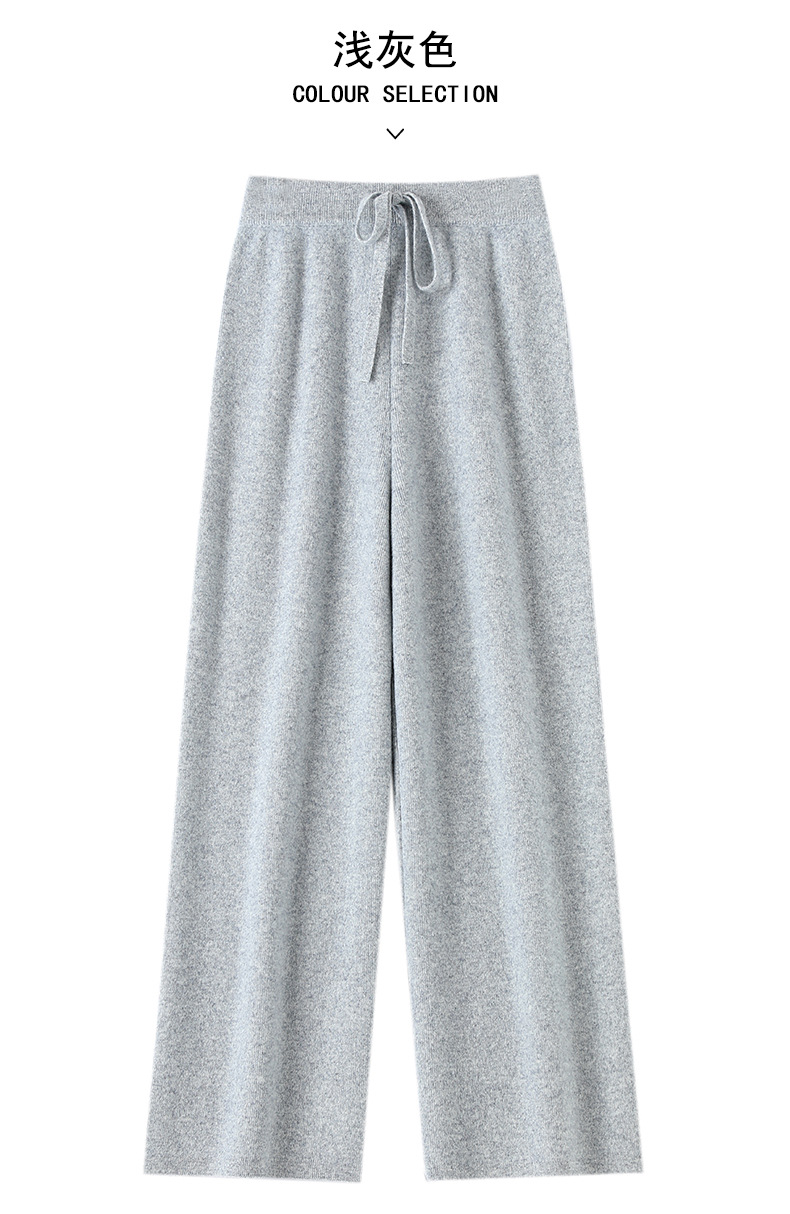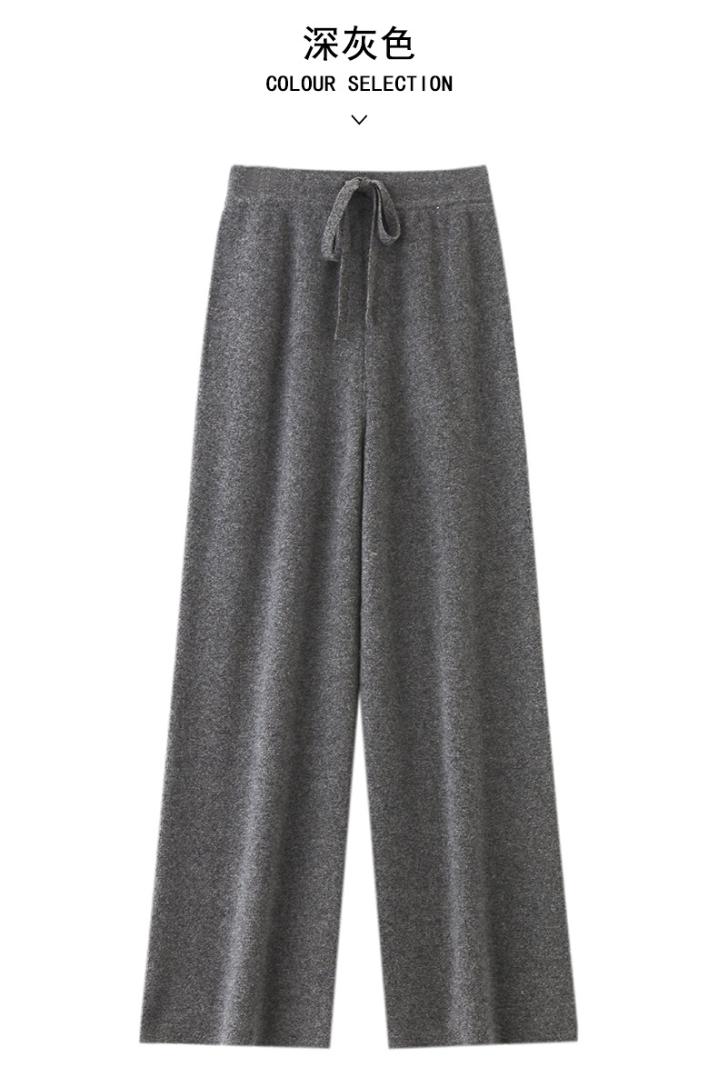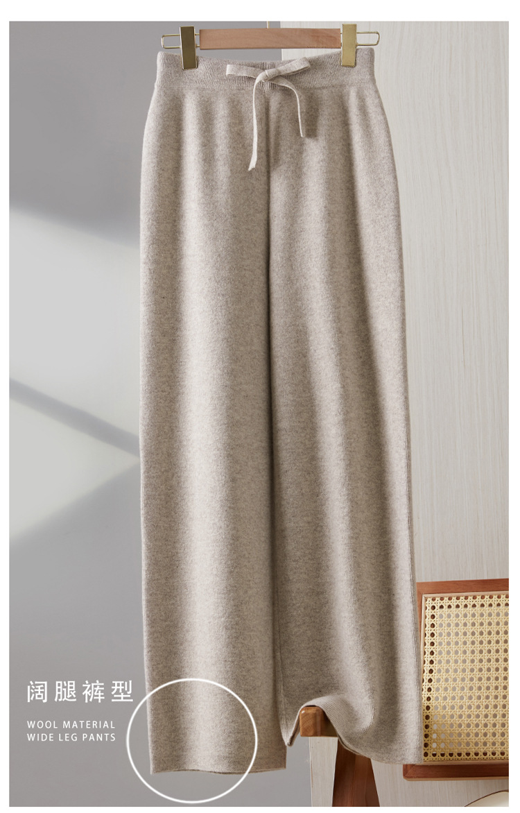 100羊毛针织阔腿裤女拖地裤休闲宽松直筒裤秋冬显瘦高腰垂感长裤
