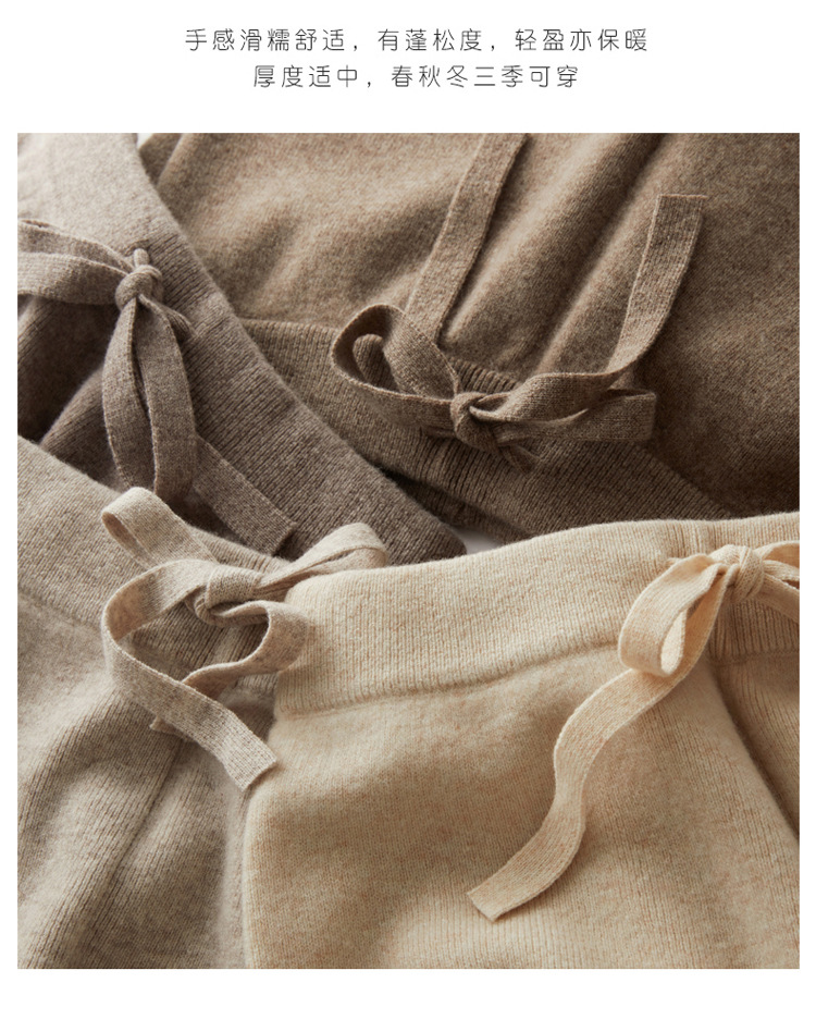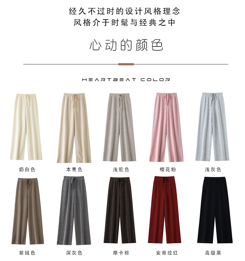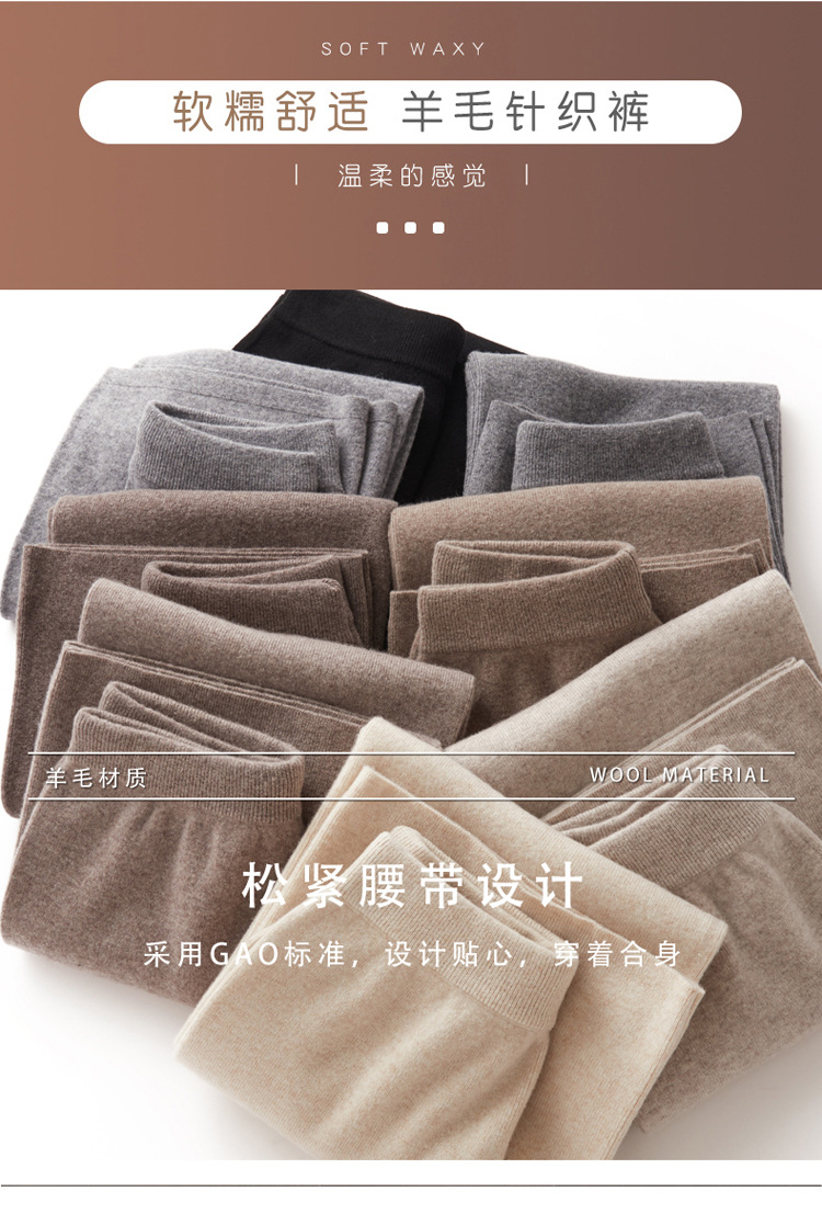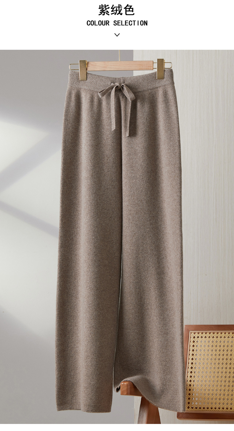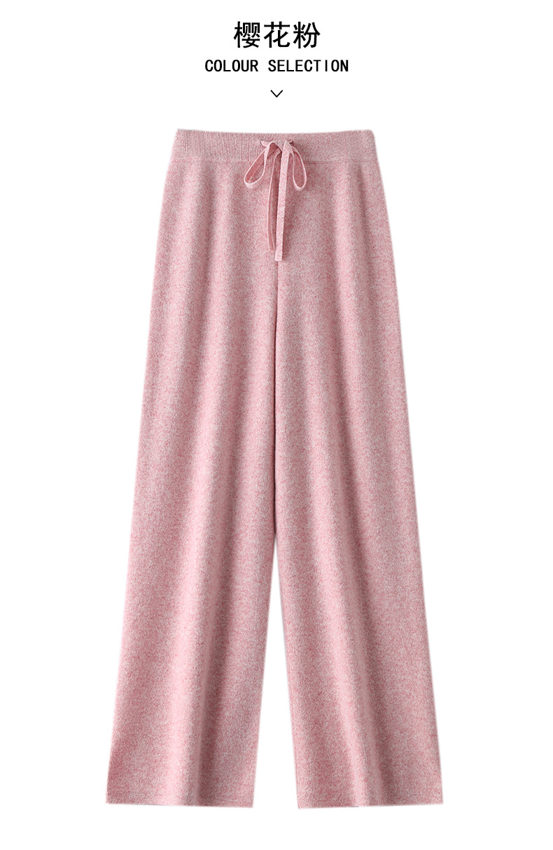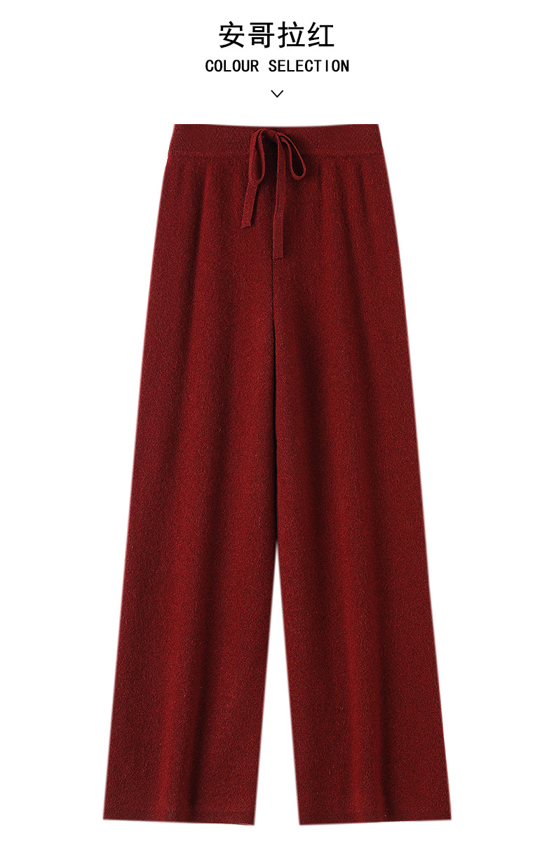 100羊毛针织阔腿裤女拖地裤休闲宽松直筒裤秋冬显瘦高腰垂感长裤