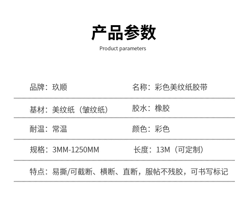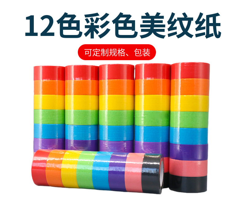 美纹胶美术美工手撕无痕分色纸胶带 diy多功能彩色美纹纸强粘胶带