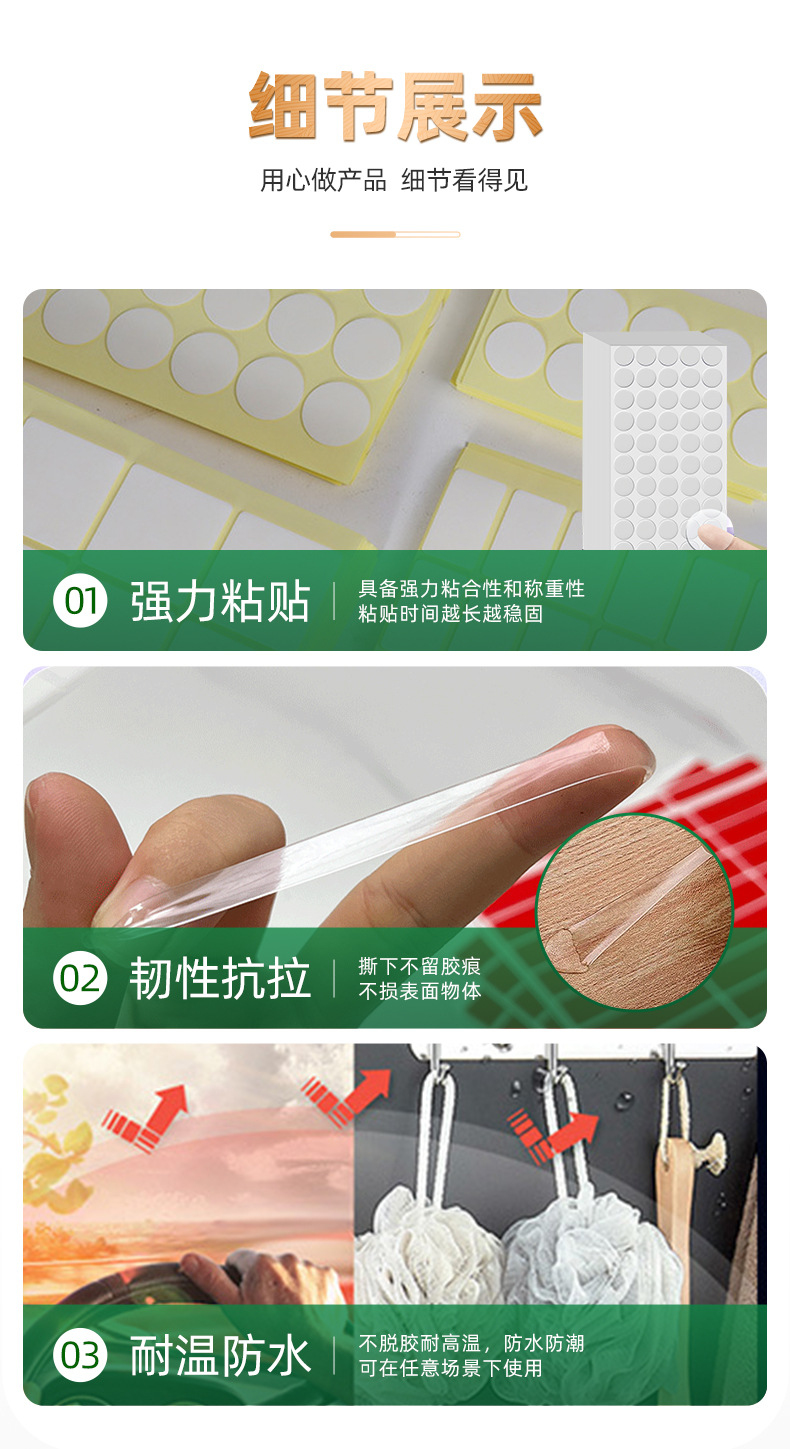 纳米双面胶高粘度无痕透明圆点胶贴亚克力双面胶固定墙面车载强力