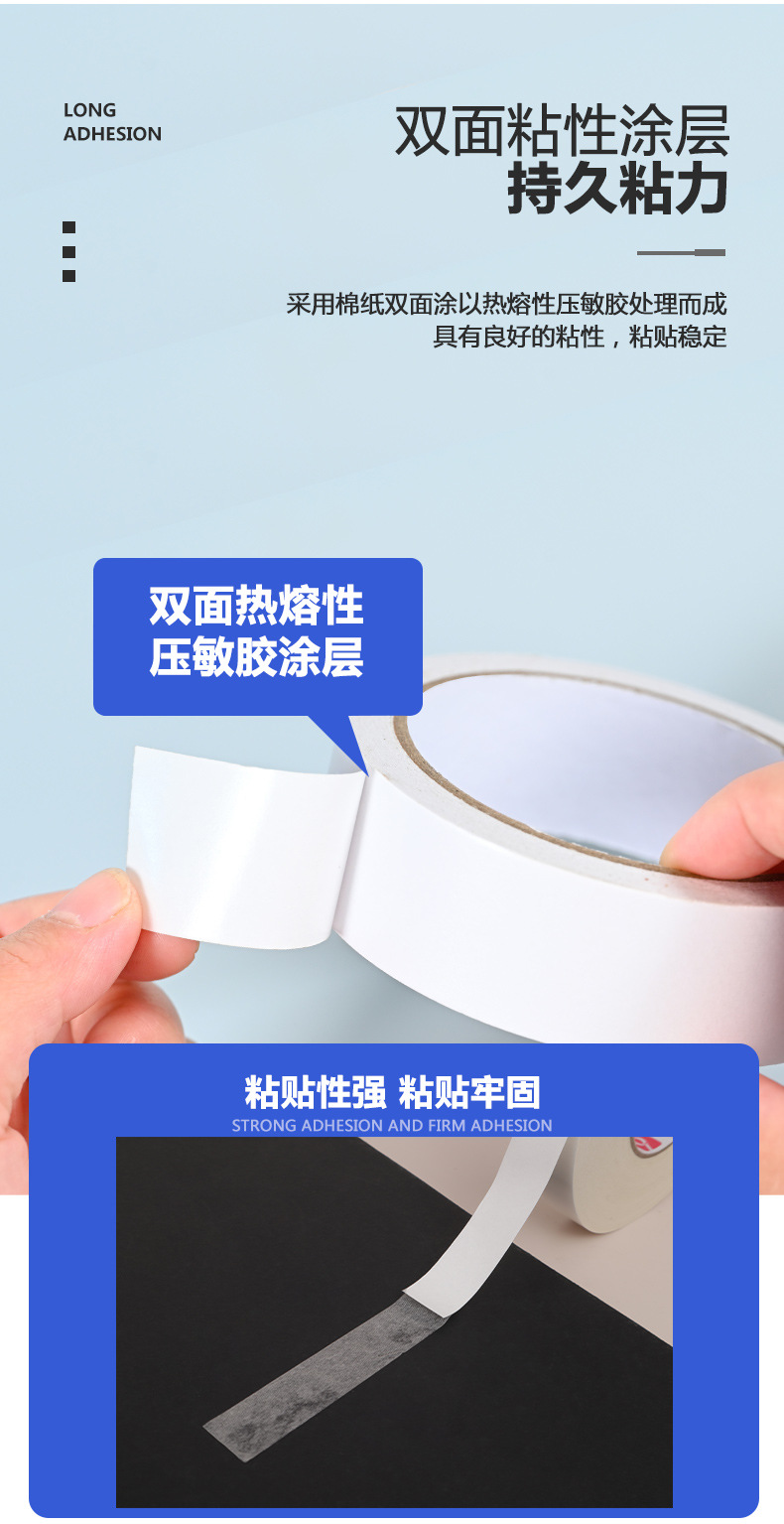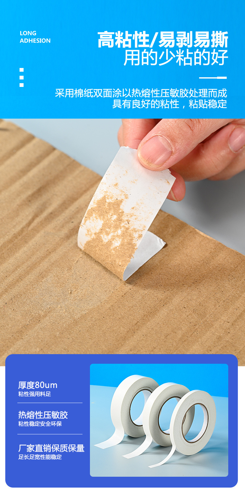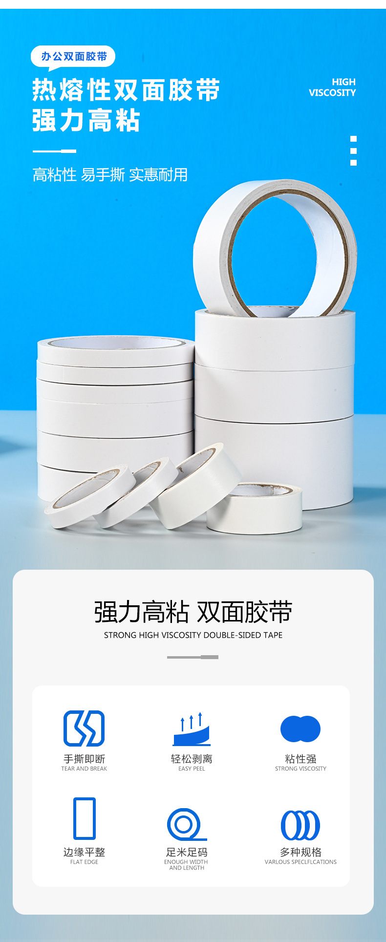 白色双面胶带强粘性手撕透明学生手工配套赠送办公文具双面胶厂家