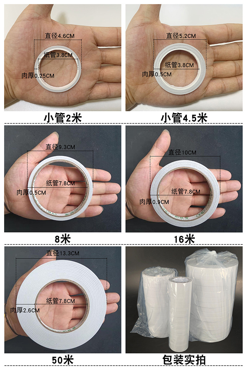 工厂批发高粘度热熔双面胶学生白色手撕强力双面胶带透明办公用品