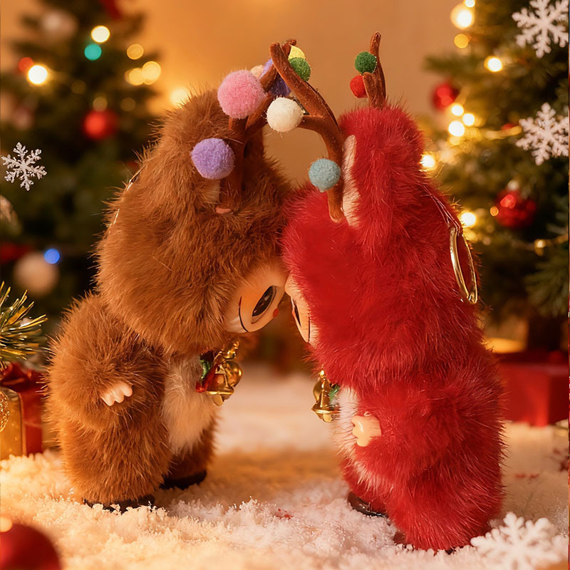 跨境labubu毛绒公仔爆款祖国版圣诞款爱心眼搪胶拉布布挂件玩偶