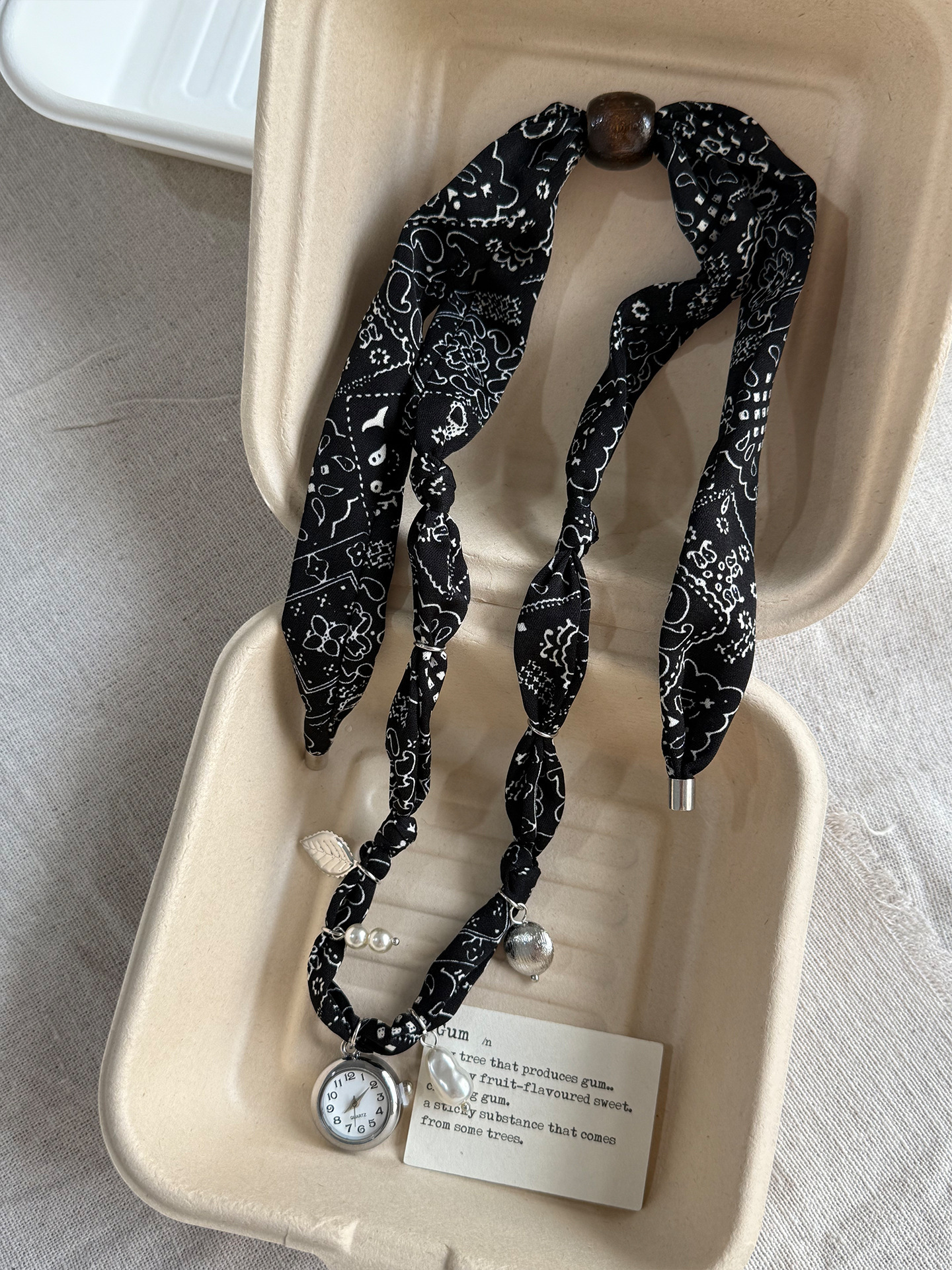 新中式民族风豹纹丝巾项链个性气质珍珠串珠叠戴颈链小众设计颈饰