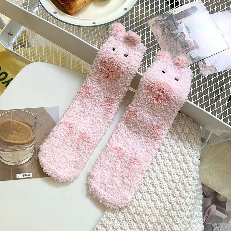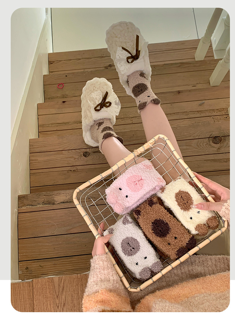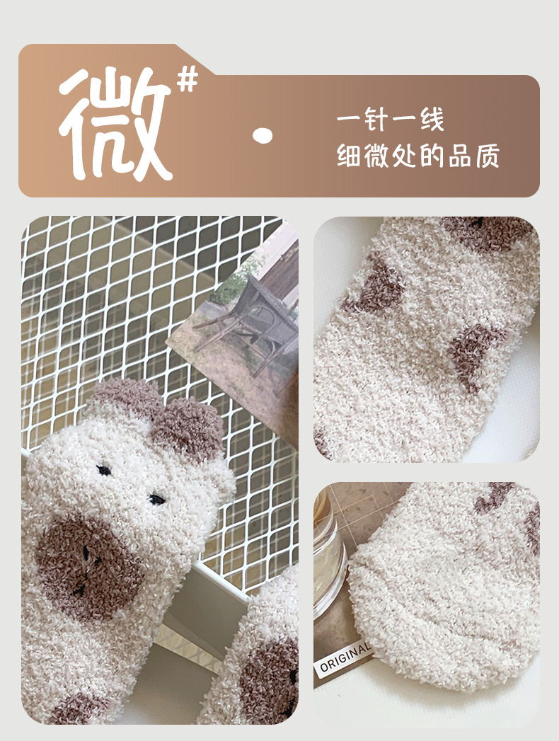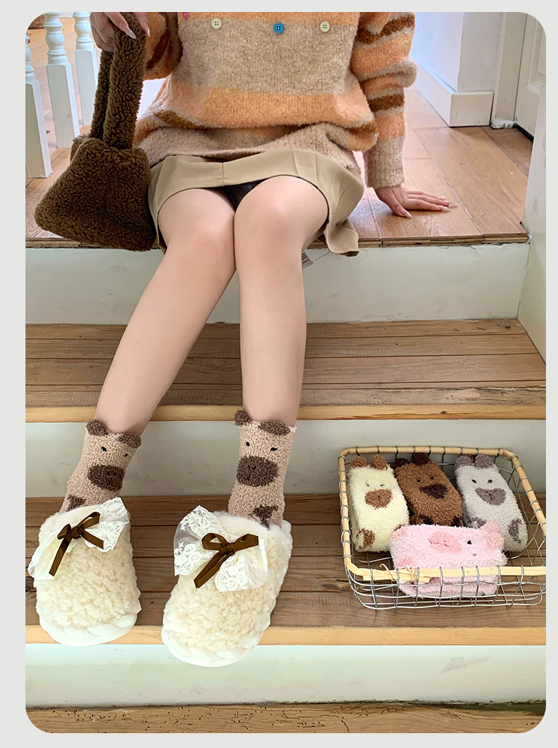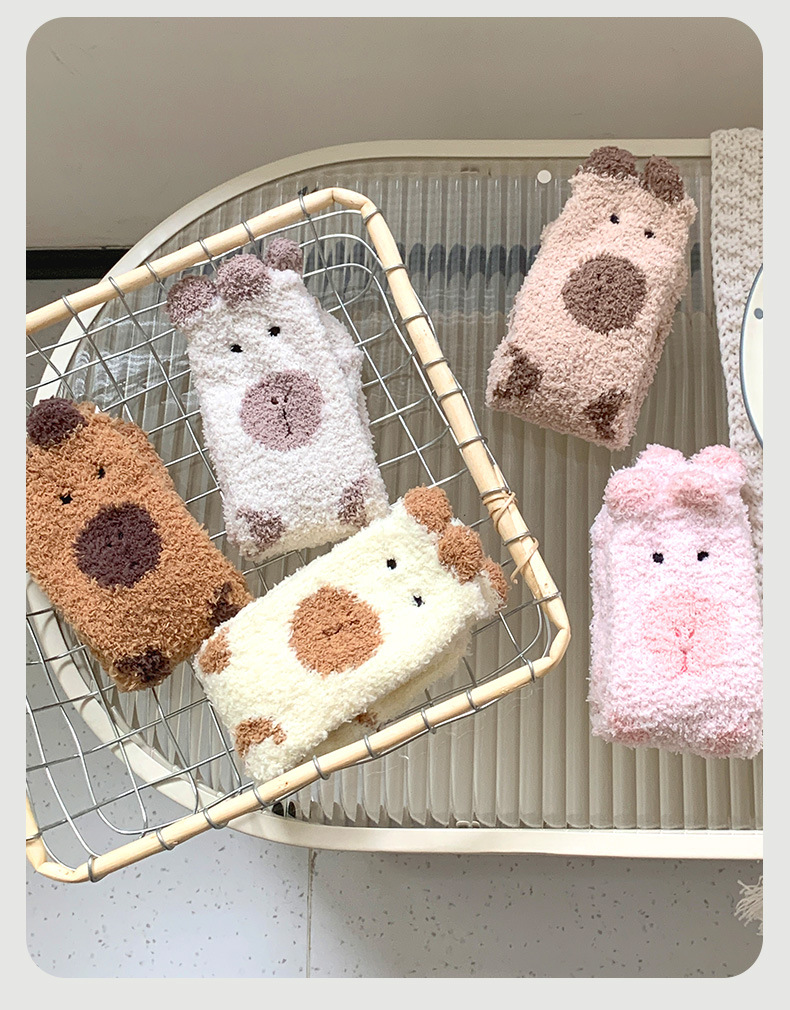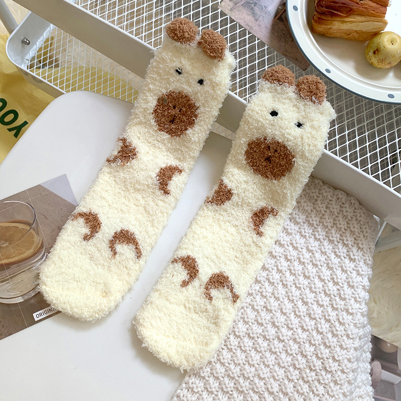 珊瑚绒袜子女卡皮巴拉中筒袜冬季加厚保暖毛茸卡通袜子韩版睡眠袜